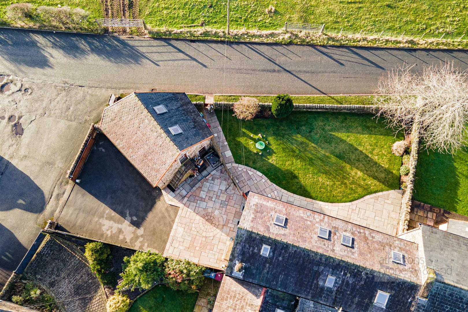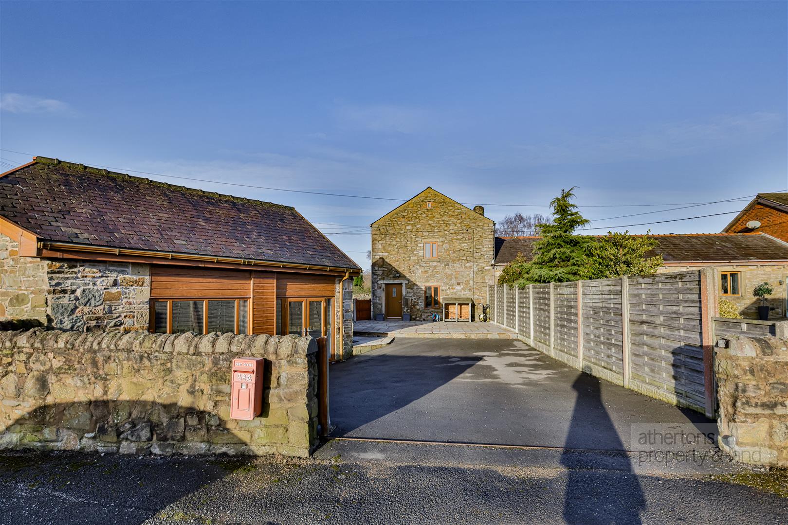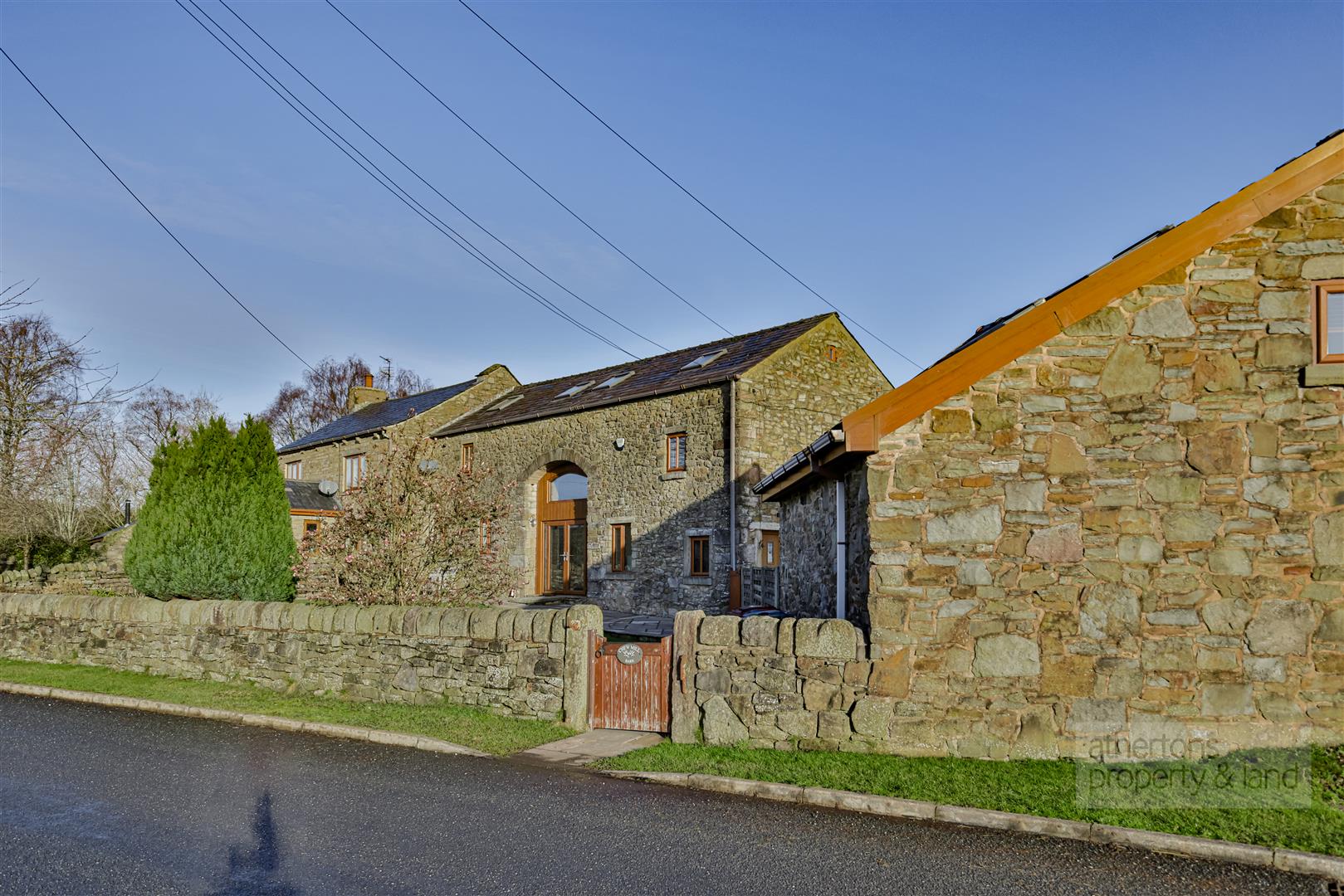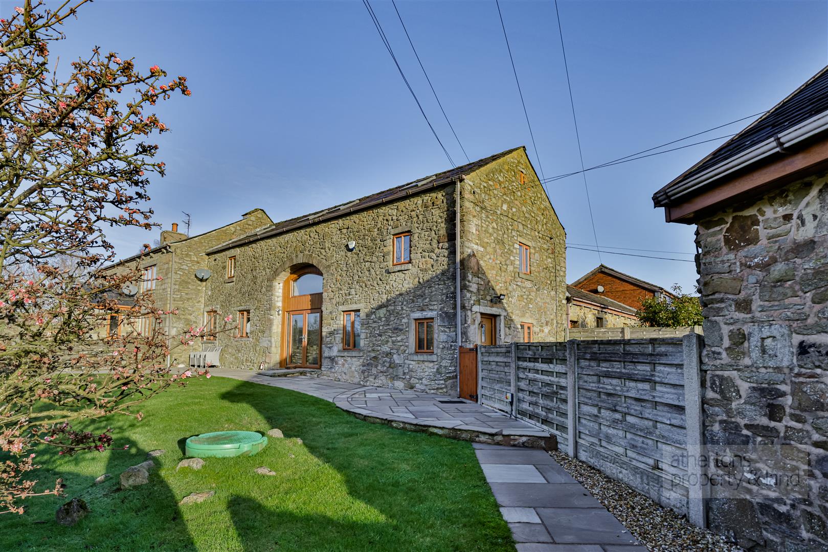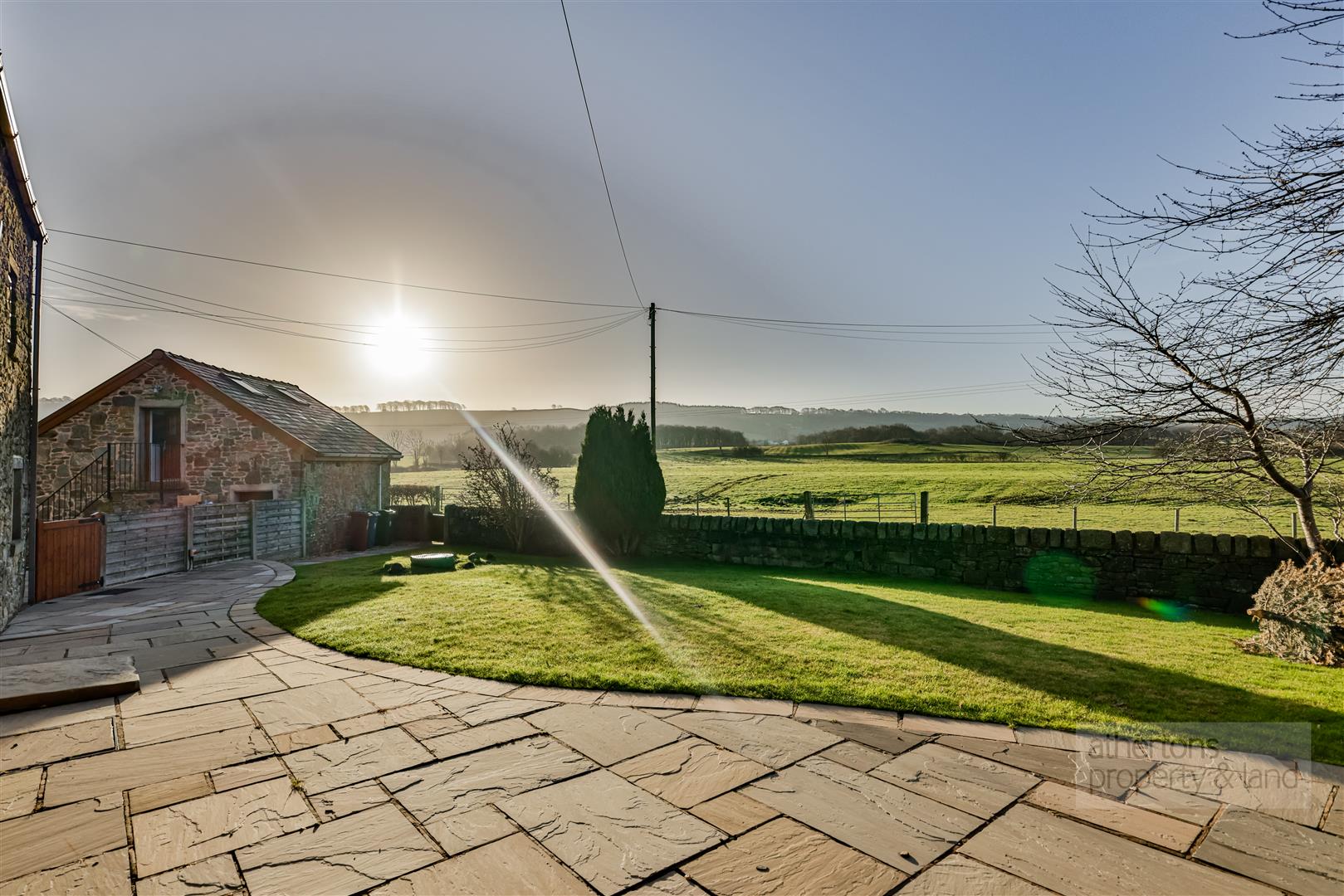 Externally, the property is approached via an automated electric gate, opening onto a private driveway providing parking for three to four vehicles. A generous Indian stone patio sweeps around the side and rear of the property, ideal for outdoor entertaining, while to the front a south-west facing lawned garden with stone boundary wall and paved seating area enjoys uninterrupted countryside views and excellent sunlight throughout the day.