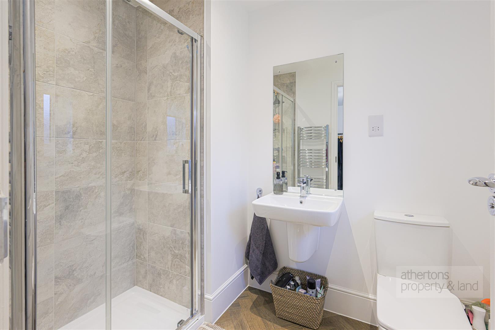 Bedrooms two and three are both comfortable double rooms, each benefiting from their own stylish three-piece en-suite shower rooms with modern fittings and mains-fed cubicle showers, creating a rare and highly desirable three en-suite configuration ideal for families or visiting guests.