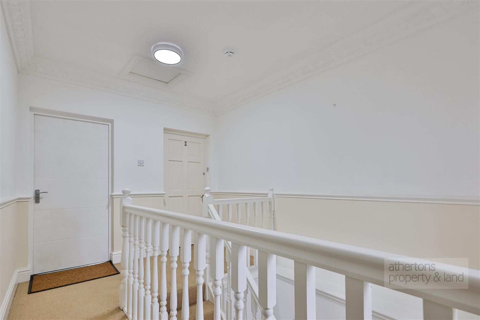 A central hallway provides access to the remainder of the accommodation and loft storage. Bedroom One is a well-proportioned double room featuring fitted wardrobes and a wooden double-glazed window, while Bedroom Two is a further generous double, again with fitted wardrobes, making it ideal for guests, a home office or additional bedroom space.