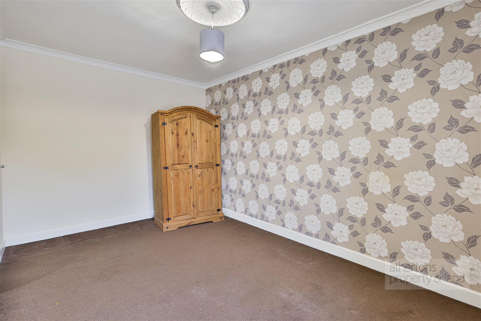 To the first floor, three well-proportioned bedrooms provide comfortable accommodation. Bedrooms one and two are generous doubles, each featuring UPVC double-glazed windows, central heating radiators, and attractive ornamental ceiling roses. Bedroom three offers an ideal single bedroom, nursery, or home office. The family bathroom is fitted with a panelled bath incorporating mixer taps and shower attachment, pedestal wash basin, low-suite WC, part-tiled walls, electric shaver point, and heated radiator.