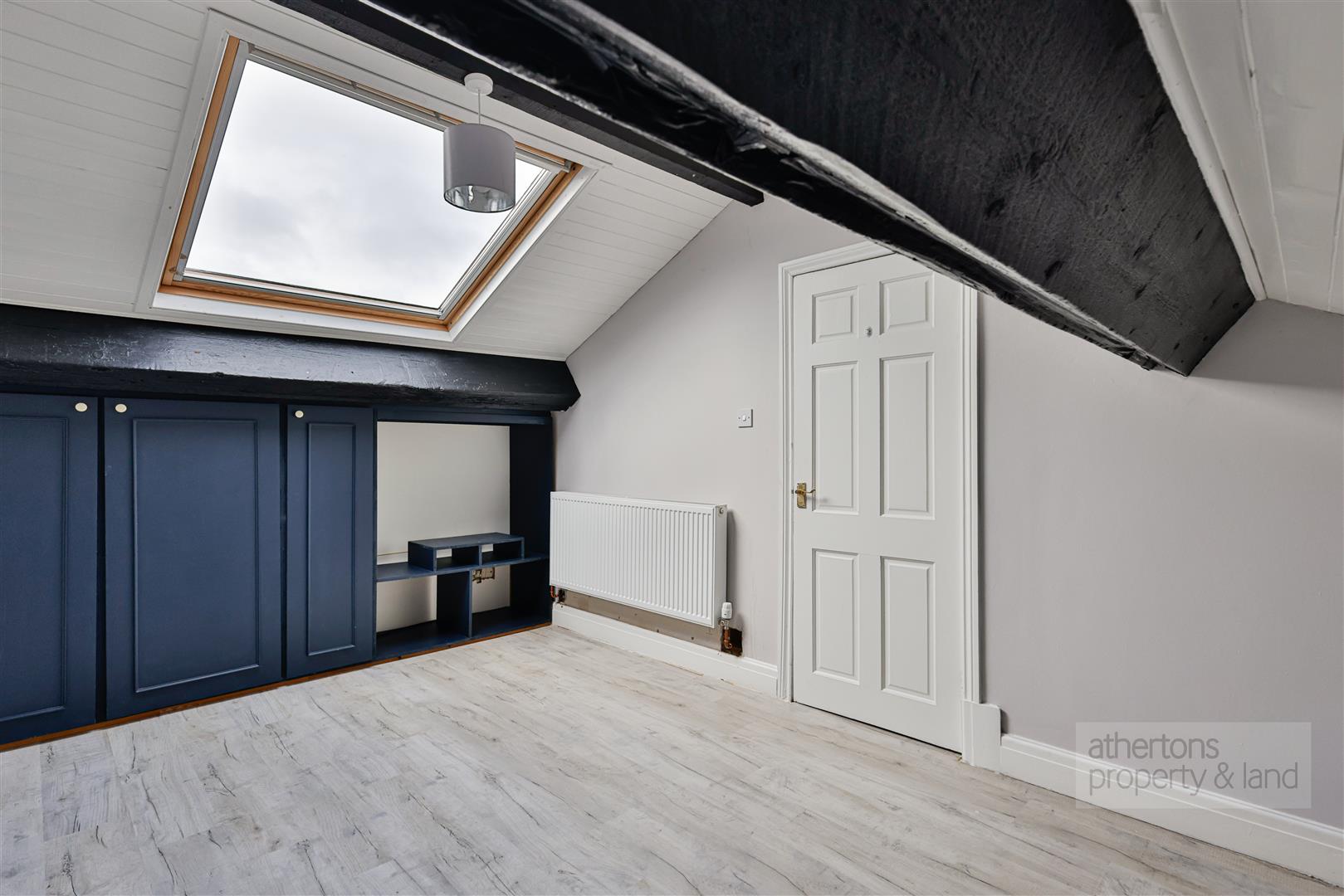 The second floor hosts a further double bedroom, illuminated by a UPVC double-glazed Velux window and served by its own separate WC with pedestal wash basin, creating a private and flexible space suitable for guests, older children, or home working.
