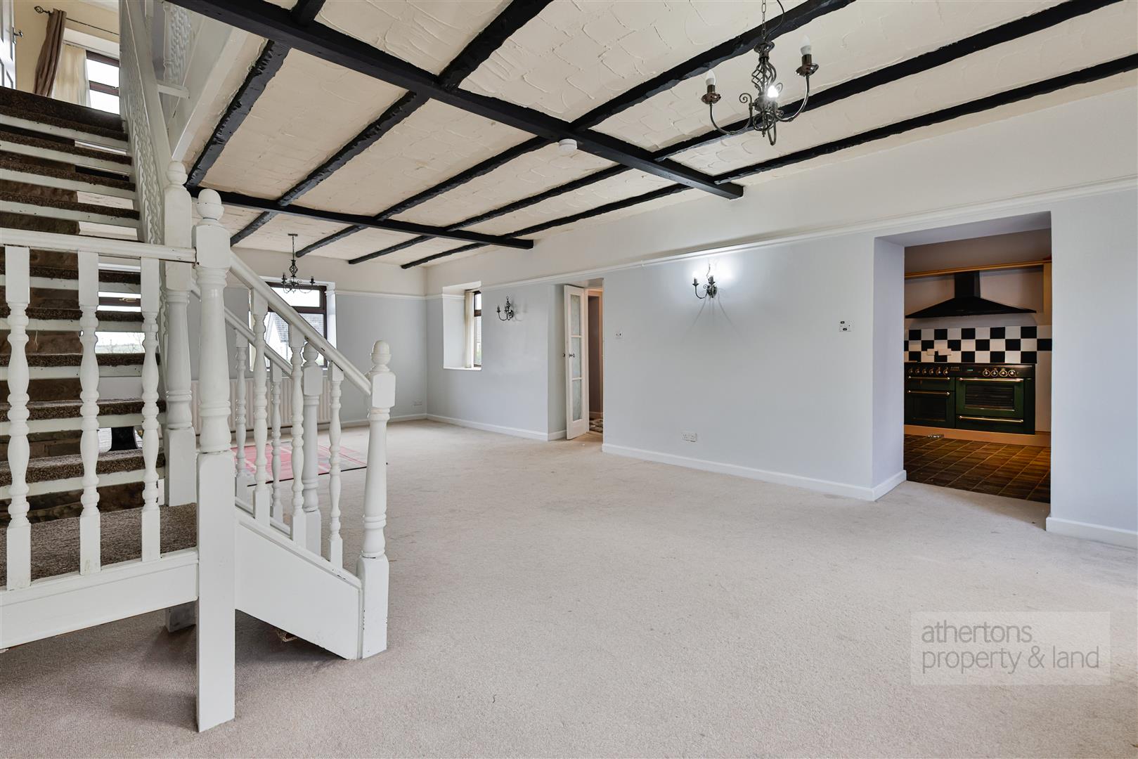 The property is entered via a welcoming entrance hallway with access into the kitchen, shower room and principal reception space is a substantial open-plan lounge and dining area, extending to an impressive 9m in length. Dual-aspect UPVC double-glazed windows to the front and rear allow for excellent natural light, while two central heating radiators ensure year-round comfort. A striking stone chimney breast with inset multi fuel stove forms an attractive focal point, complemented by useful built-in storage.