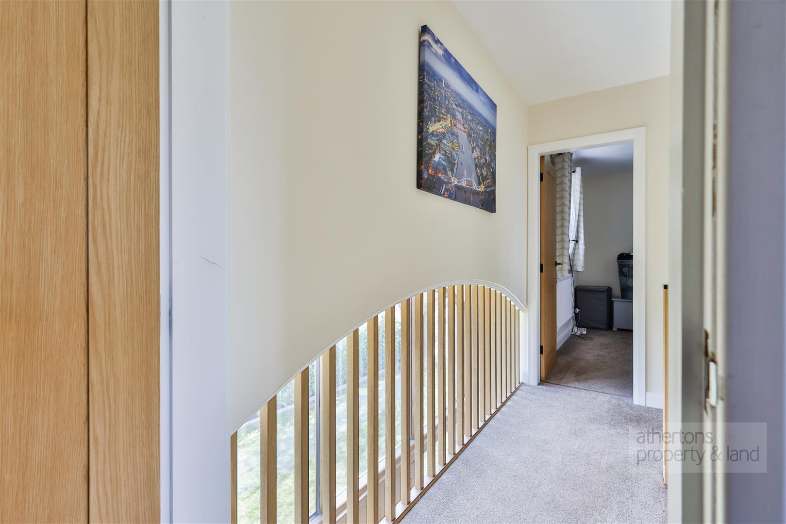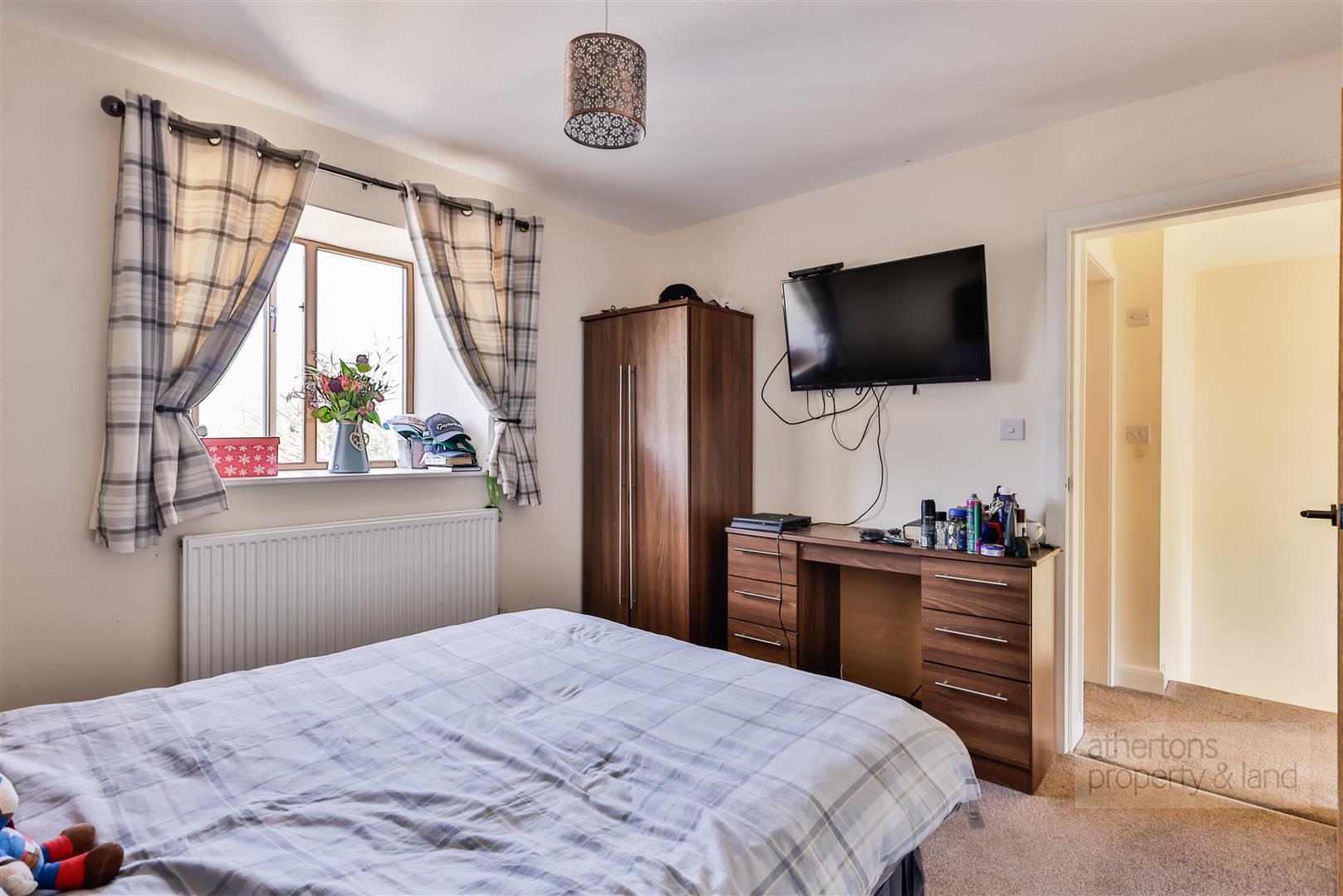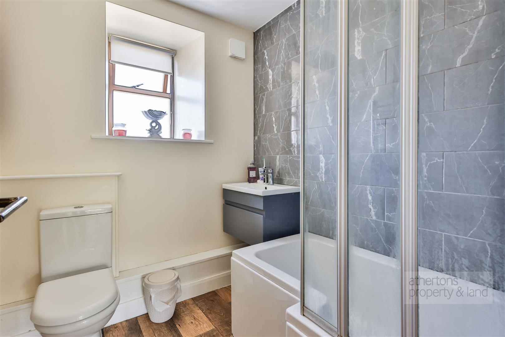 Upstairs, the accommodation comprises three double bedrooms. The principal bedroom enjoys a vaulted ceiling with exposed King Post Truss and stretches the full length of the house. It is served by a contemporary three-piece en-suite shower room. Bedrooms two and three are served by a stylish family bathroom, tastefully fitted with a P-shaped bath and shower over, dual-flush WC, and wash basin.
