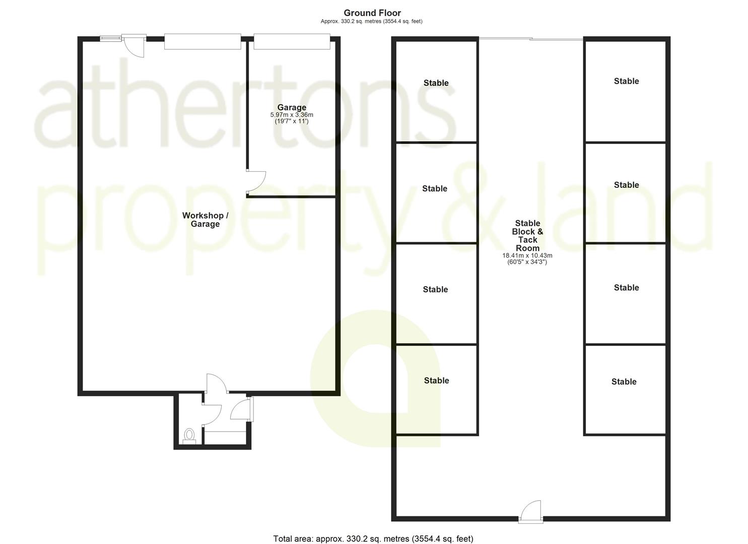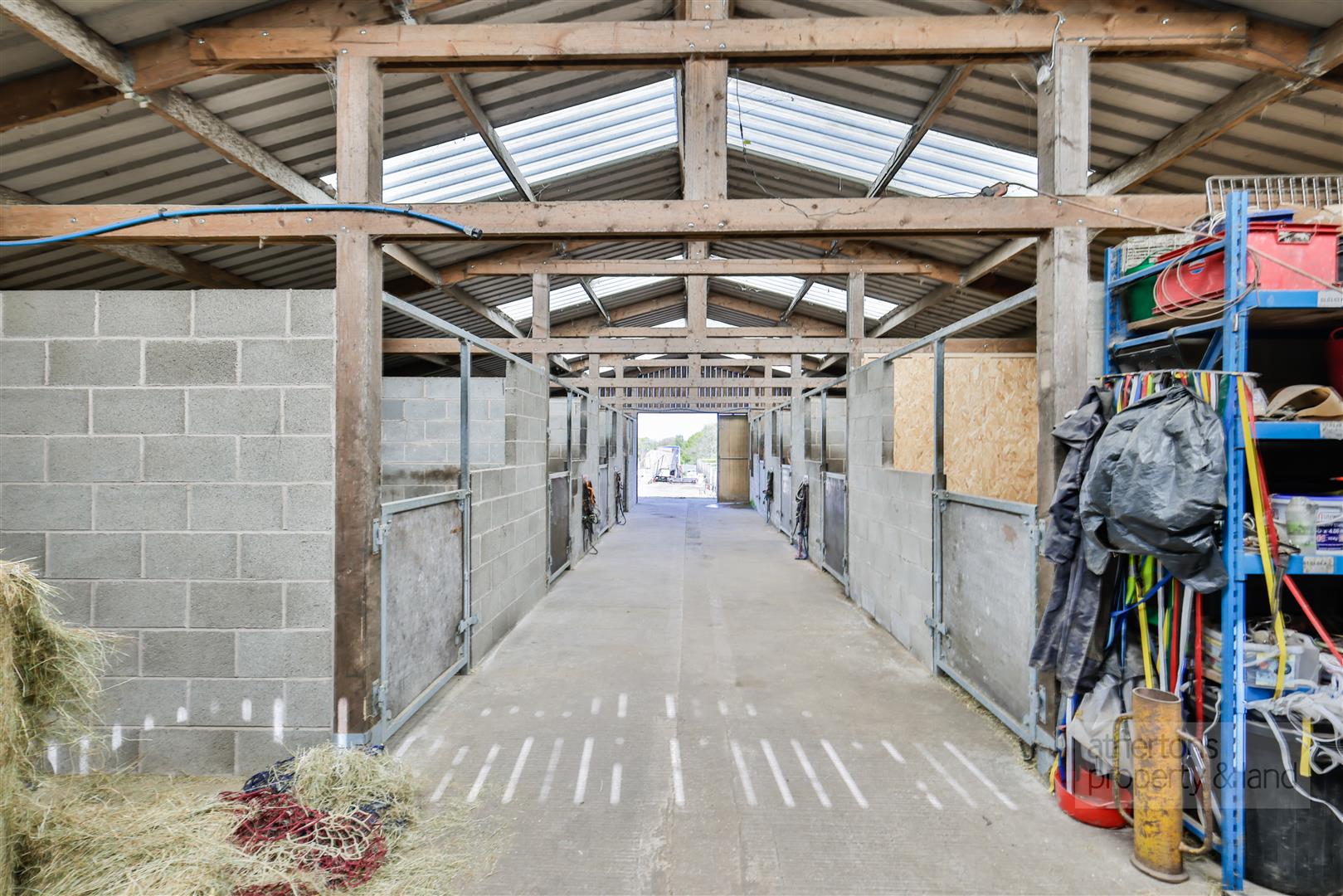 An excellent wooden framed, timber clad Wareings-style building with concrete floors and aprons housing eight block-built stables, storage and tack area