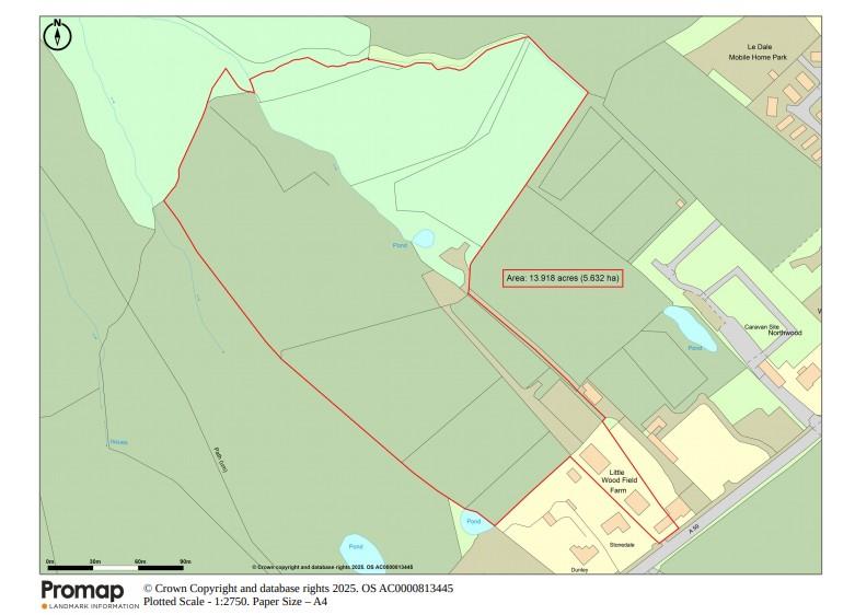 The land extends to approximately 13.9 acres (5.6ha) in total. There is an area of more scrubby land and around 1.5 acres of woodland, comprising predominantly silver birch. The remaining 12.5 acres is split into five good sized paddocks; all are horse-fenced with easy access to all fields via a sound hardcore track, with a generous turnaround area at the northern boundary. Mains water is supplied to all the fields.