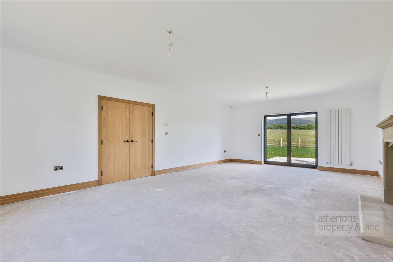 Constructed using Structurally Insulated Panels (SIPs) and finished in beautifully crafted natural stone masonry, the property achieves exceptional thermal performance while maintaining a timeless rural aesthetic. Aluminium-framed windows and doors, under-floor heating throughout the tiled ground floor, and high-specification fixtures and fittings underscore the attention to detail throughout the home.