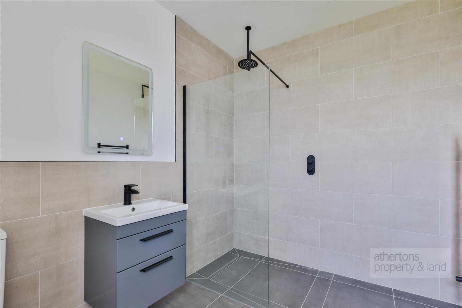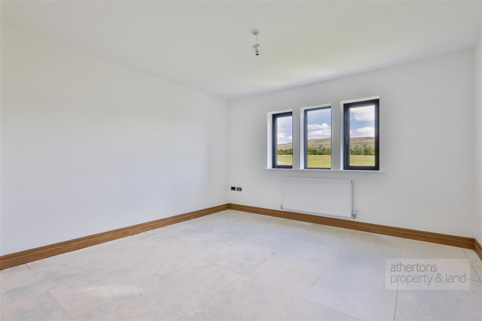 The first floor is equally impressive, with a spacious central landing giving access to five double bedrooms, all offering charming rural aspects. The principal suite benefits from a fitted dressing room and stylish tiled en suite shower room, while bedroom two also features an en suite. Bedrooms three and four are generous doubles with picturesque outlooks, and bedroom five includes a fitted dressing area with built-in wardrobes. A luxurious four-piece family bathroom completes the floor, featuring a freestanding bath, walk-in rainfall shower, and twin ‘his and hers’ sinks set in a floating vanity.