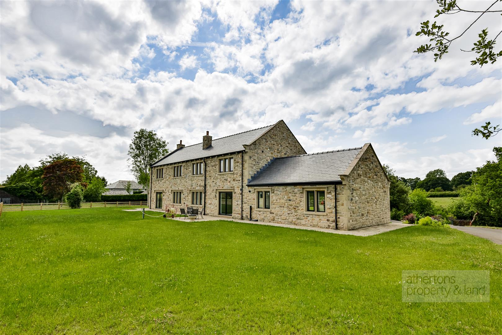 Externally, Thorneyholme is discreetly positioned at the end of a private road, approached via a large tarmacadam and gravelled driveway. A vaulted double garage adjoins the main house and includes twin electric roller doors, fitted base units with utility plumbing, and a partitioned WC. A subterranean garage building with power laid on offers additional secure parking or workshop space. The wrap-around gardens are a particular highlight, comprising expansive lawns to the front and rear, paved patios, and mature planting. The rear garden enjoys, paved patio’s and uninterrupted south-westerly views over open countryside, ideal for al fresco dining and evening sunsets.