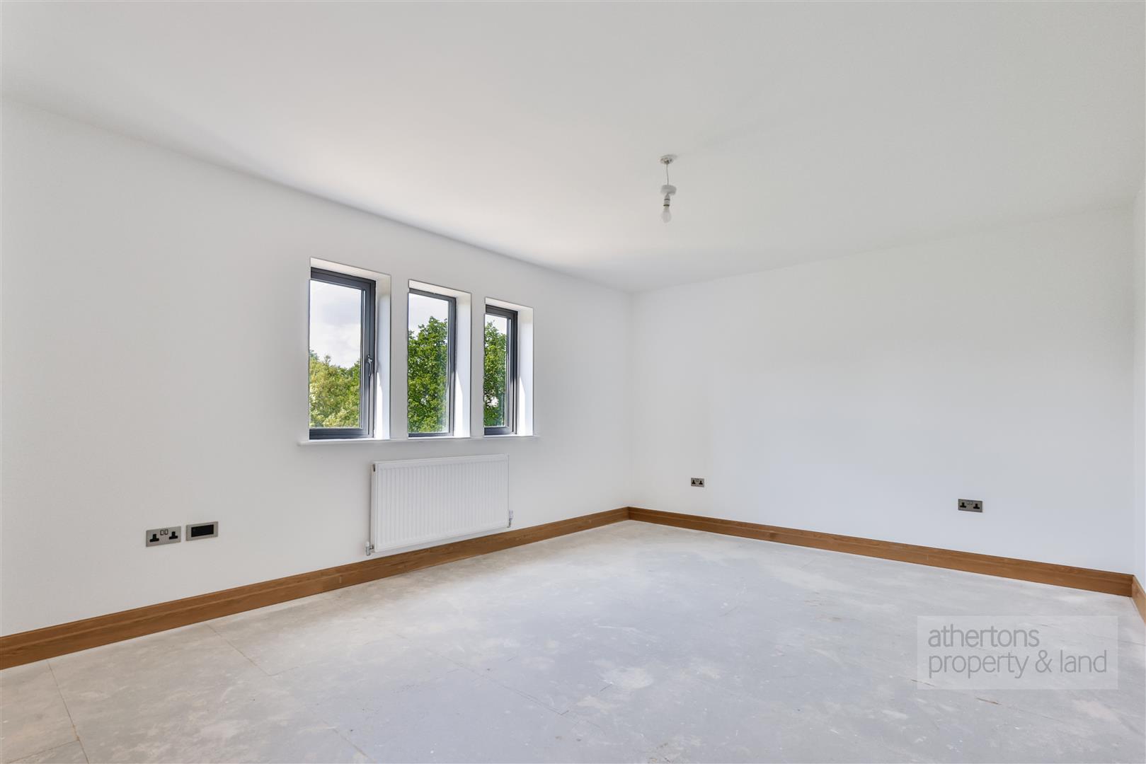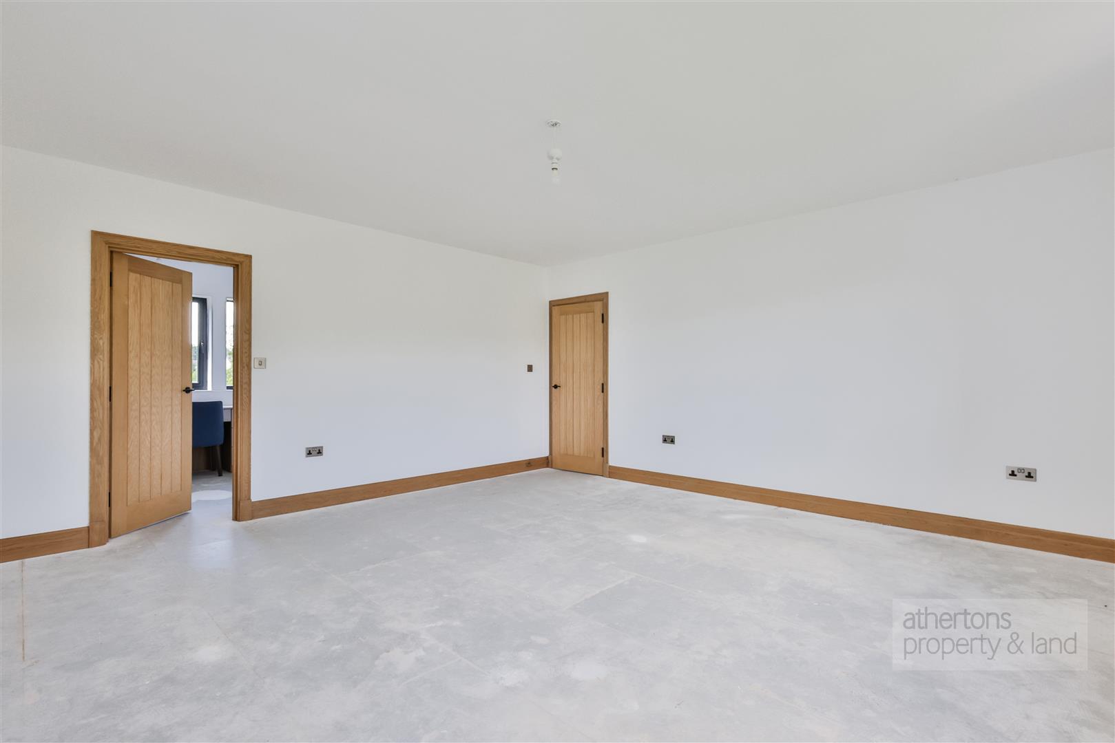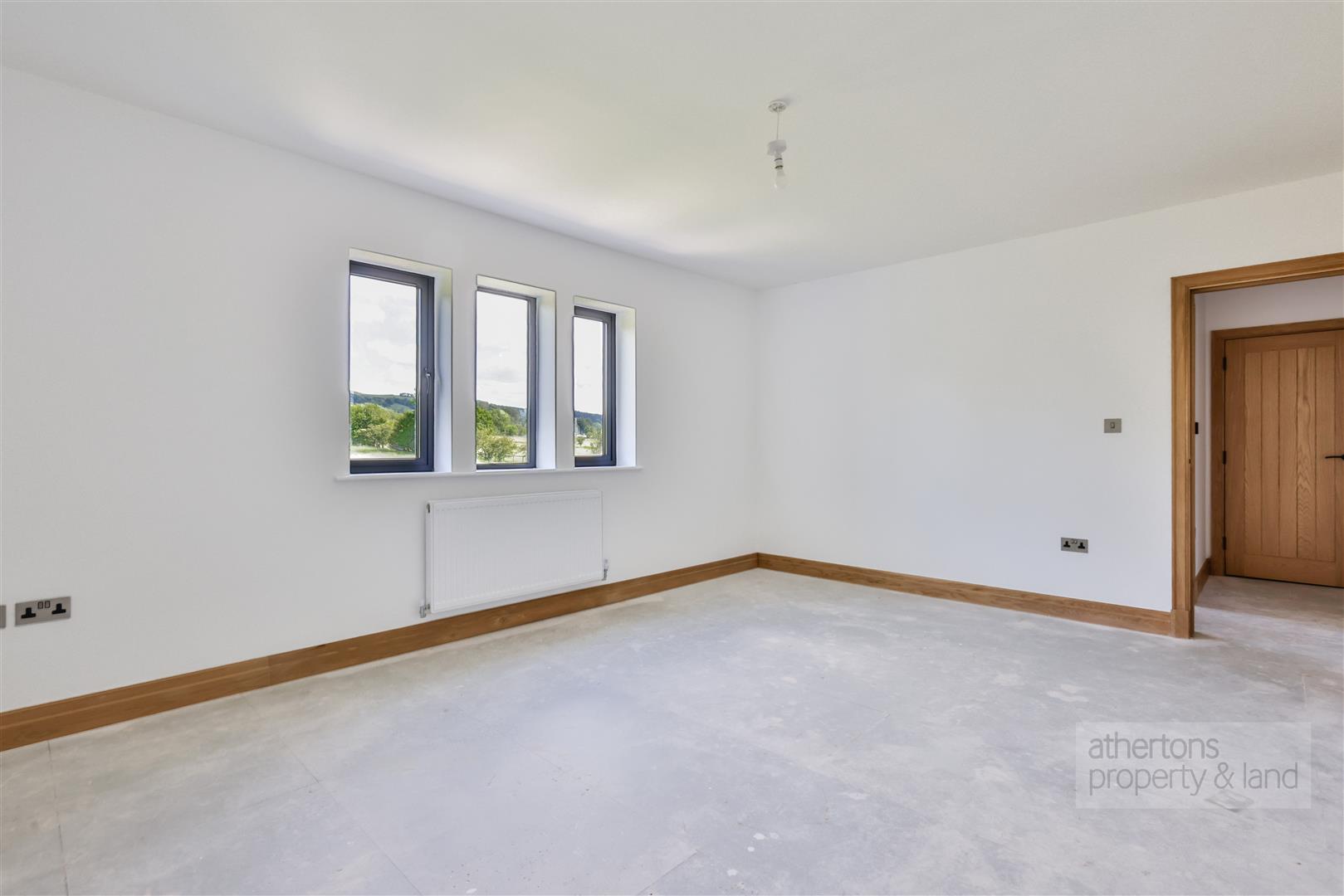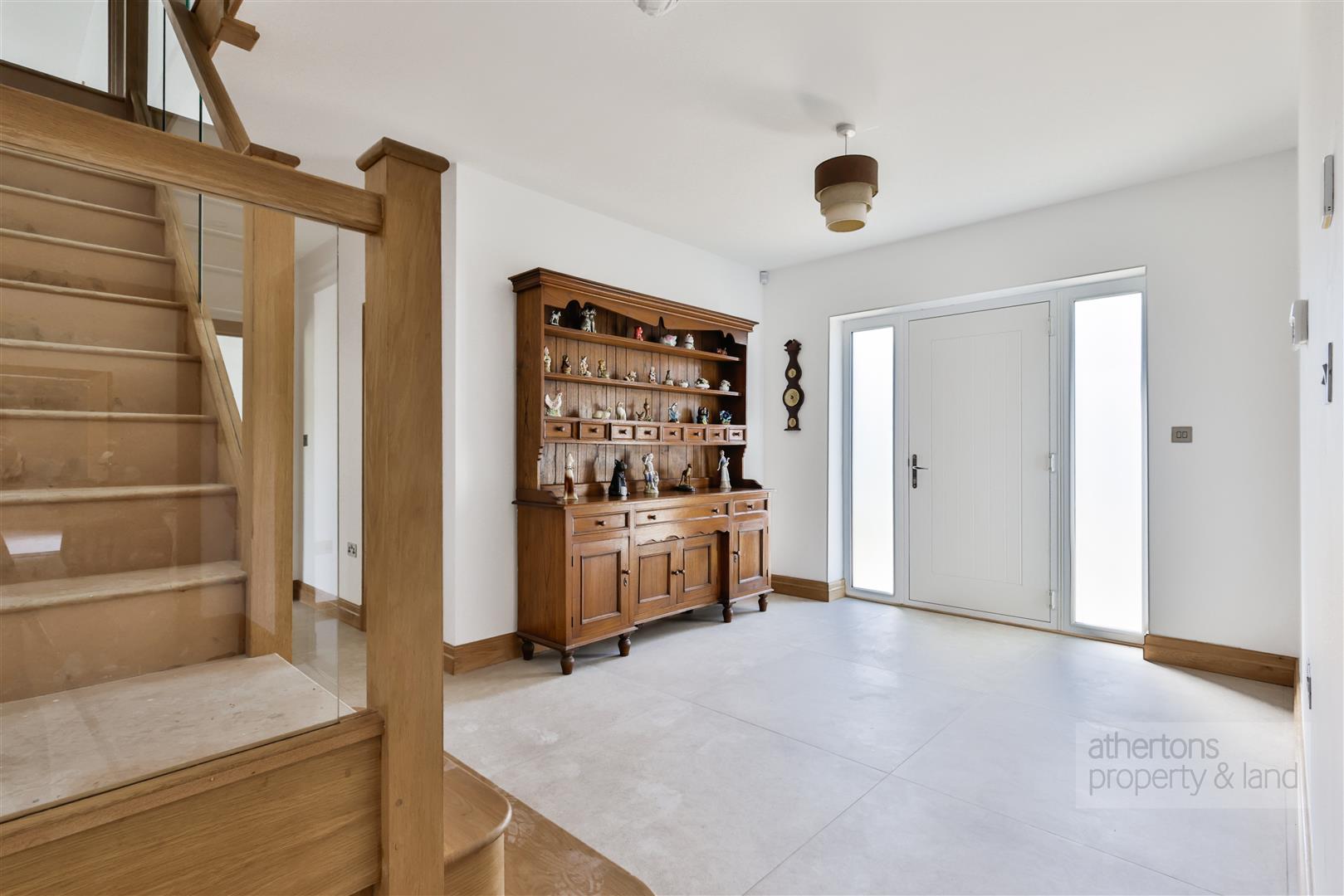 The first floor is equally impressive, with a spacious central landing giving access to five double bedrooms, all offering charming rural aspects. The principal suite benefits from a fitted dressing room and stylish tiled en suite shower room, while bedroom two also features an en suite. Bedrooms three and four are generous doubles with picturesque outlooks, and bedroom five includes a fitted dressing area with built-in wardrobes. A luxurious four-piece family bathroom completes the floor, featuring a freestanding bath, walk-in rainfall shower, and twin ‘his and hers’ sinks set in a floating vanity.