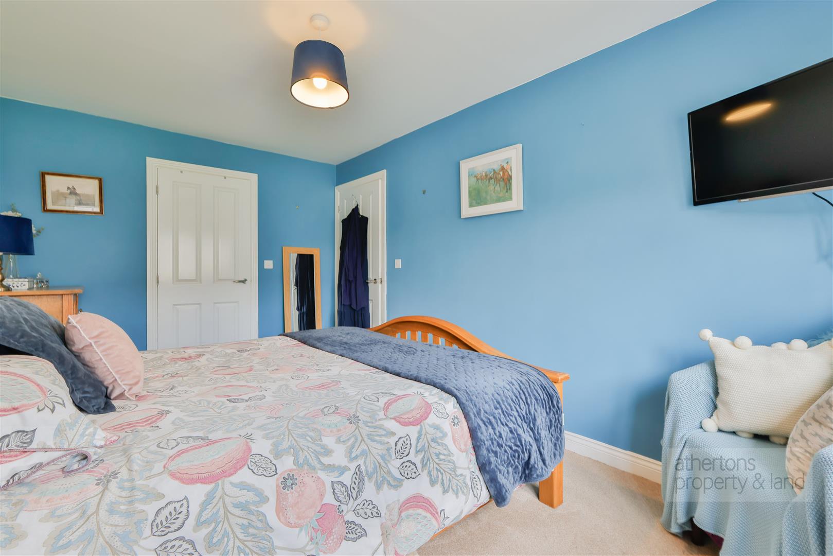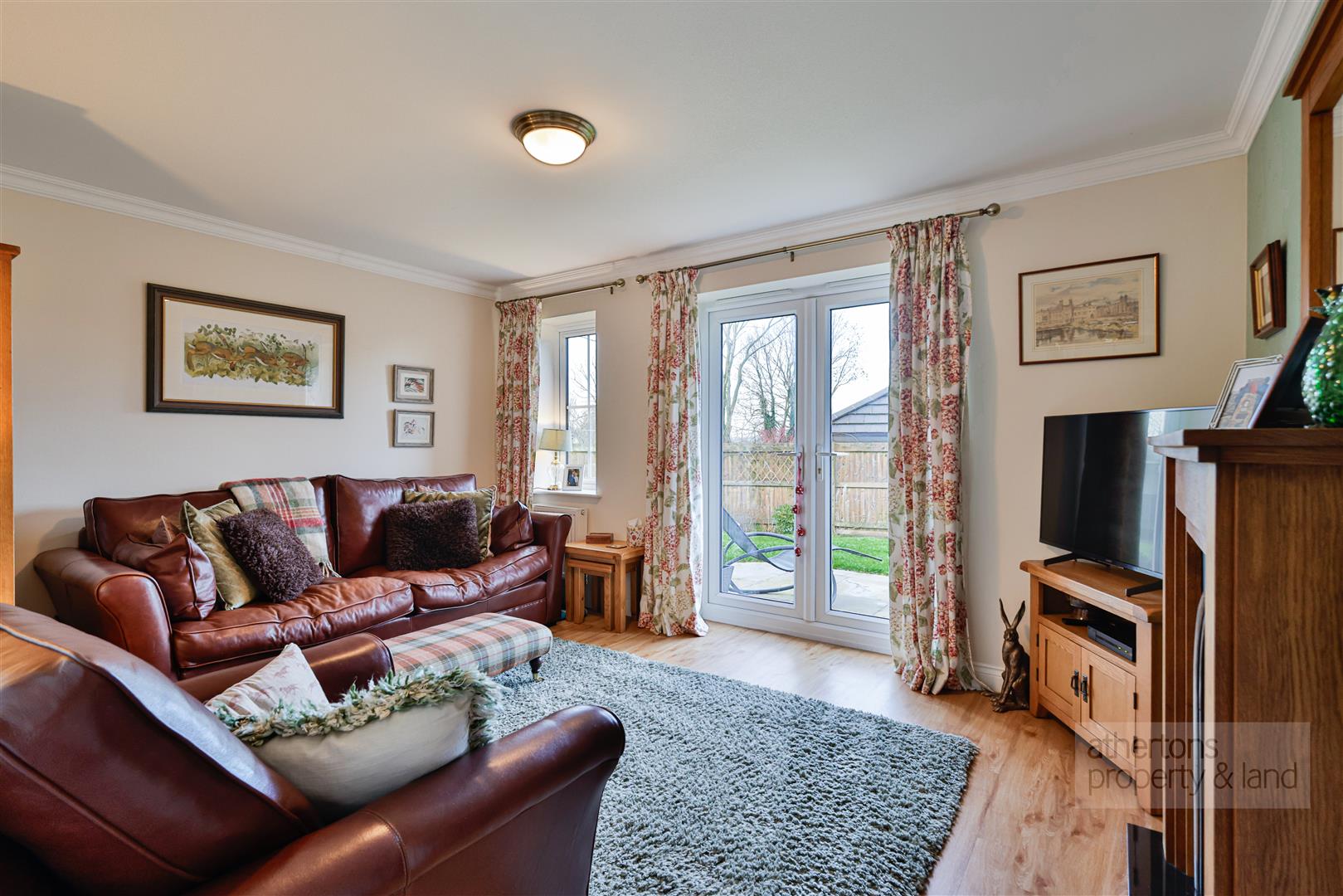 Towards the rear of the property is the light and airy main bedroom with door into the walk-in-wardrobe which originally was designated as en-suite shower room and has the plumbing available in any purchaser wishes to convert. The main lounge is also located to the rear of the property with upvc double glazed French doors opening onto the rear patio area flooding the room with natural light.