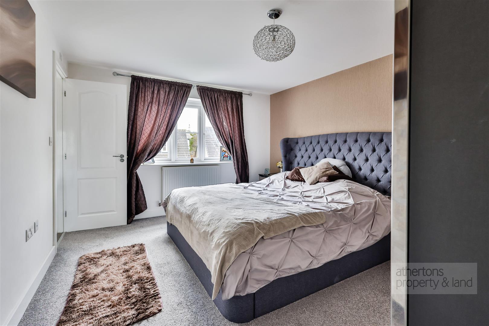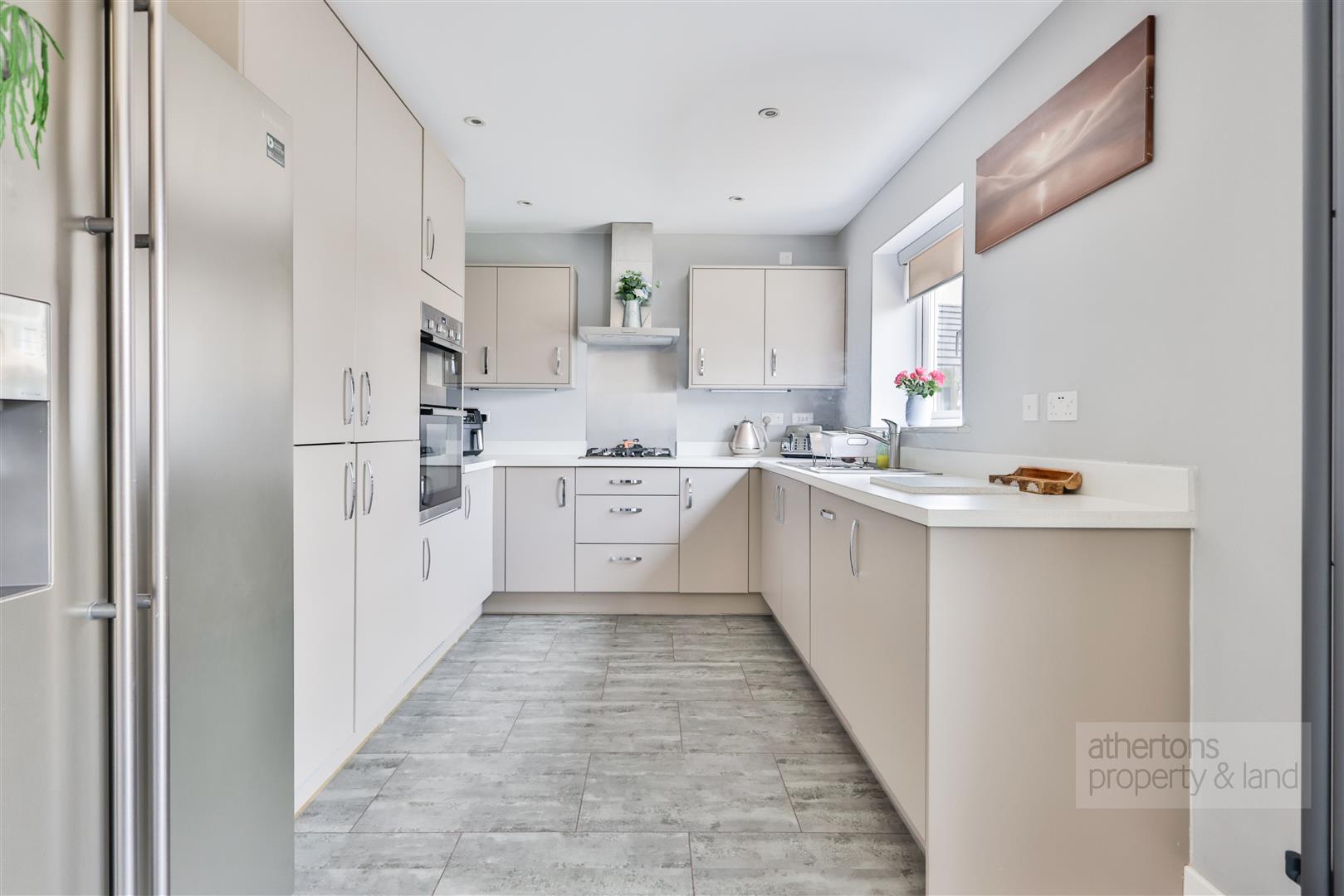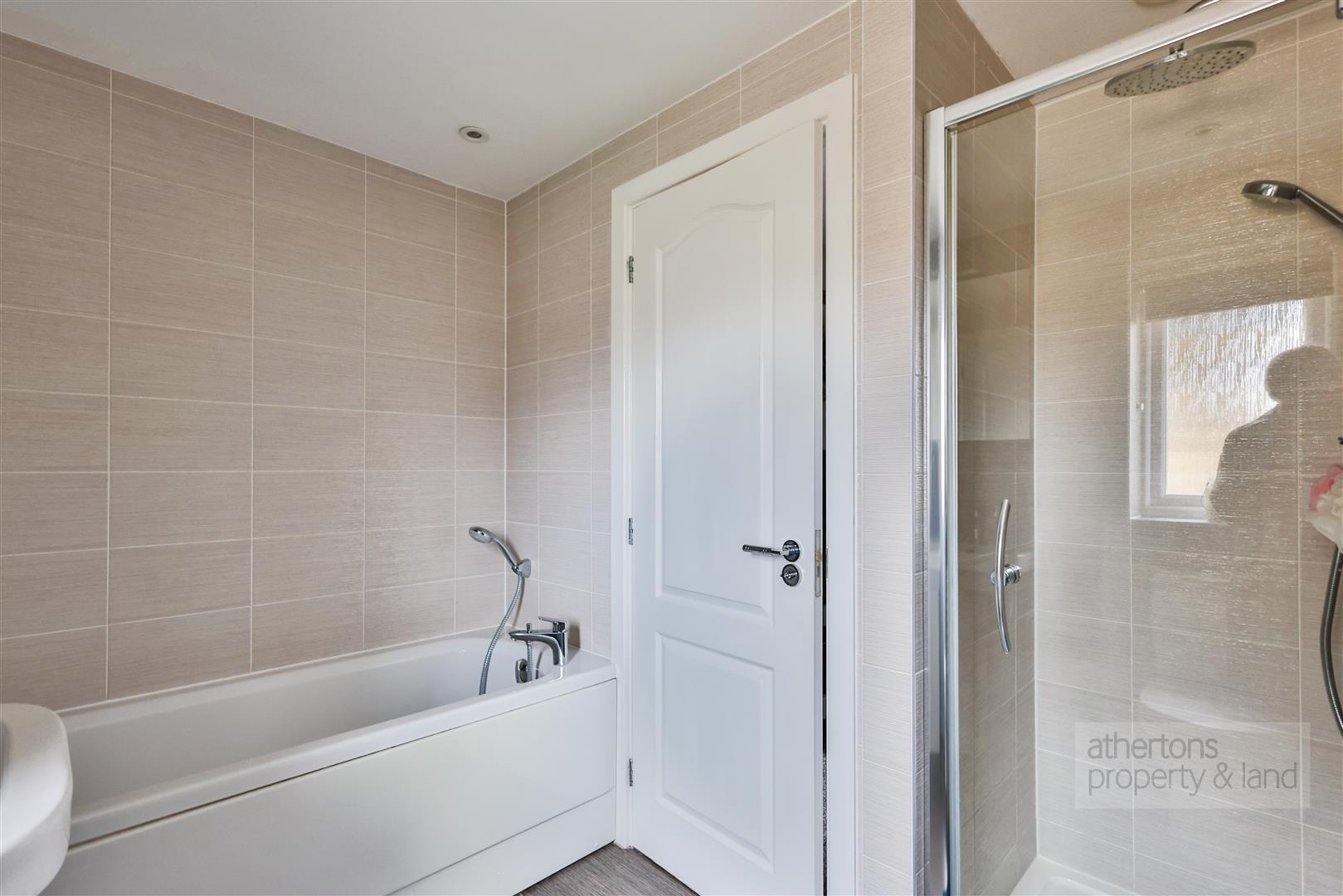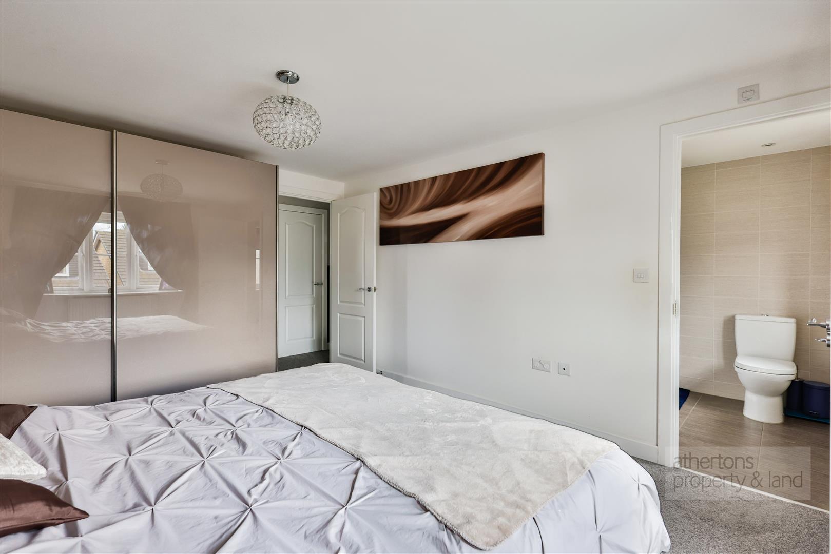 Ascending to the first floor, a stylishly panelled landing leads to four generously sized bedrooms and a family bathroom. The principal suite is beautifully appointed, featuring space for fitted wardrobes and an elegant en-suite shower room, complete with a fully tiled three-piece suite. All the bedrooms are comfortable and spacious doubles with ample space for wardrobe furniture, while the stylish four-piece family bathroom boasts a separate shower cubicle and full tiling for a sleek finish. An airing cupboard housing the Tribune water cylinder completes the upstairs layout.