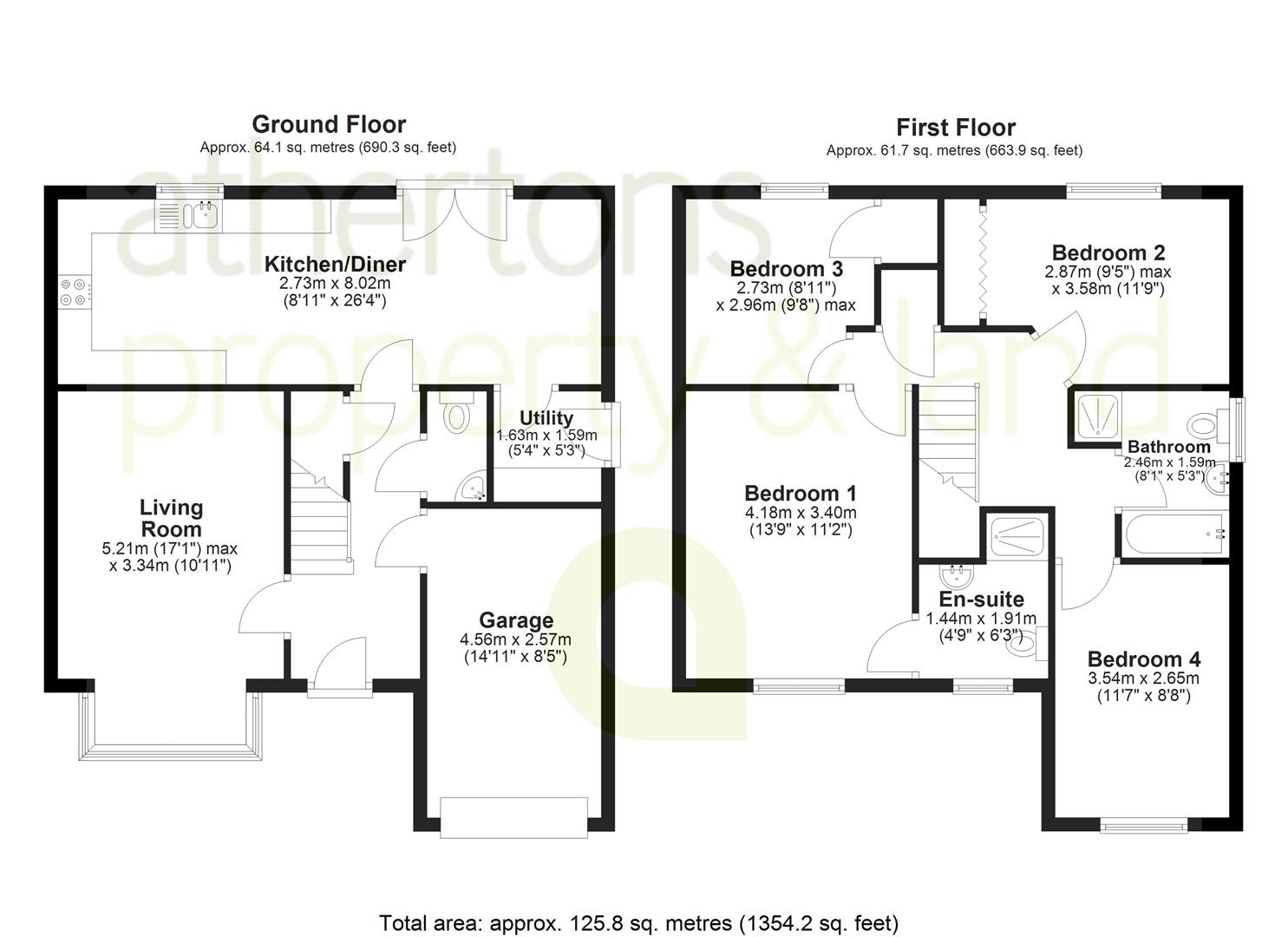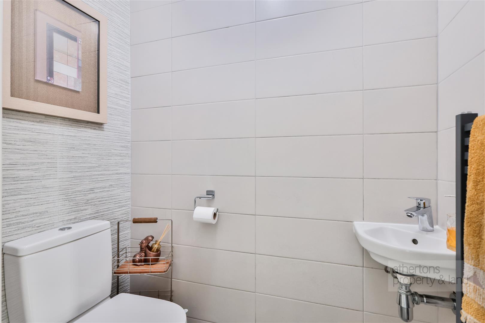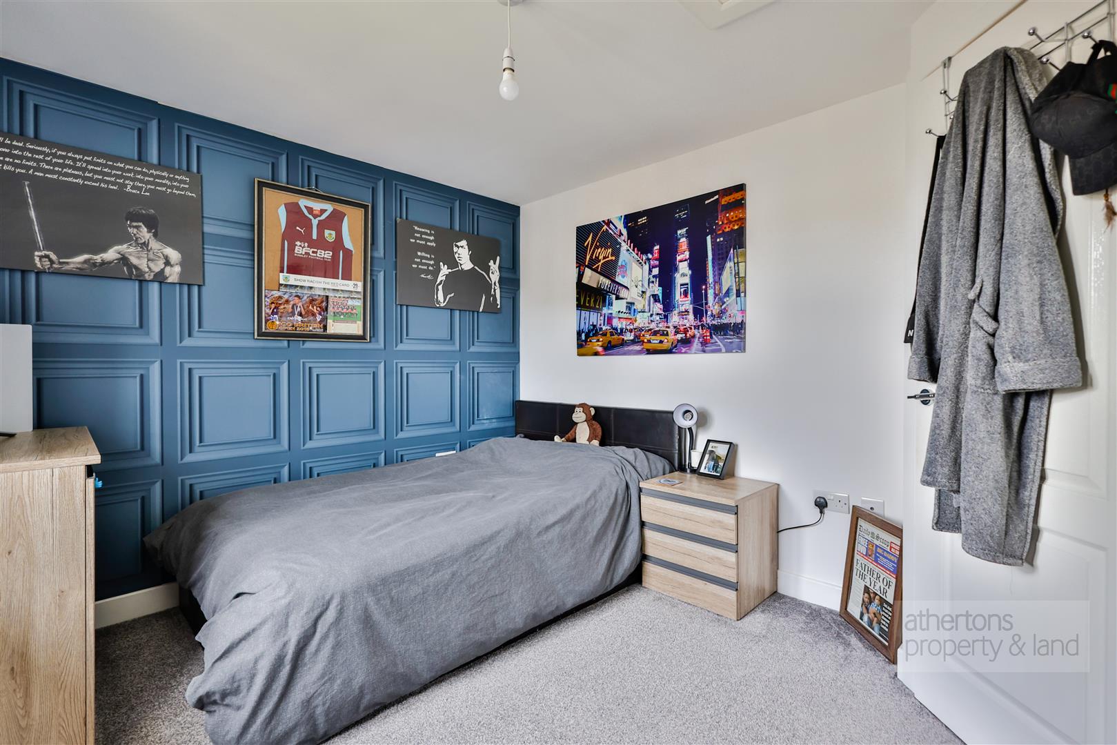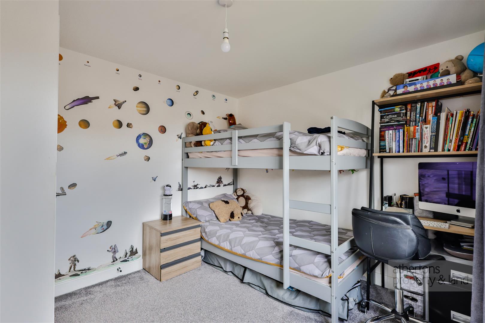 Ascending to the first floor, a stylishly panelled landing leads to four generously sized bedrooms and a family bathroom. The principal suite is beautifully appointed, featuring space for fitted wardrobes and an elegant en-suite shower room, complete with a fully tiled three-piece suite. All the bedrooms are comfortable and spacious doubles with ample space for wardrobe furniture, while the stylish four-piece family bathroom boasts a separate shower cubicle and full tiling for a sleek finish. An airing cupboard housing the Tribune water cylinder completes the upstairs layout.