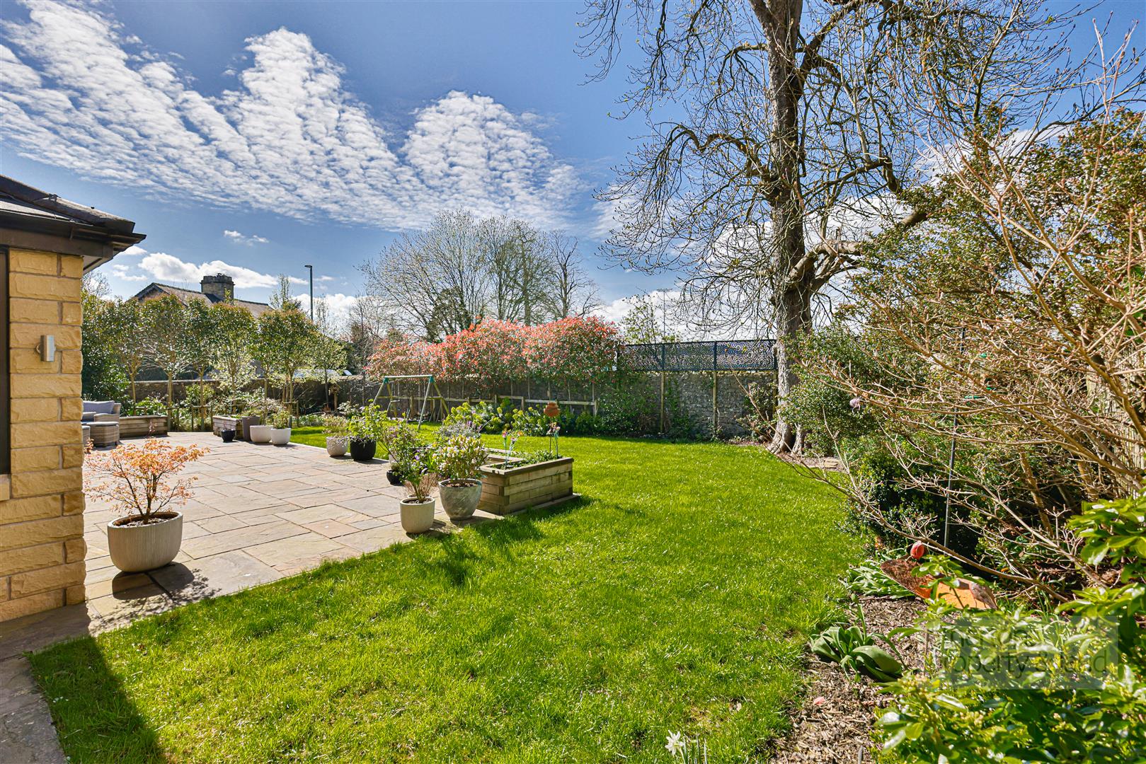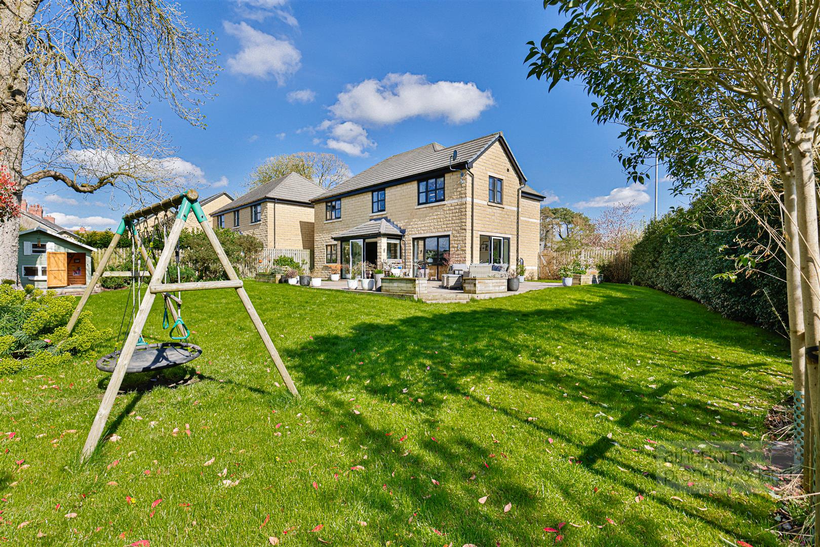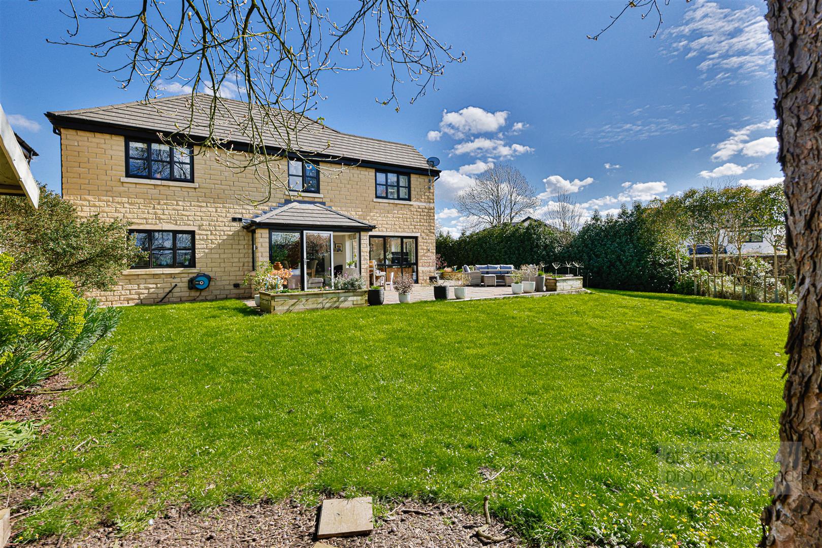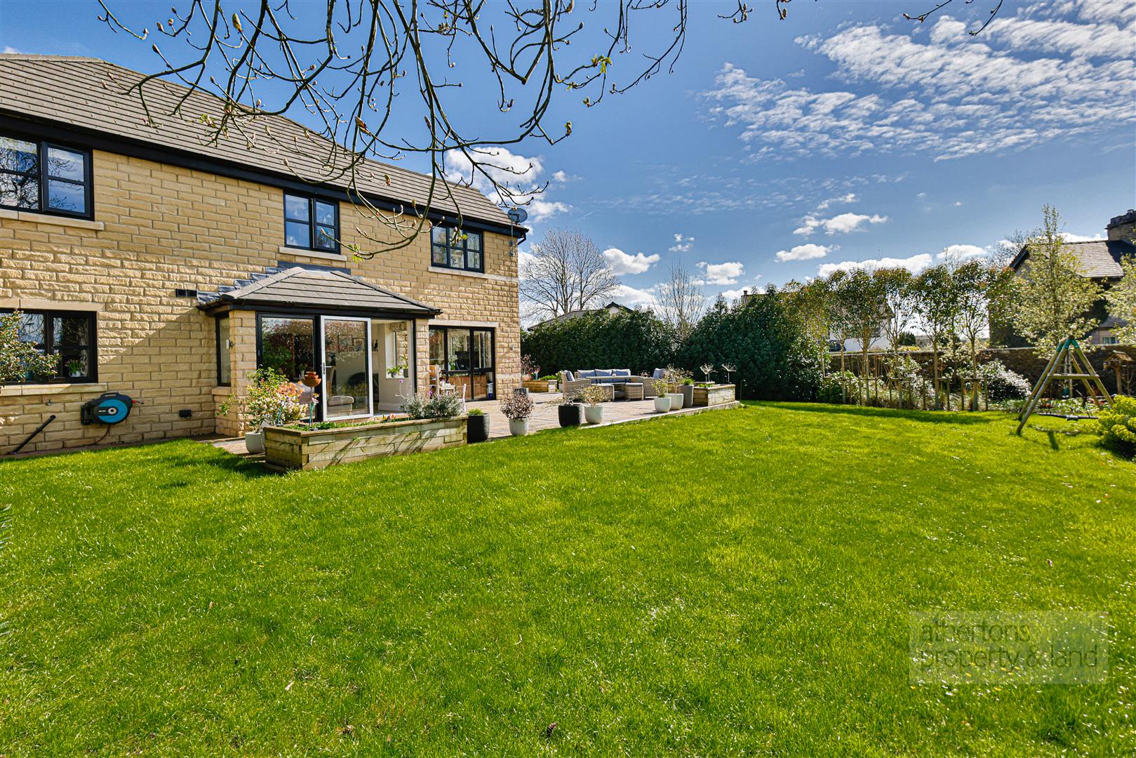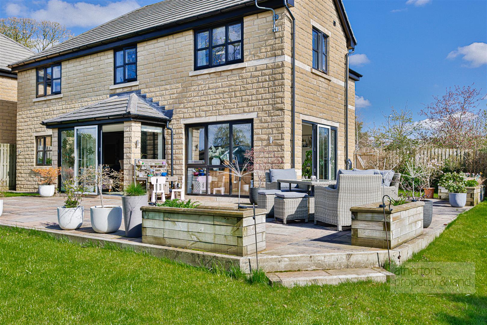 The first of seven luxury homes on a select cul-de-sac adjoining St Paul’s Church. A tarmacadam drive taking five to six cars when required, leads to an integral double garage with an up-and-over door, the boiler and hot water cylinder are located in here. The front garden is lawned behind a stone perimeter wall with a variety of young trees including an oak, cherry blossom and apple blossom. The hedging includes beech and hawthorn. Basking in the warmth and light of a spring or summer sun, the south – south/westerly orientation of the side and rear gardens are a genuine delight. With a wraparound flagged patio accessible from both sets of bifold doors. Contained within stone walls on its south and western boundaries, the lawn is near level and together with a magnificent mature sycamore, you’ll see extensive tree planting which effectively screen the garden. The low border planting is also quite beautiful and combine together to create a wonderfully balanced garden for the whole family to enjoy.