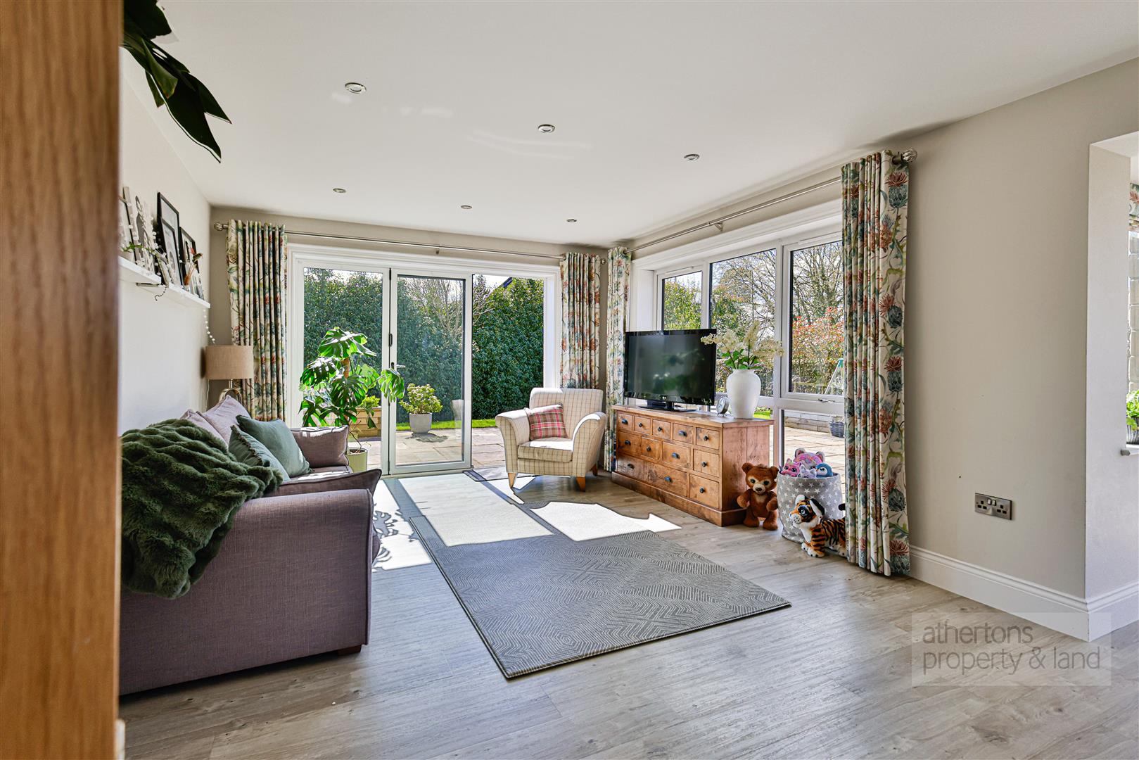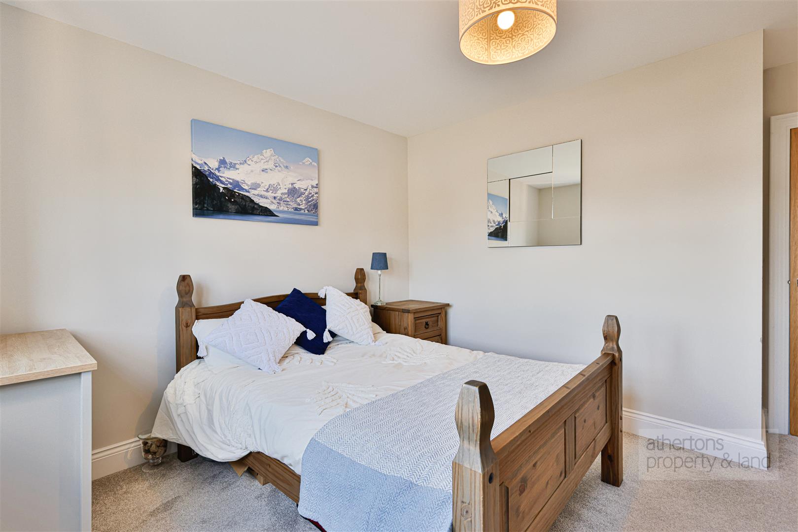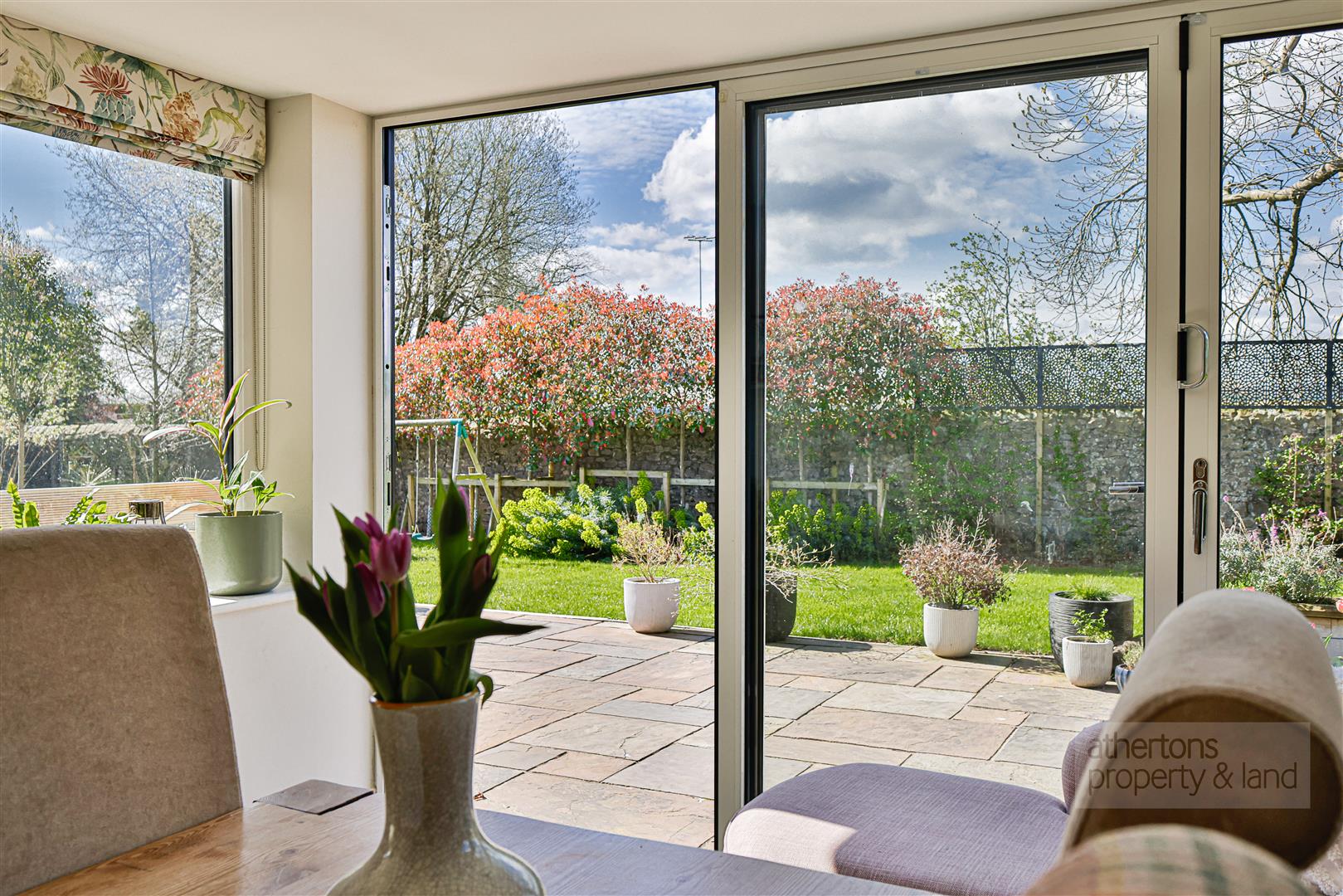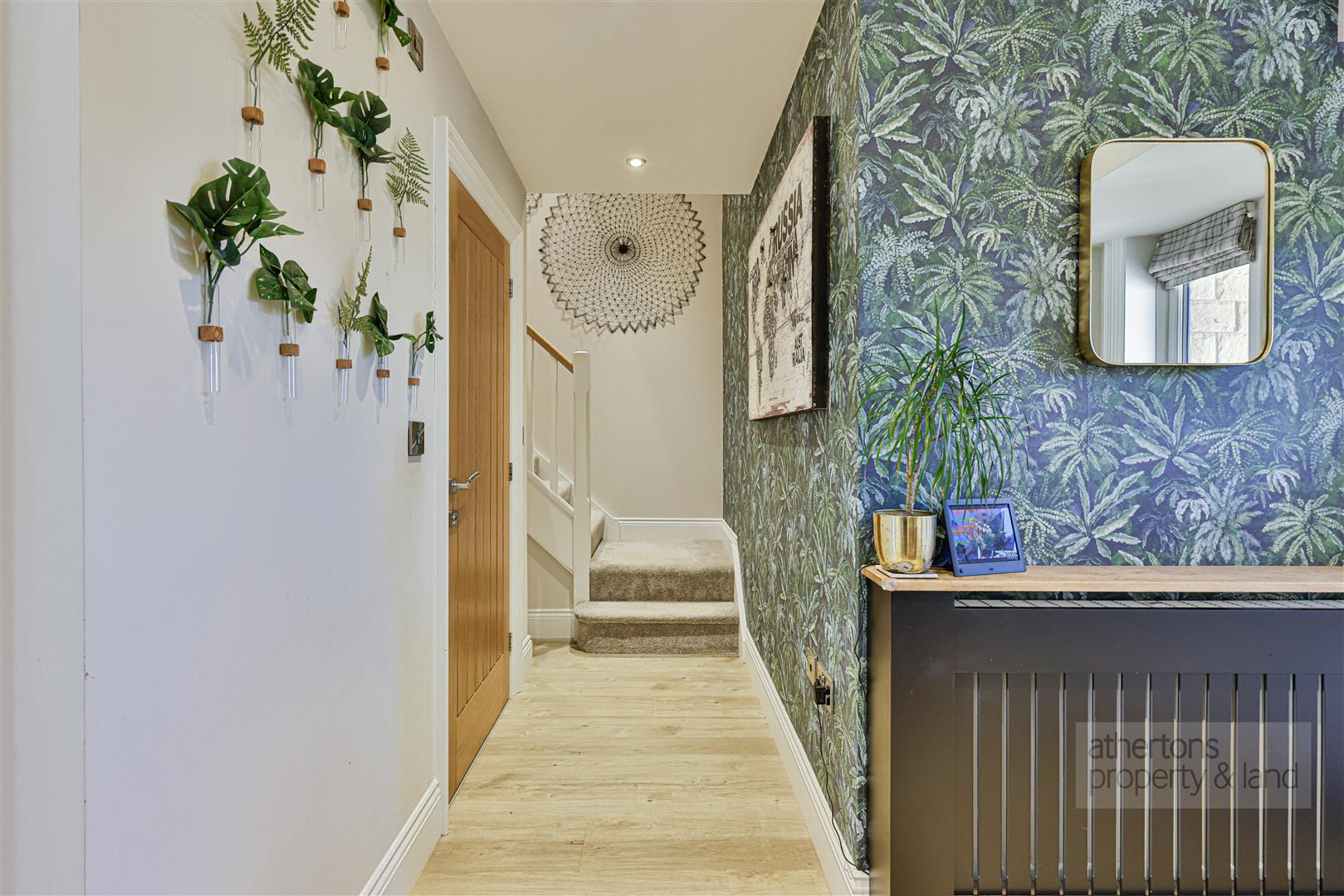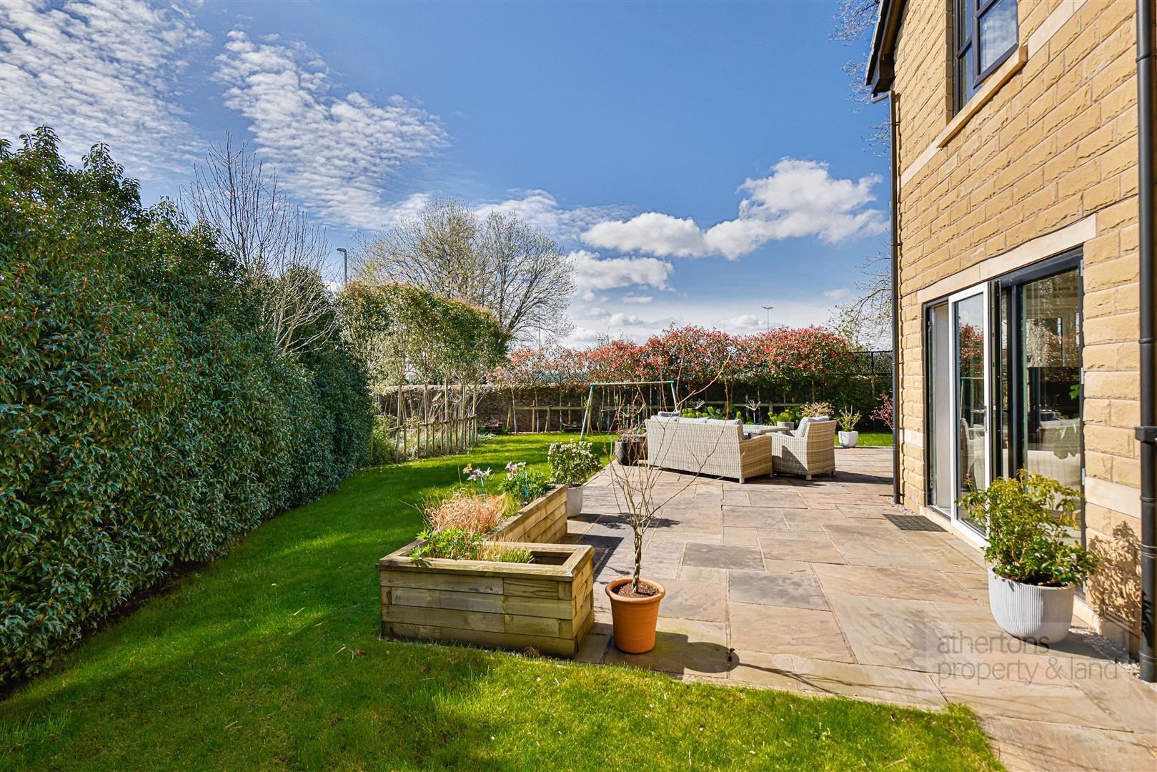 The first of seven luxury homes on a select cul-de-sac adjoining St Paul’s Church. A tarmacadam drive taking five to six cars when required, leads to an integral double garage with an up-and-over door, the boiler and hot water cylinder are located in here. The front garden is lawned behind a stone perimeter wall with a variety of young trees including an oak, cherry blossom and apple blossom. The hedging includes beech and hawthorn. Basking in the warmth and light of a spring or summer sun, the south – south/westerly orientation of the side and rear gardens are a genuine delight. With a wraparound flagged patio accessible from both sets of bifold doors. Contained within stone walls on its south and western boundaries, the lawn is near level and together with a magnificent mature sycamore, you’ll see extensive tree planting which effectively screen the garden. The low border planting is also quite beautiful and combine together to create a wonderfully balanced garden for the whole family to enjoy.