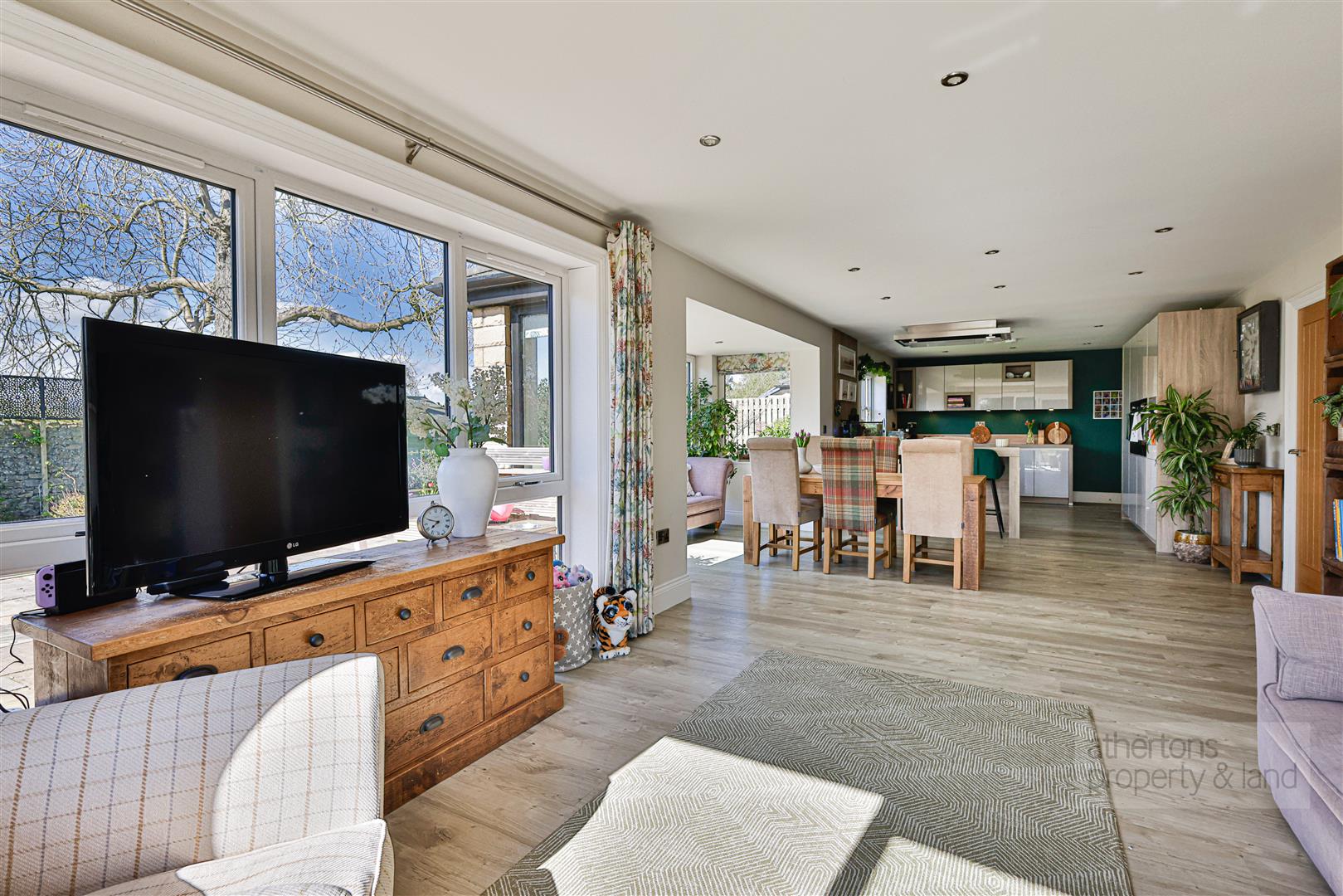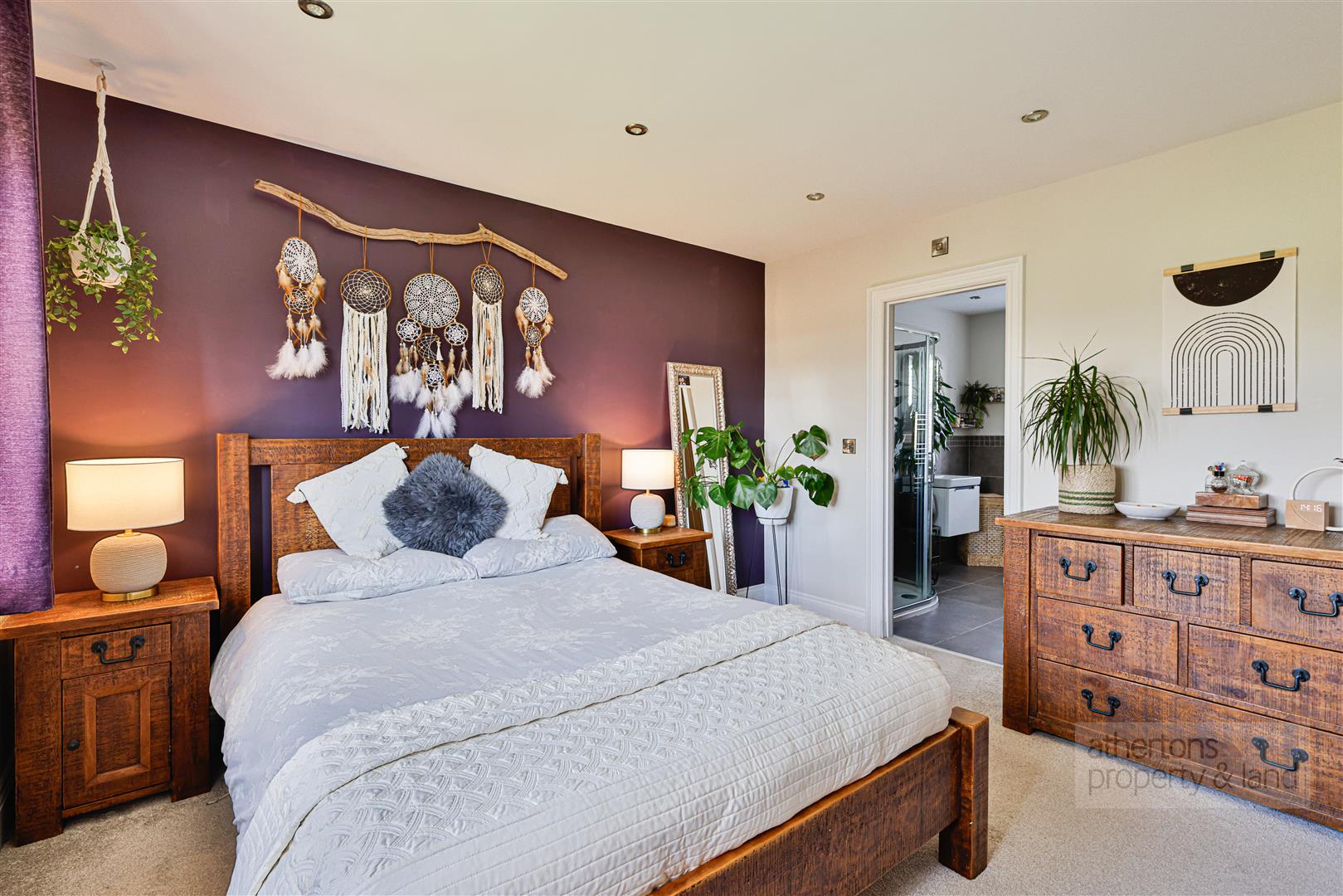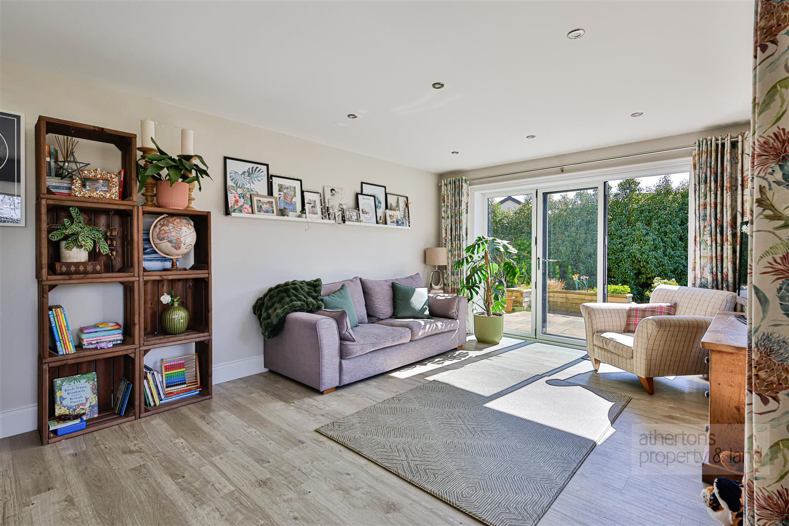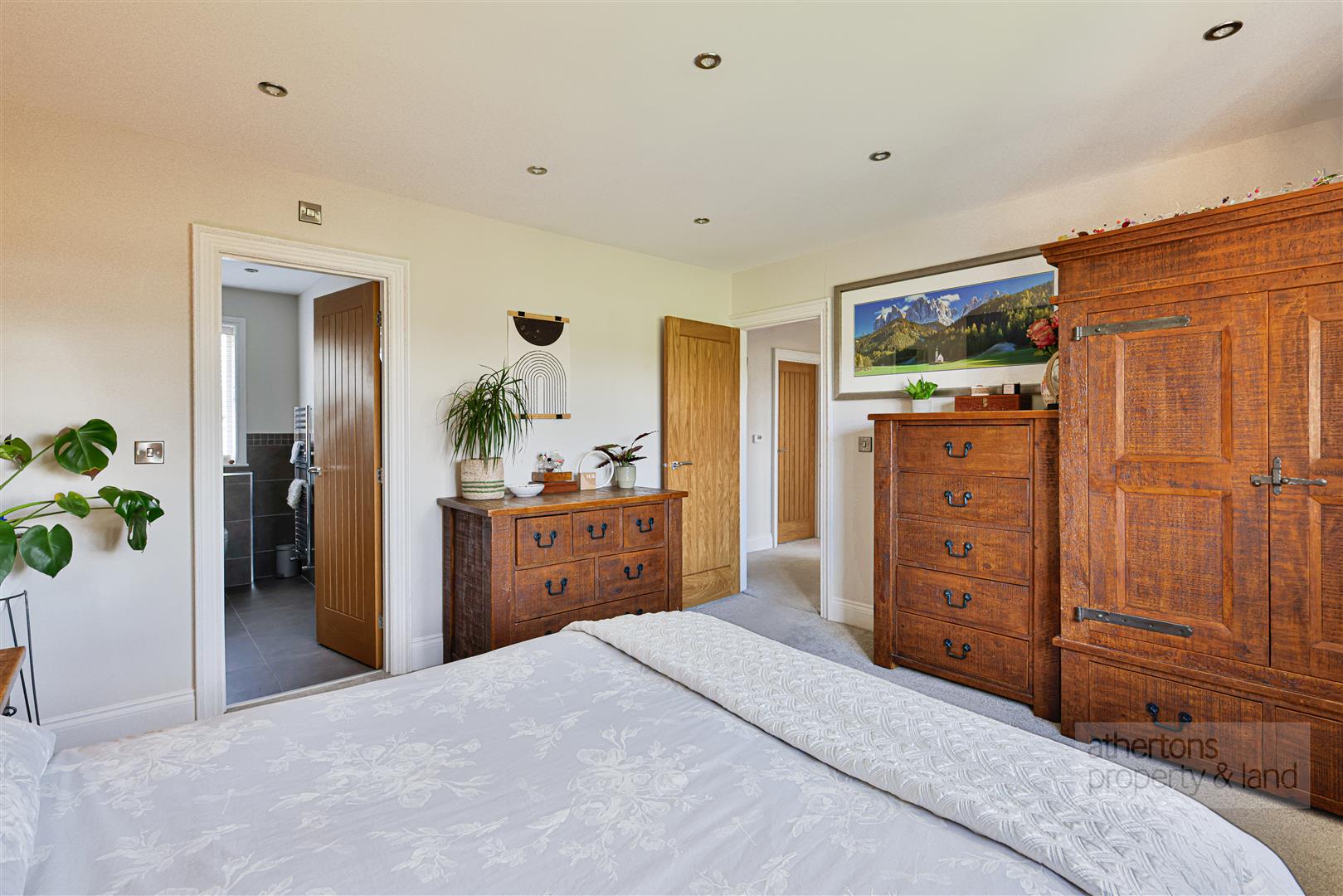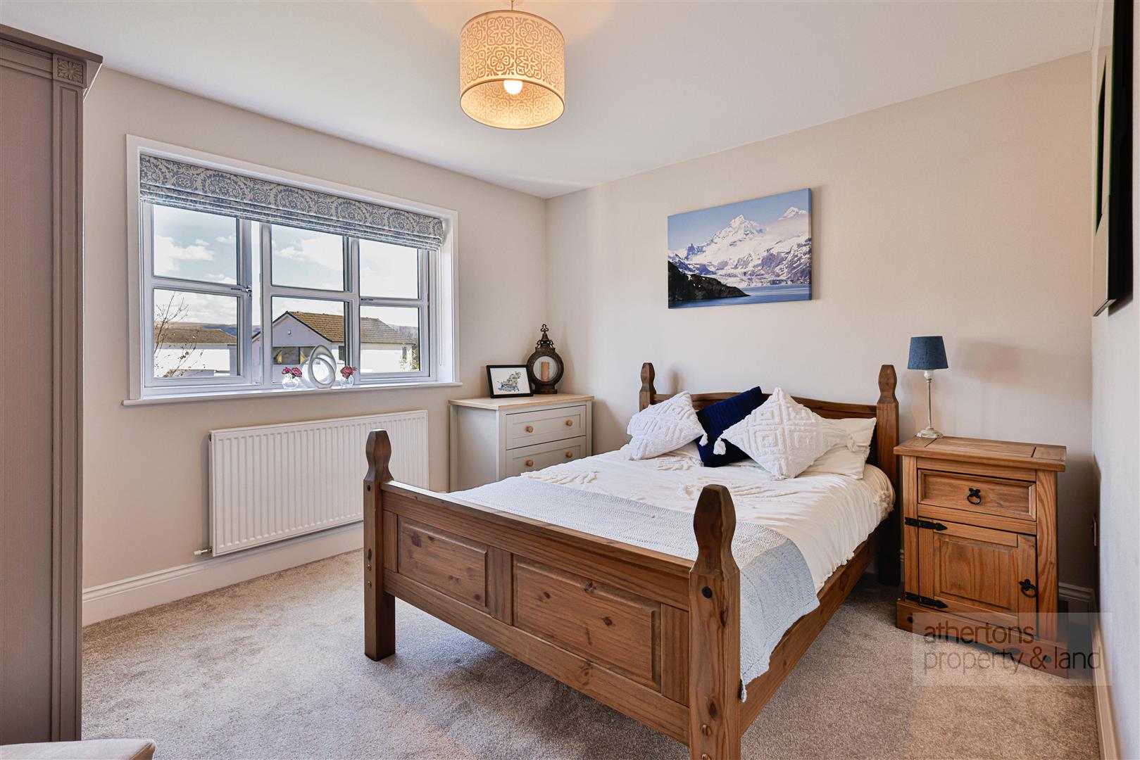 The first of seven luxury homes on a select cul-de-sac adjoining St Paul’s Church. A tarmacadam drive taking five to six cars when required, leads to an integral double garage with an up-and-over door, the boiler and hot water cylinder are located in here. The front garden is lawned behind a stone perimeter wall with a variety of young trees including an oak, cherry blossom and apple blossom. The hedging includes beech and hawthorn. Basking in the warmth and light of a spring or summer sun, the south – south/westerly orientation of the side and rear gardens are a genuine delight. With a wraparound flagged patio accessible from both sets of bifold doors. Contained within stone walls on its south and western boundaries, the lawn is near level and together with a magnificent mature sycamore, you’ll see extensive tree planting which effectively screen the garden. The low border planting is also quite beautiful and combine together to create a wonderfully balanced garden for the whole family to enjoy.