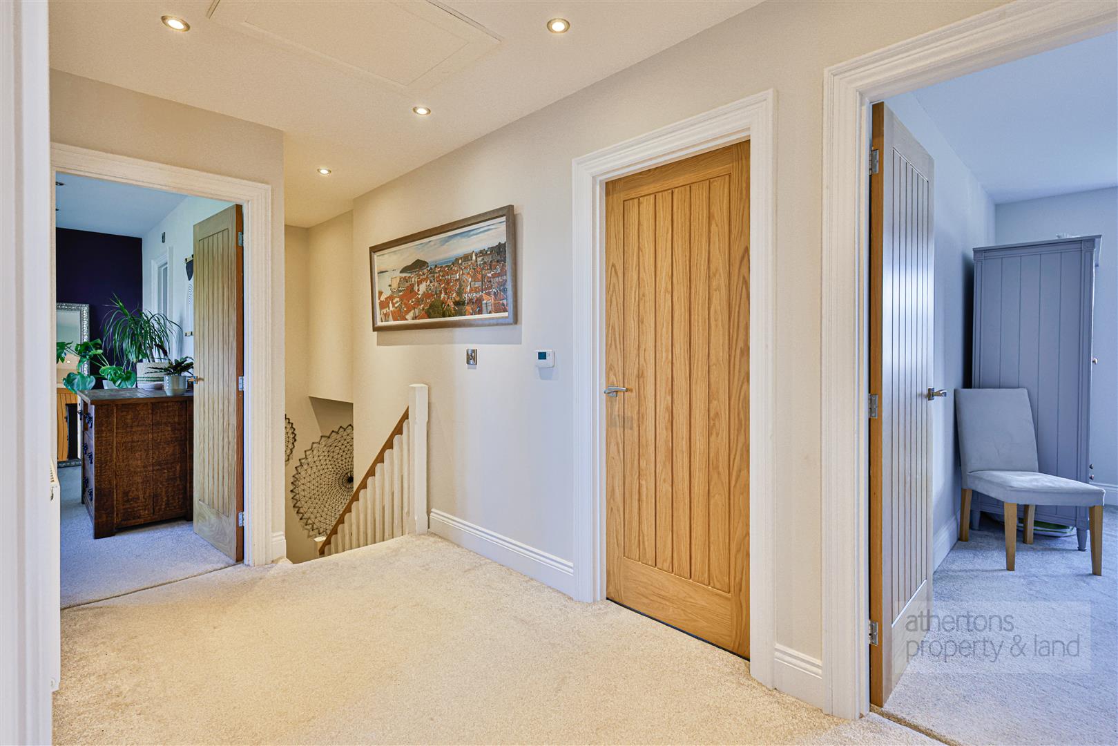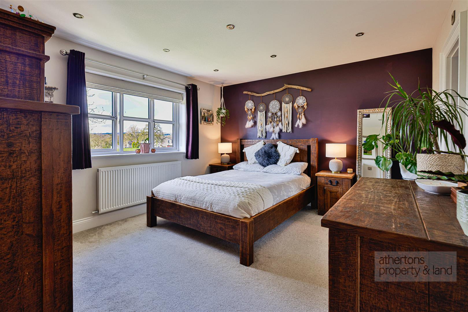 On the first floor landing there is a linen cupboard, loft access hatch and an array of LED downlighters. With five bedrooms, it displays its family credentials very well. The master is rear facing, looking over the sports fields to Waddington Fell and Kemple End in the distance. Its sumptuous en-suite comprising a glazed quadrant cubicle with a Hansgrohe rainfall fixed head and a hand-held wand, concealed cistern wc and a wall hung vanity washbasin. Floor and partial wall tiling, an illuminated mirror and a chromed ladder radiator to warm your towels. There is also a deep storage cupboard. Bedroom 2 has a great view of Pendle Hill and St Paul’s Church with its impressive mature trees. Bedroom 3 has dual aspect windows with views of Whalley Nab, Kemple End, Parlick and Waddington Fells. Bedroom 4 with views of Kemple End and Waddington Fell. Bedroom 5 views to Pendle Hill and Wiswell Moor. Of comparable quality to the en-suite, the four-piece house bathroom comprises a large cubicle with a glass door and a Hansgrohe thermostatic shower with a rainfall fixed head and a hand-held wand. A deep bath, wall hung vanity washbasin and a wall hung concealed cistern wc. A chromed ladder radiator, floor and partial wall flooring and an illuminated mirror. There is also a shelved towelling cupboard.