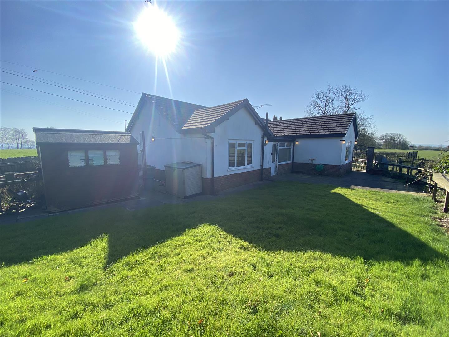 Mainly laid to lawn with patio area and wooden shed. Air source pump.