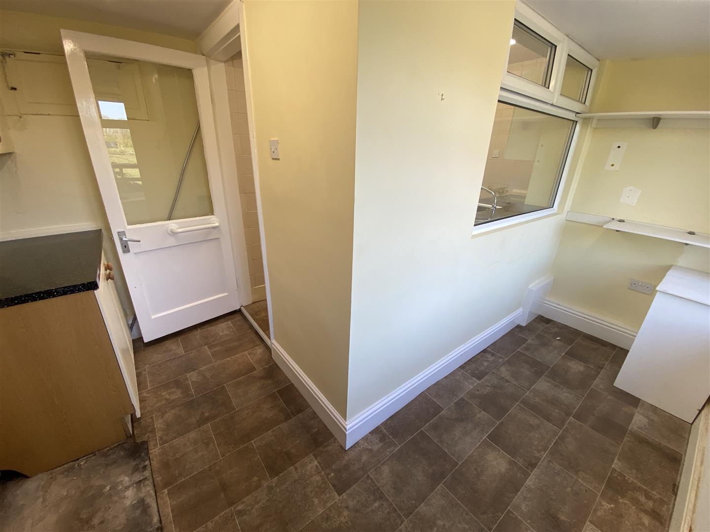 Radiator. Base units and shelving. Window to the rear. External door to rear garden.