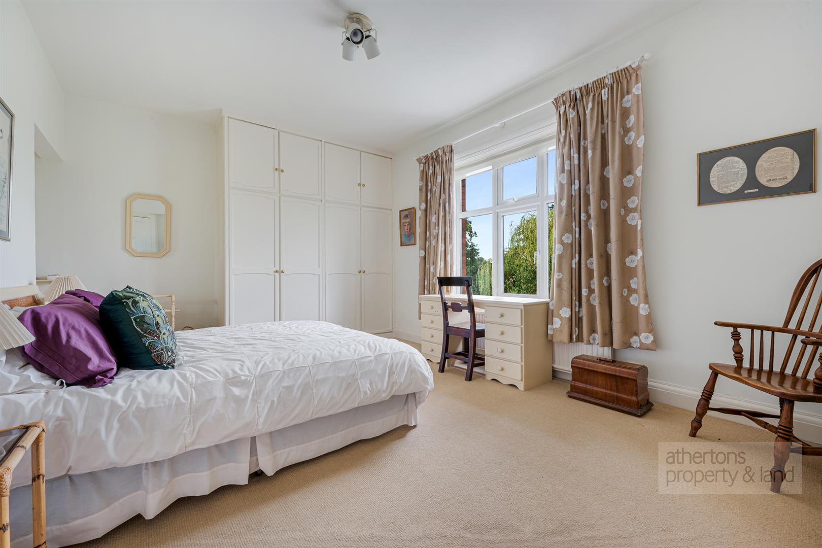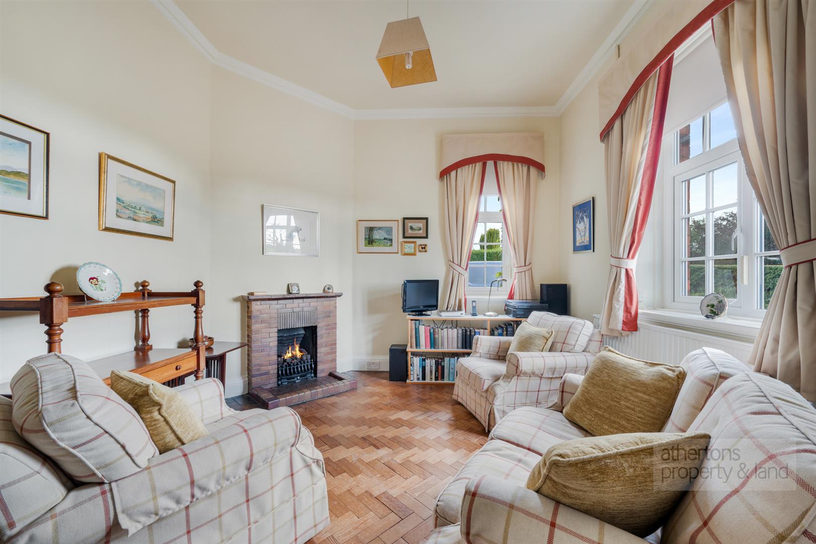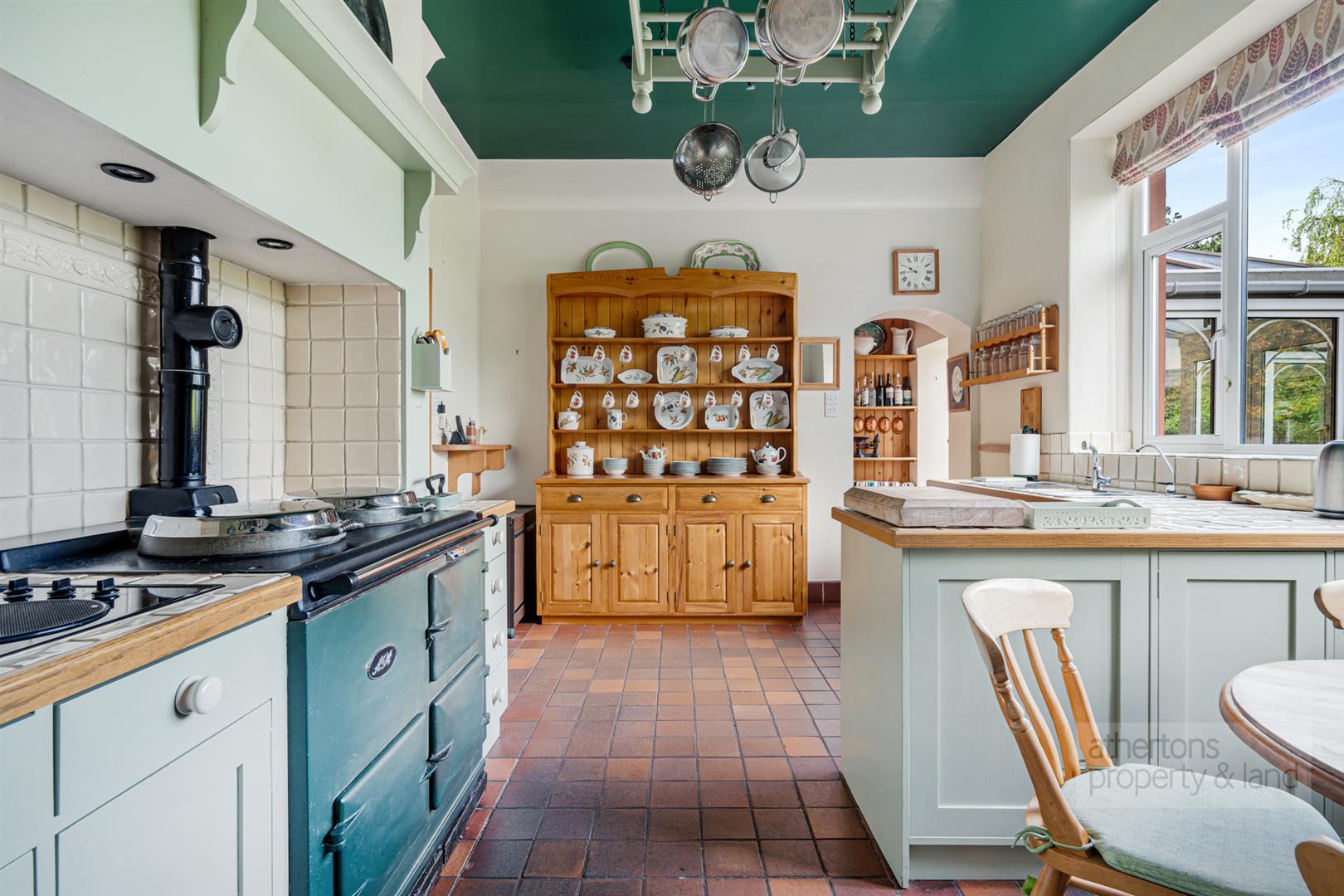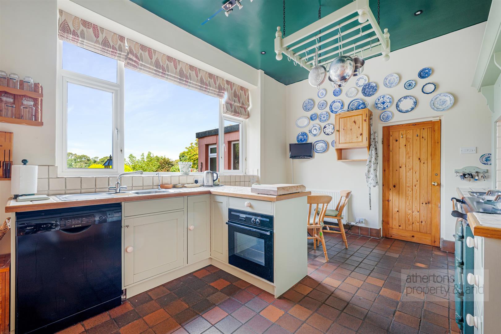 A separate lounge benefits from windows to two elevations and features a woodburning stove set within a fireplace, creating a warm and inviting atmosphere. The kitchen is a bright and welcoming room overlooking the rear gardens and open countryside. Fitted with a range of wall units, it is centred around an Aga which provides both warmth and character. An electric hob, provision for a dishwasher and oven, a one-and-a-half bowl sink and drainer, and a shelved pantry positioned just off the kitchen ensure practicality sits comfortably alongside charm. The boiler is located within the garage.