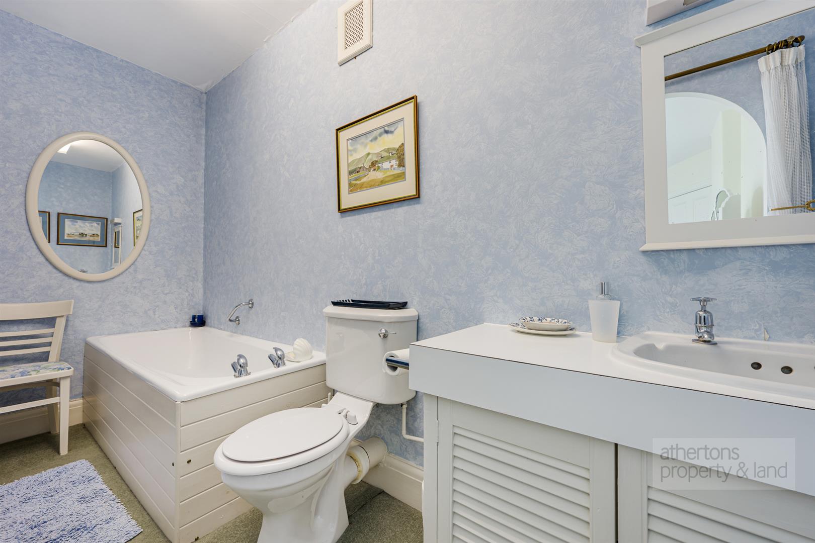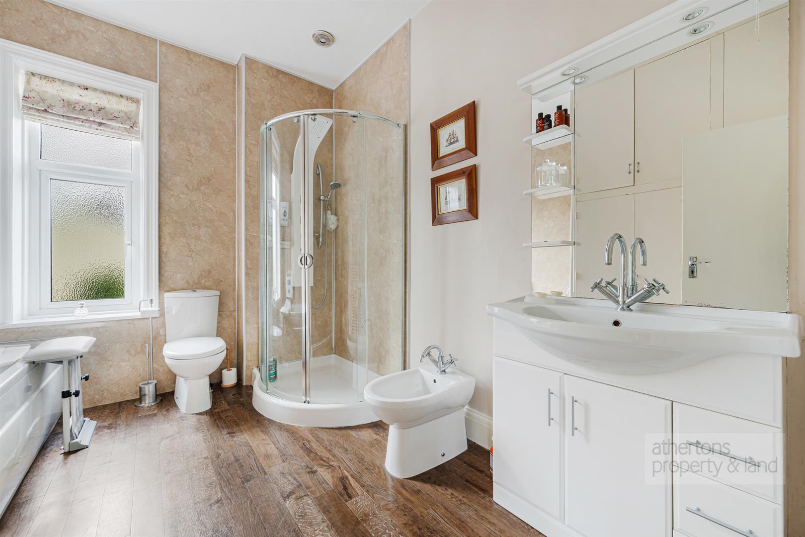 The family bathroom is generously appointed with a bath, separate shower, bidet, wash basin, WC and heated towel rail, with the airing cupboard housing the cylinder also located here.