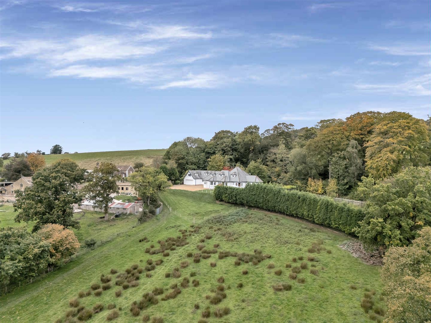 Externally, Lowood is set within generous, landscaped gardens bordered by mature laurel hedging to ensure complete privacy. An Indian stone pathway encircles the property, linking the recently extended front and rear gardens. To the rear lies a magnificent outdoor entertaining area with an Indian stone terrace, composite decking with integrated seating, lawns, and a hot tub area - all taking full advantage of the open valley views beyond.