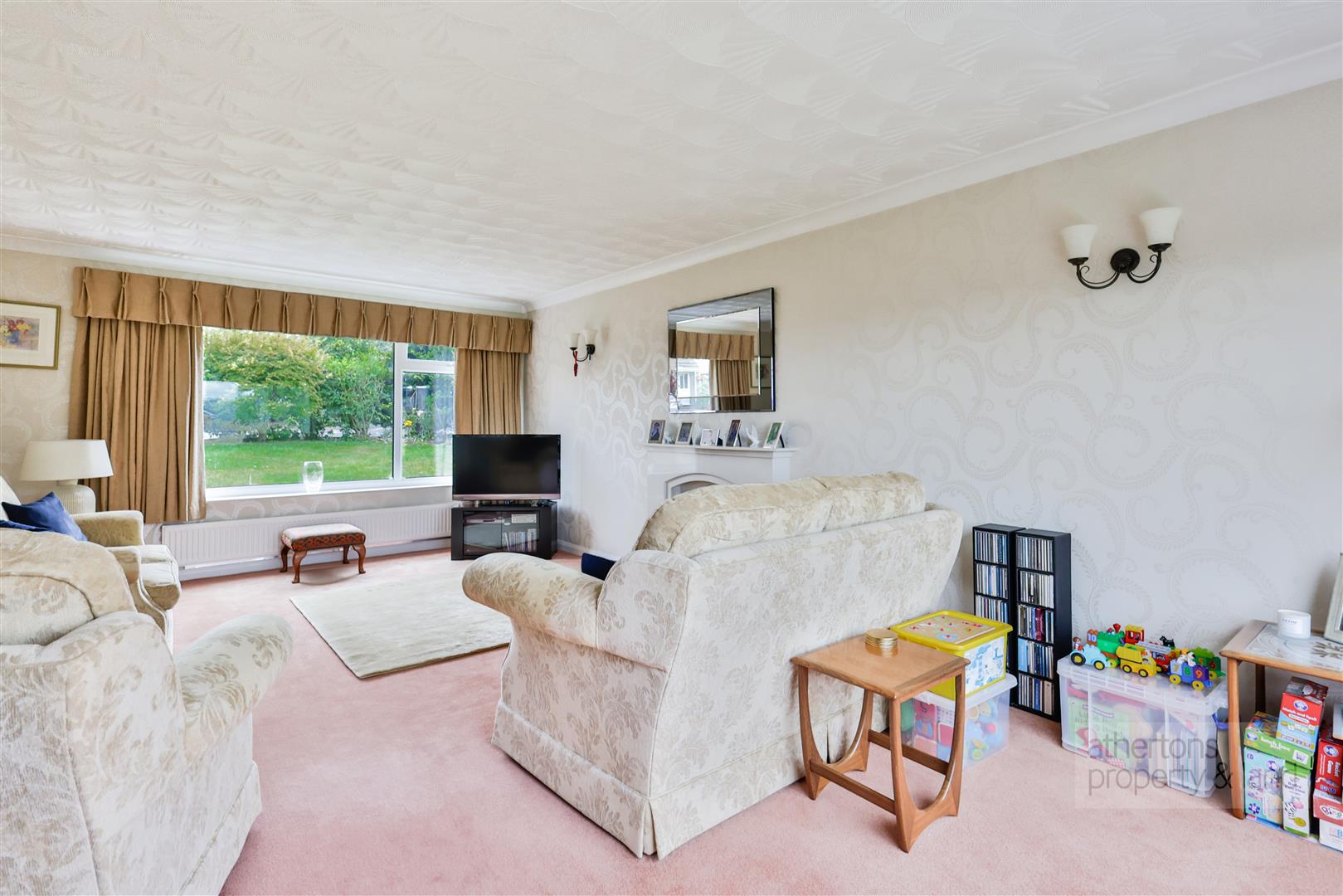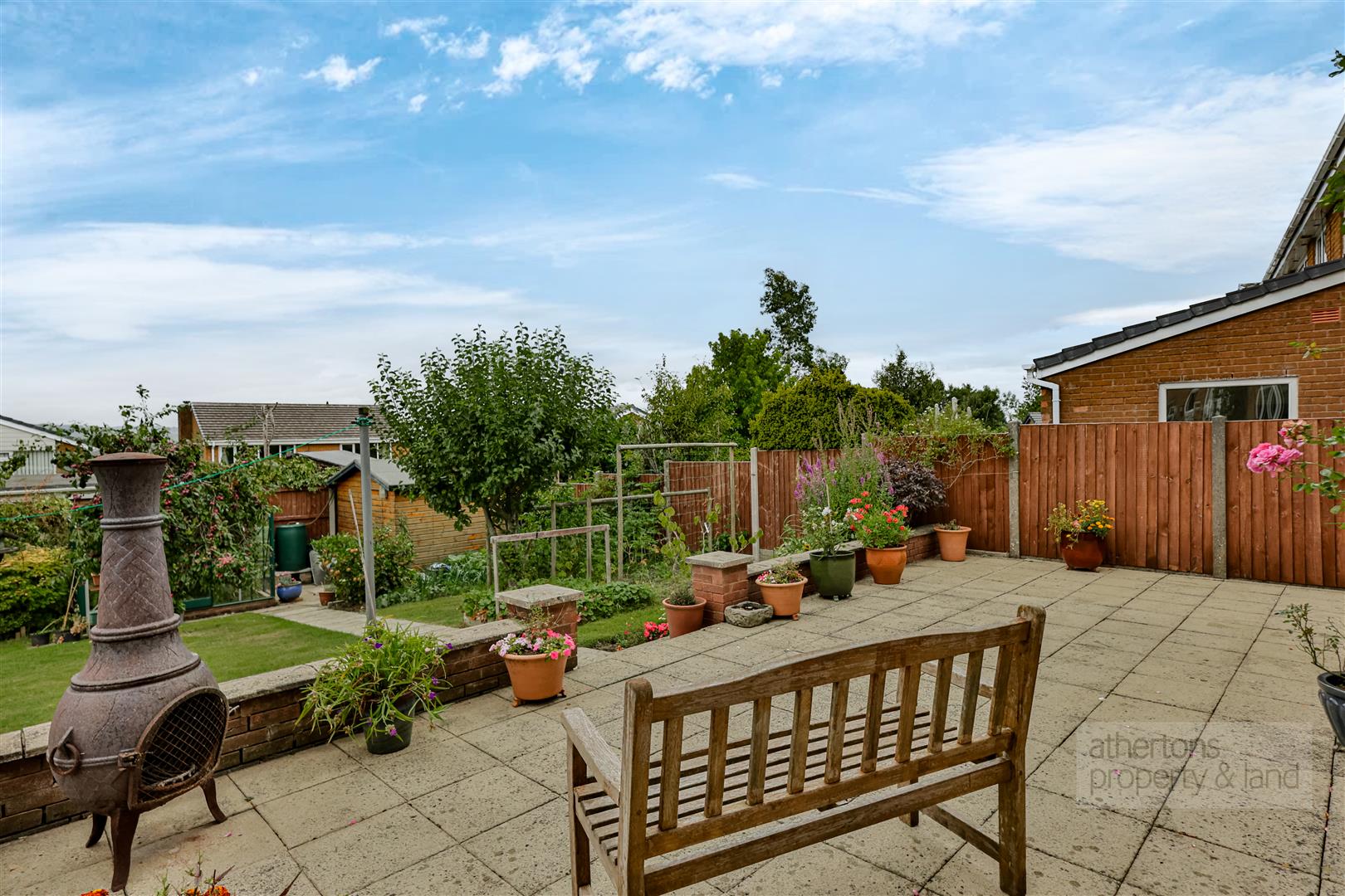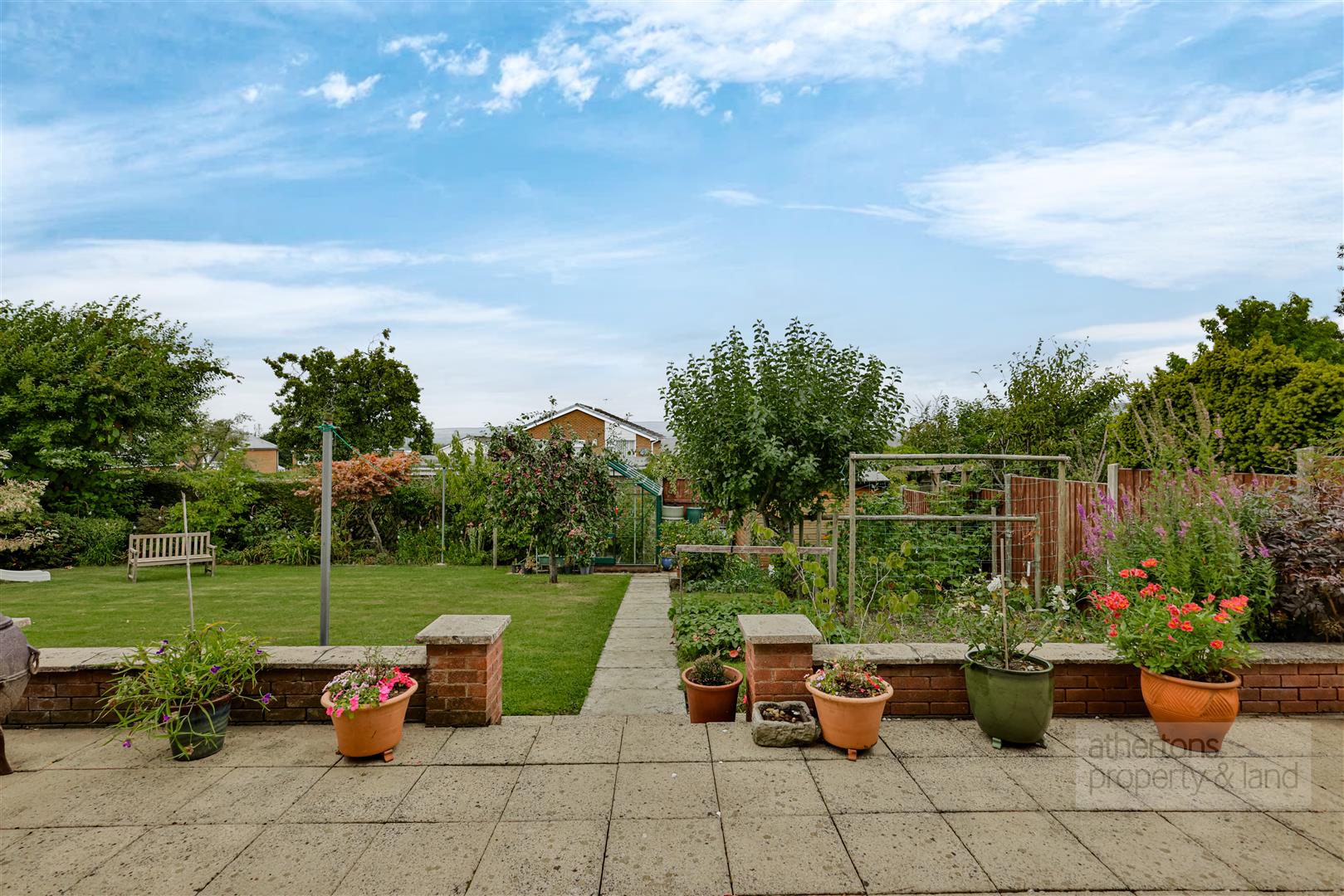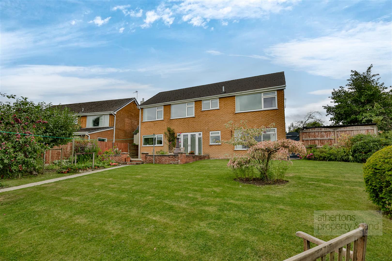 Externally, the property’s corner position affords sweeping, landscaped gardens that wrap around the house, offering multiple areas for relaxation and play. To the rear, a beautifully designed retreat incorporates a shaped lawn, mature planting, a large patio seating area, a timber storage shed, and a greenhouse. Parking provision is exceptional, with a two-car driveway to the front, an integral double garage, and a second gated parking area to the side with a timber car port in situ.
