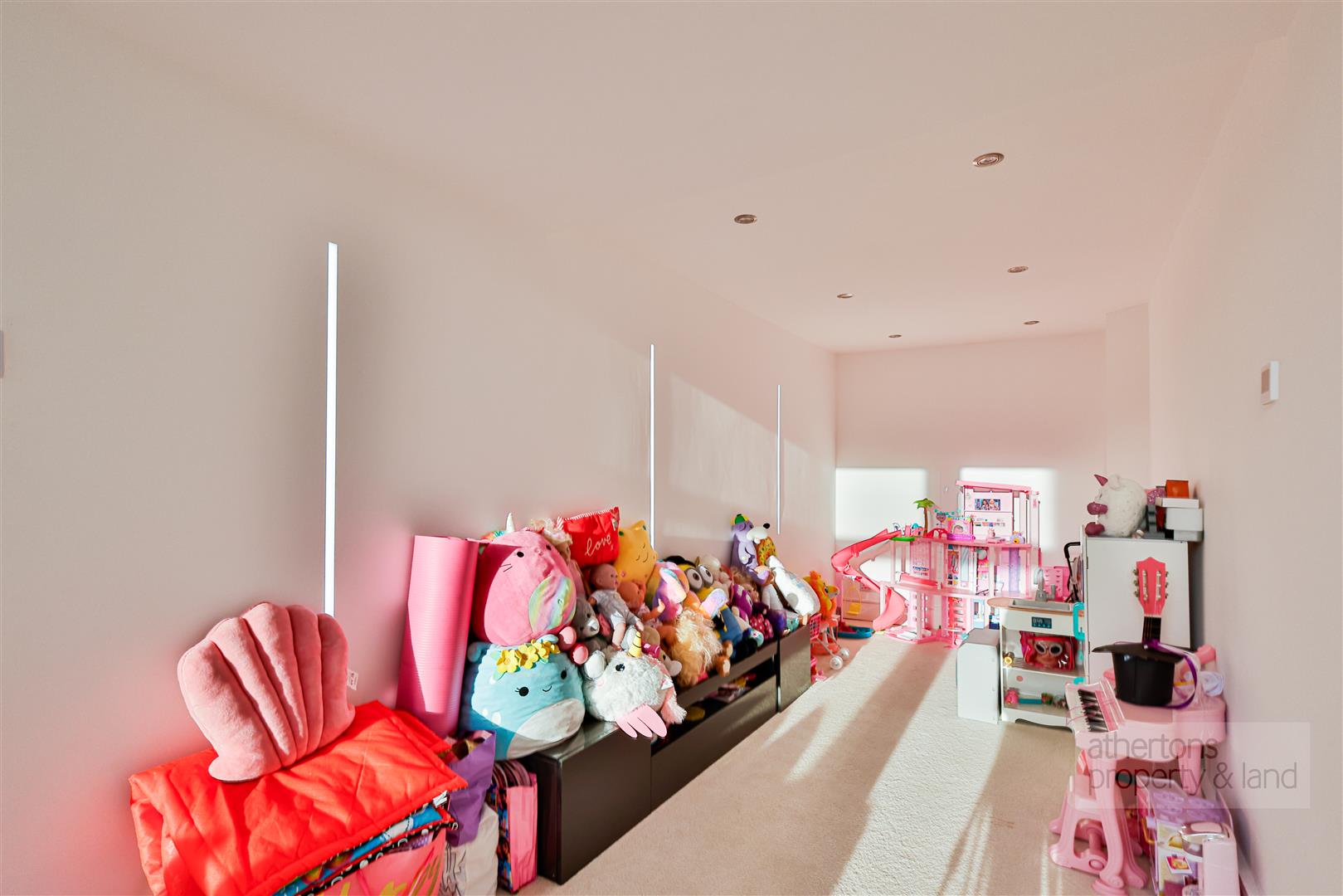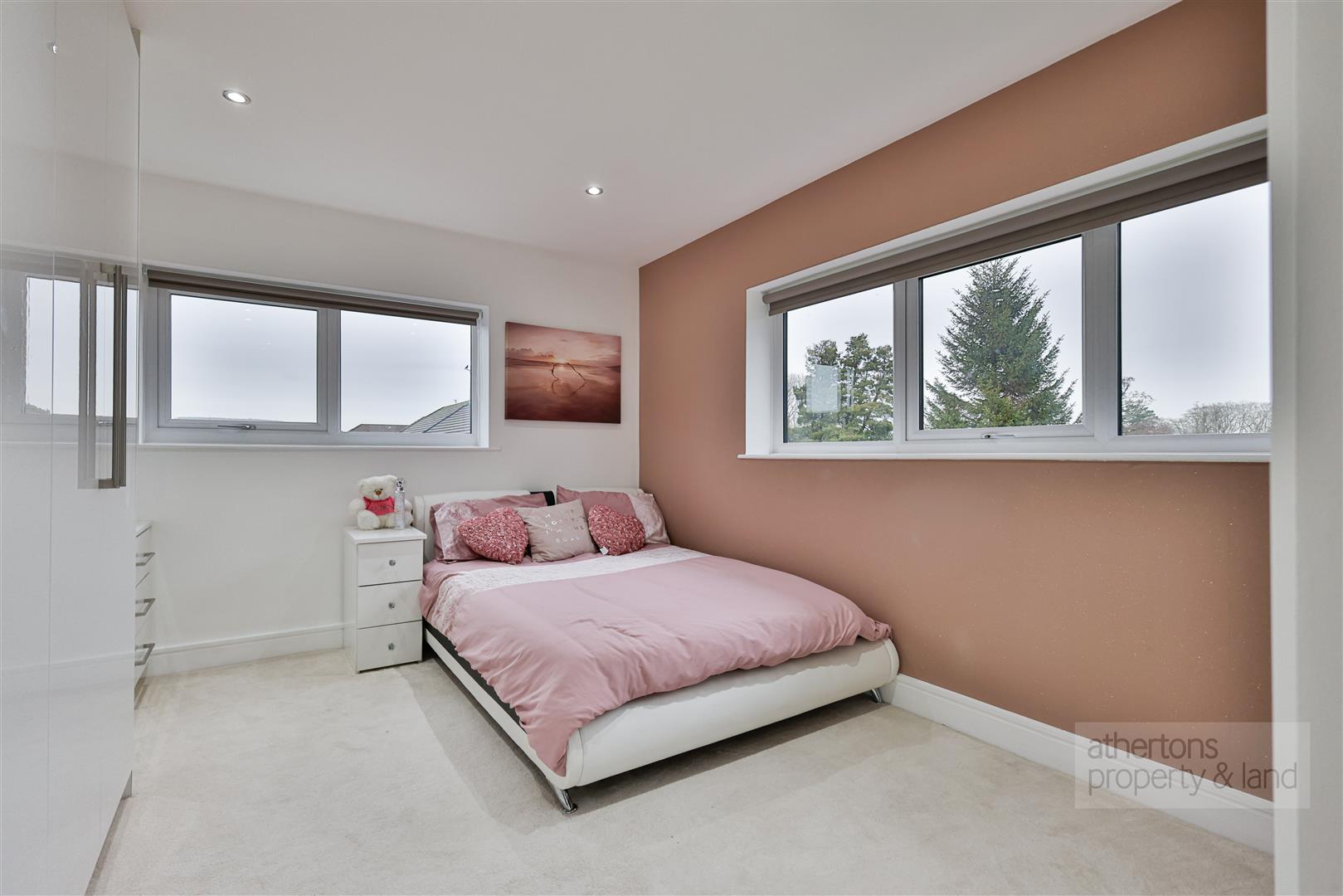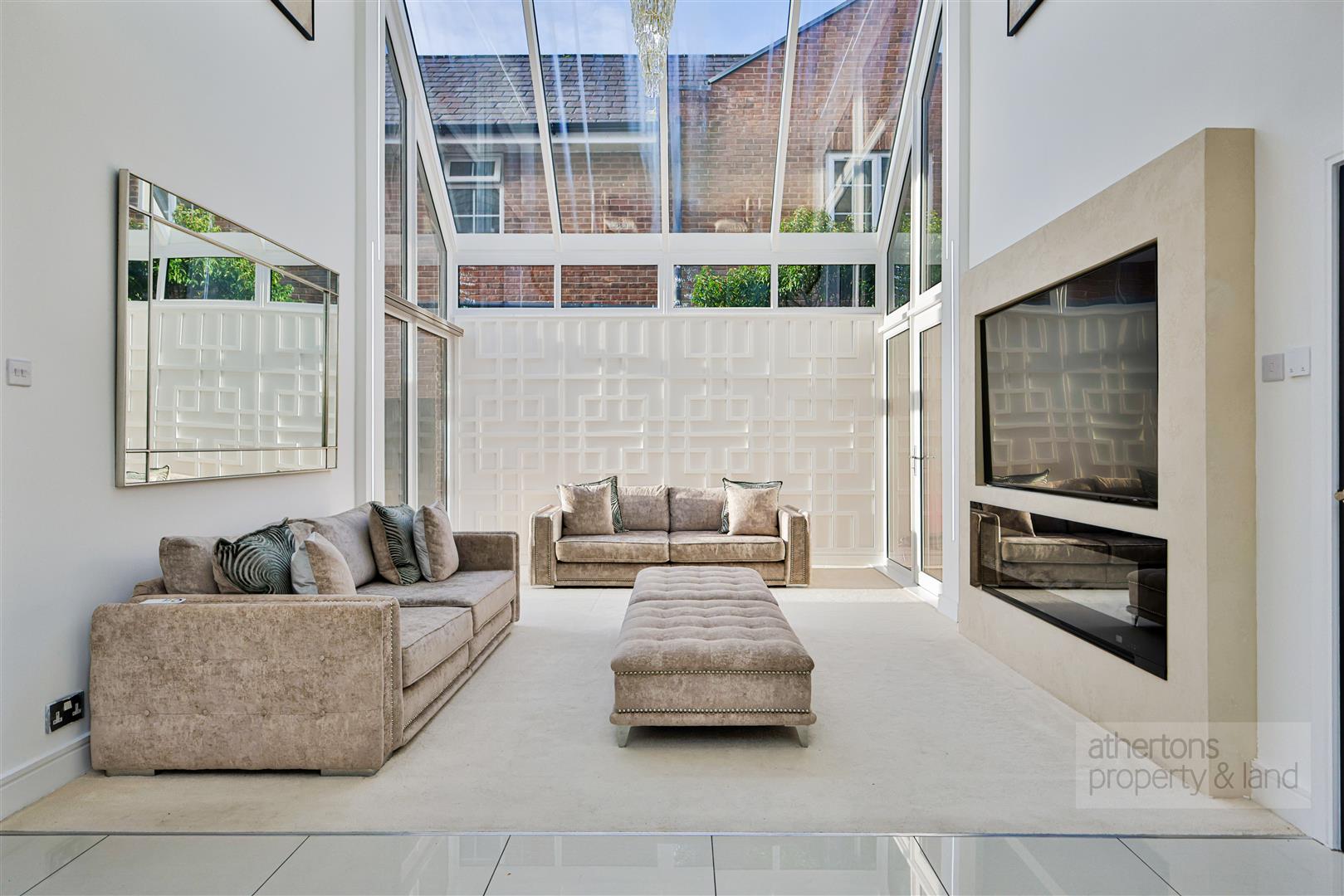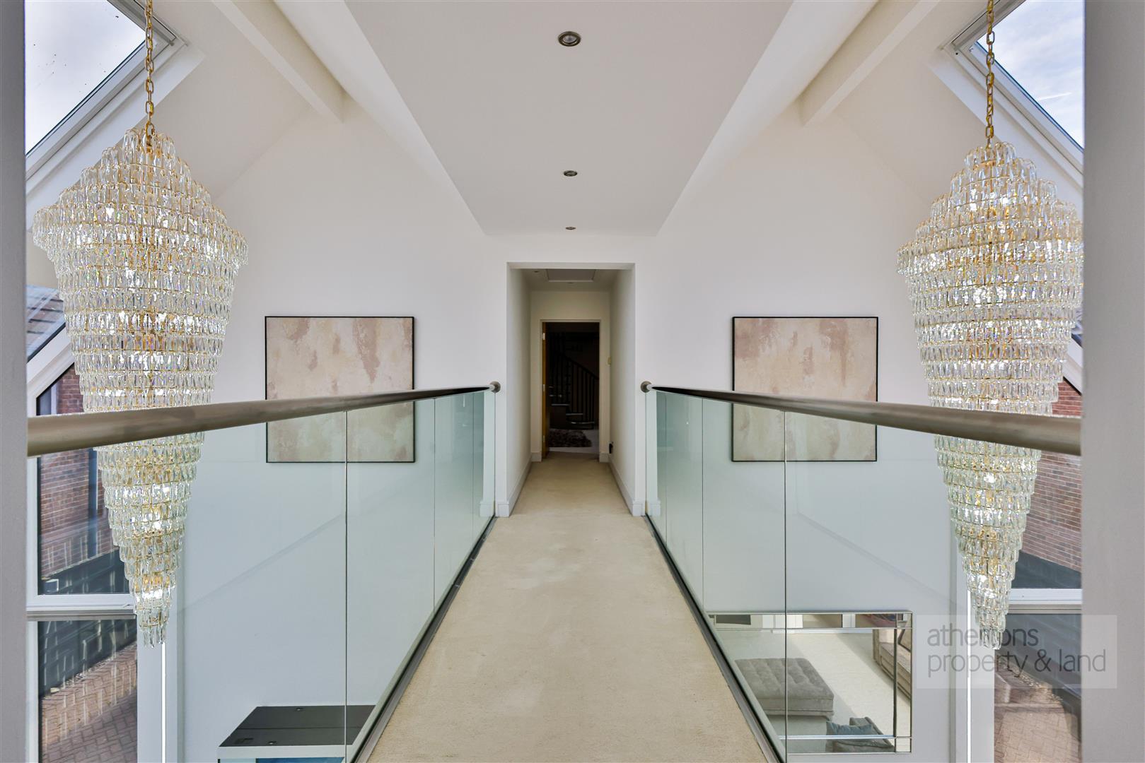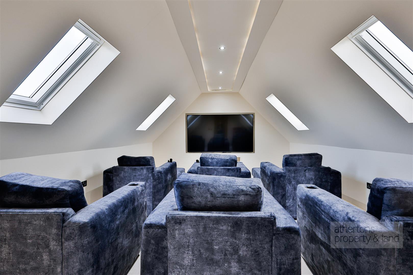 The second floor provides an exceptionally private and versatile living zone, accessed via a bright landing illuminated by skylights. Here lies a vaulted cinema room/bedroom five with skylights and a dedicated media wall, together with a generous store room that is ideal for seasonal items or hobby equipment.