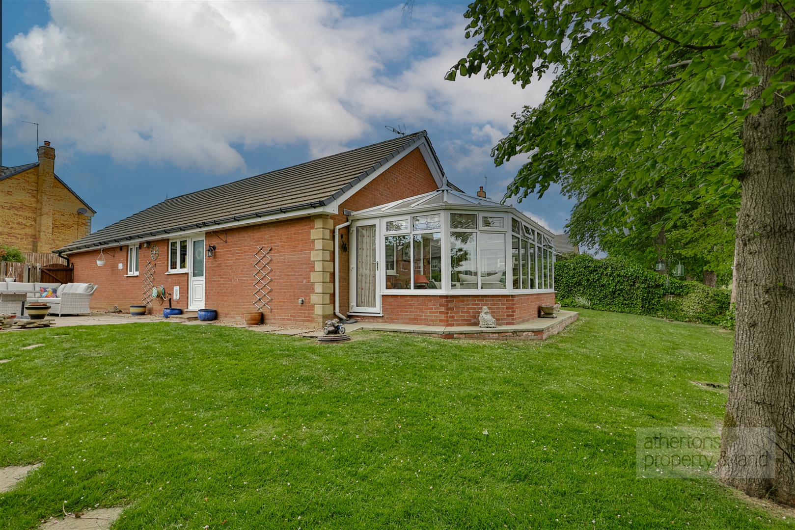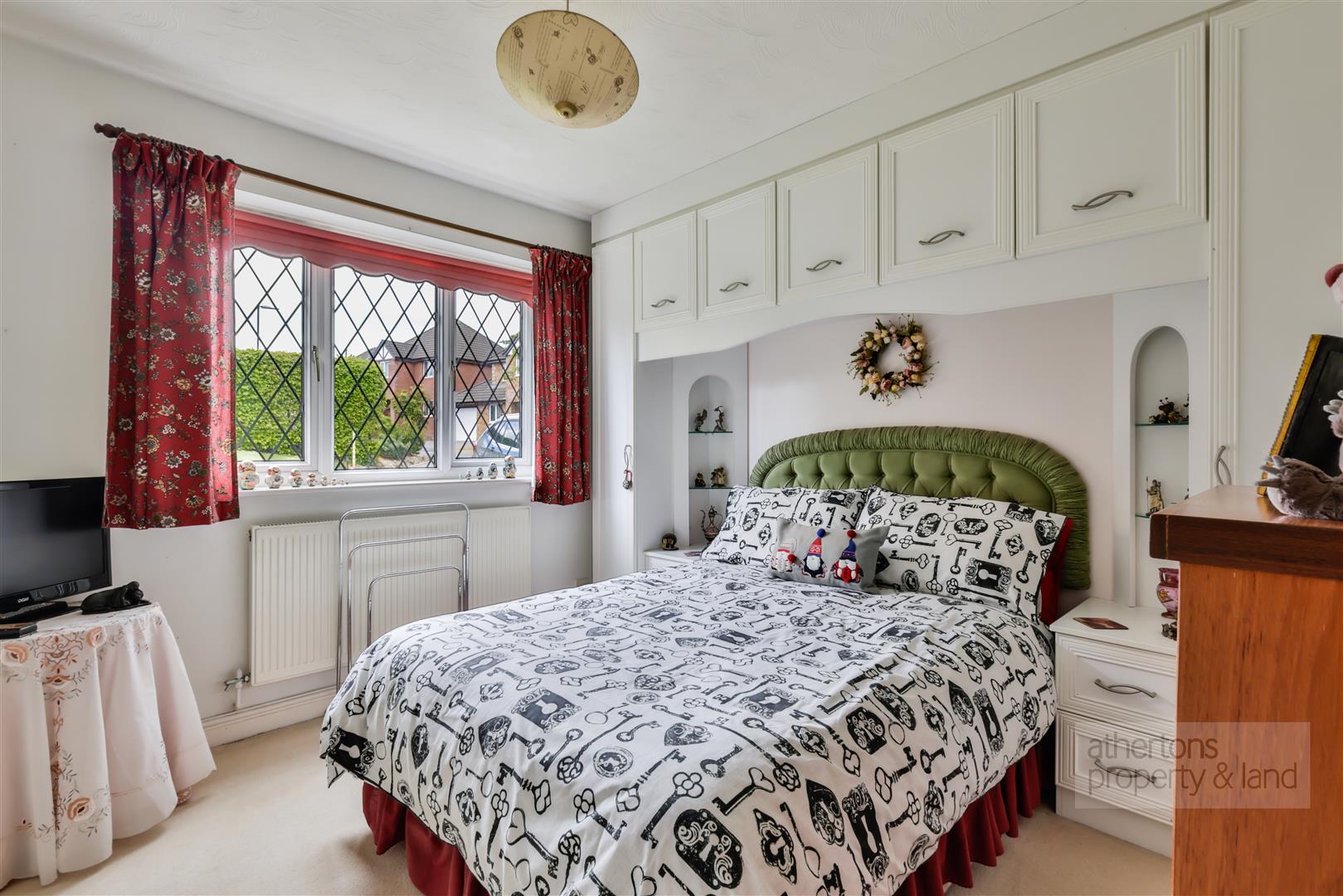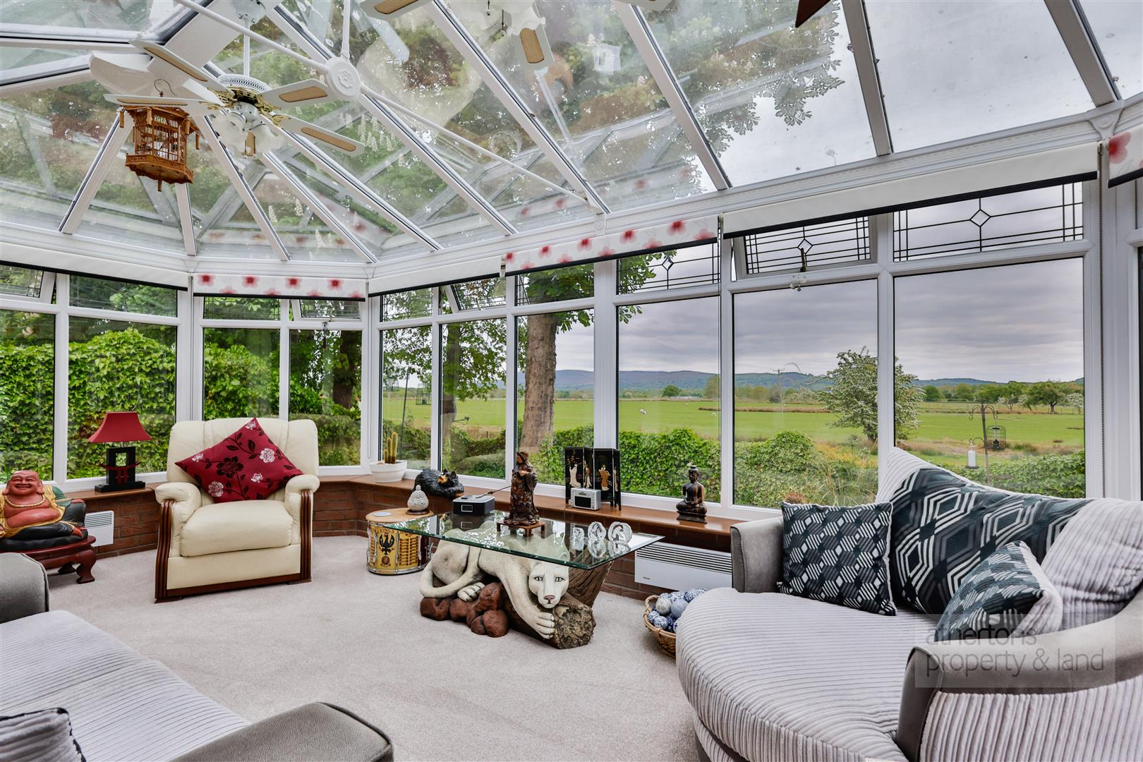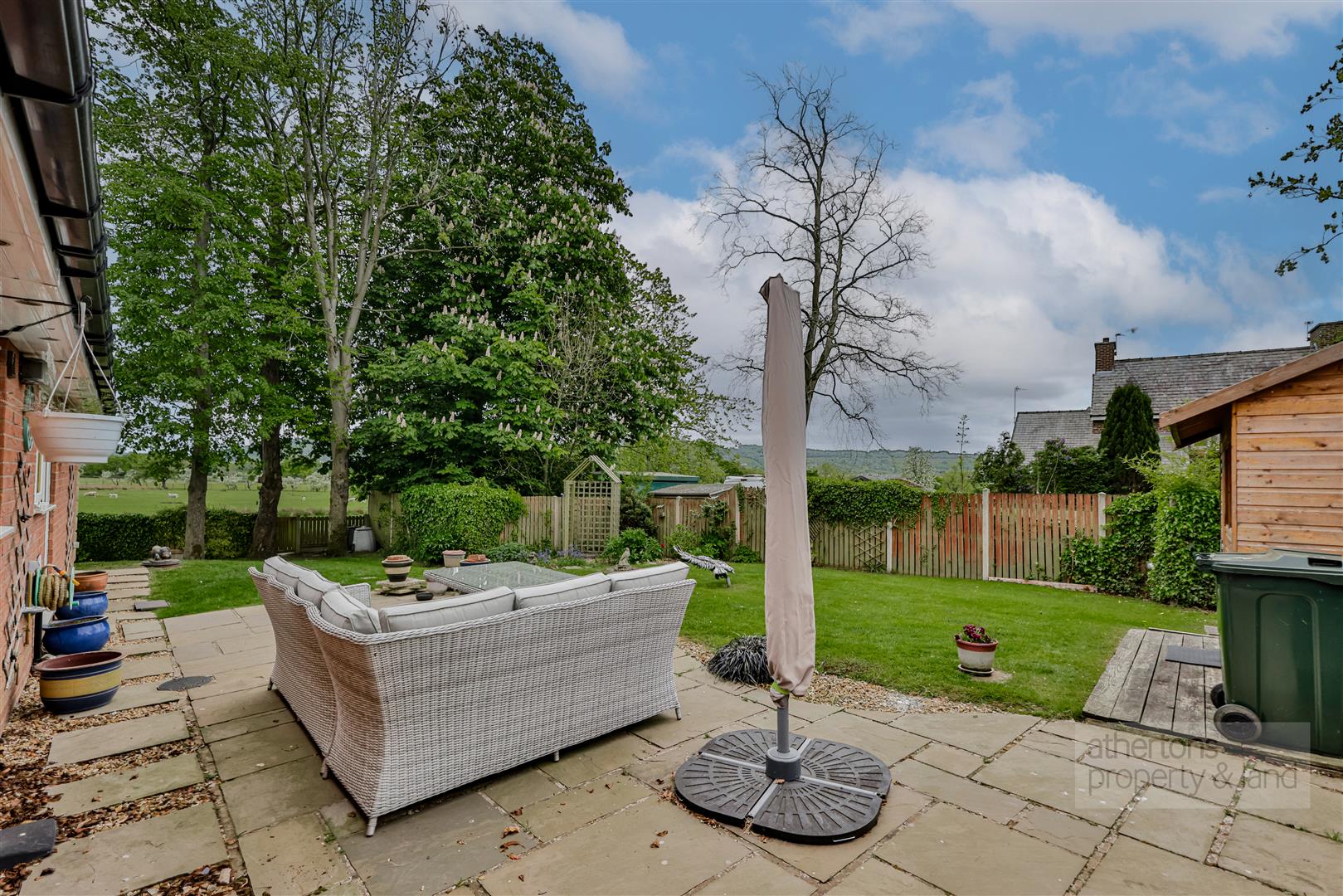 Externally, the property’s corner plot allows for extensive, private gardens wrapping around the home. The south-east facing rear garden features sweeping lawns, a large paved patio, and breathtaking panoramic views—ideal for entertaining or enjoying peaceful evenings outdoors. To the front, the property is set behind a well-tended lawn with neat borders and a long block-paved driveway accommodating multiple vehicles.