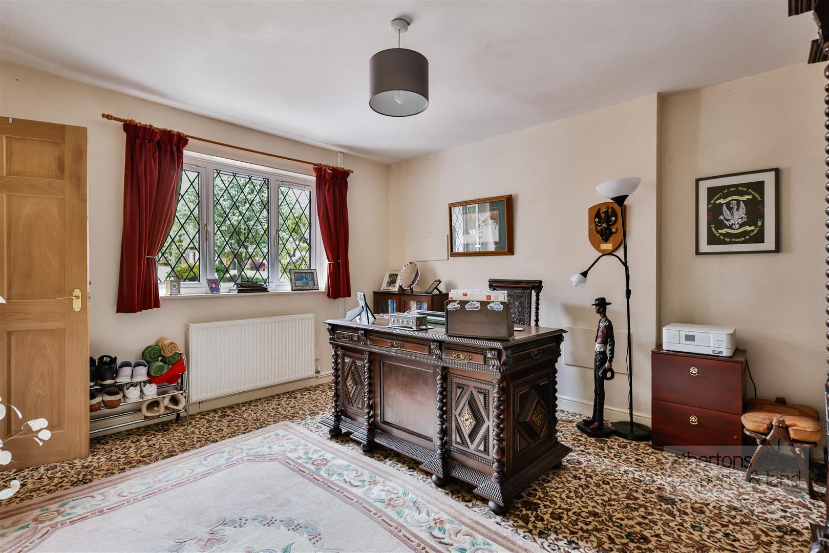 The entrance hall also gives way to a large third bedroom or office—formerly the garage—with a spacious utility room off. The utility features base-level units, plumbing, external access, and houses the combination boiler. This area could easily be converted into a large double bedroom with en-suite, should the buyer prefer.