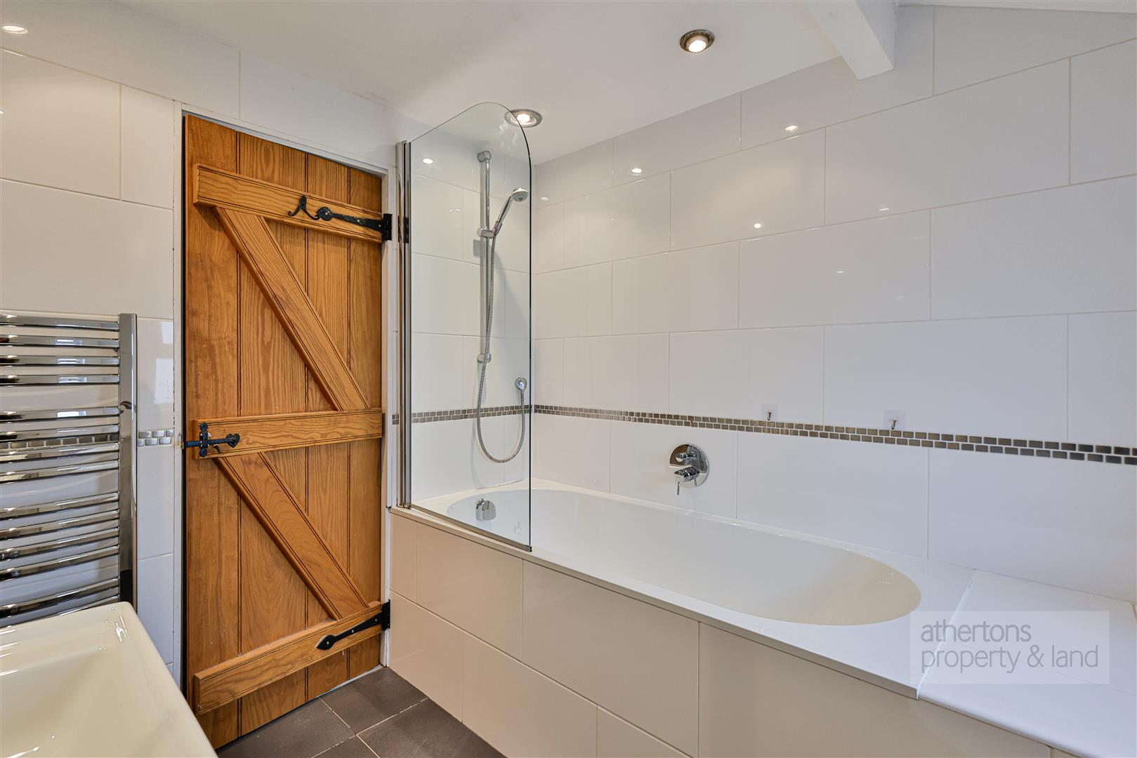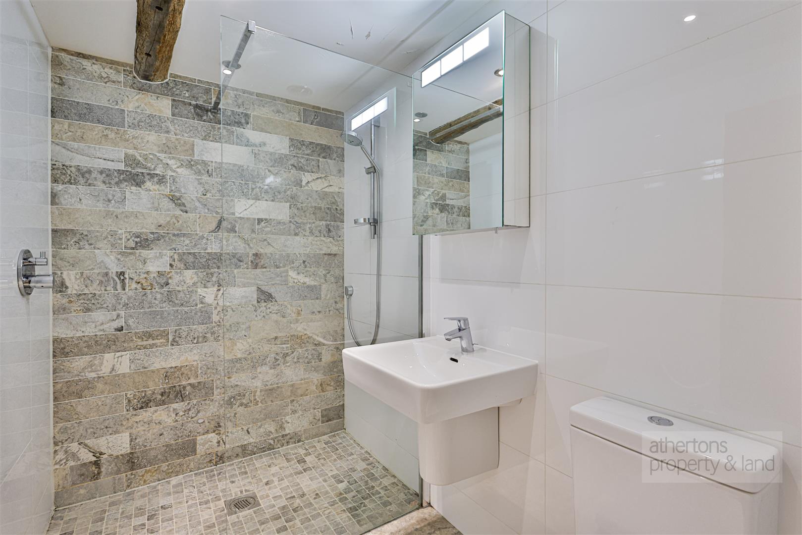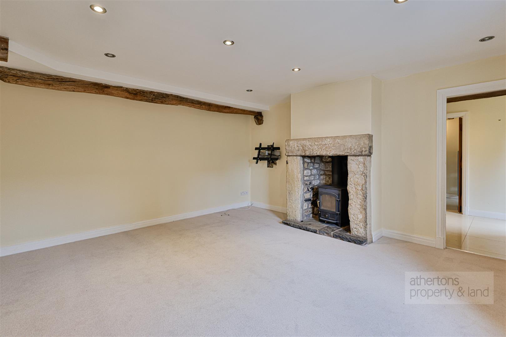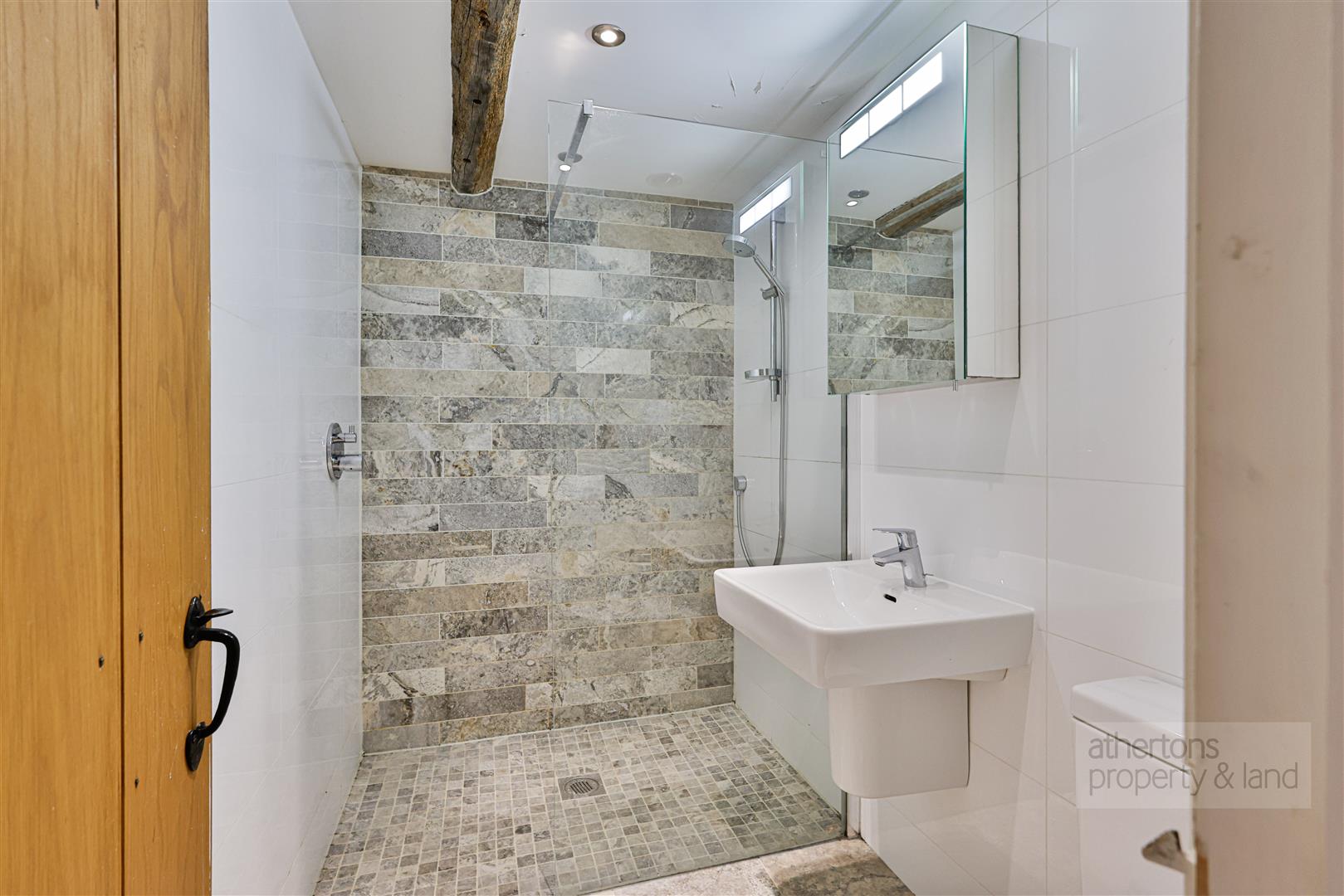 A separate, cosy lounge provides an inviting retreat, centred around a beautiful stone fireplace with multi-fuel burner, creating a natural focal point and a wonderfully atmospheric setting during the cooler months. The ground floor is further enhanced by a practical utility room and a modern, tiled three-piece shower room, offering flexibility and convenience for guests or family life.