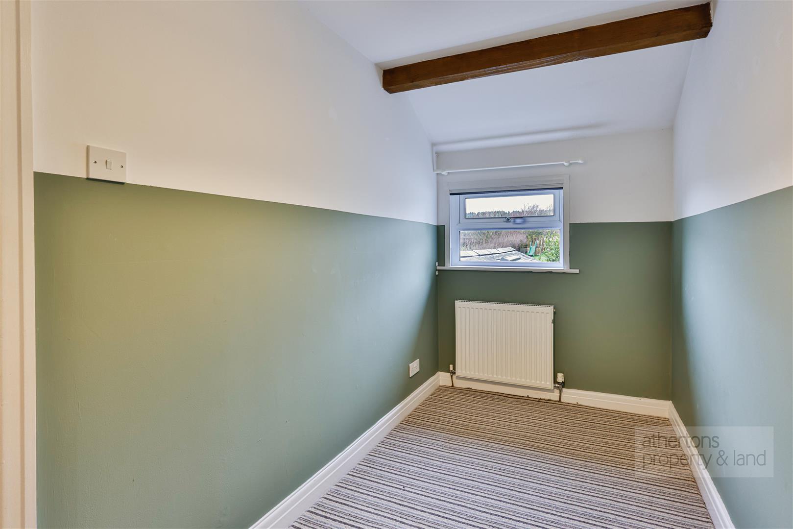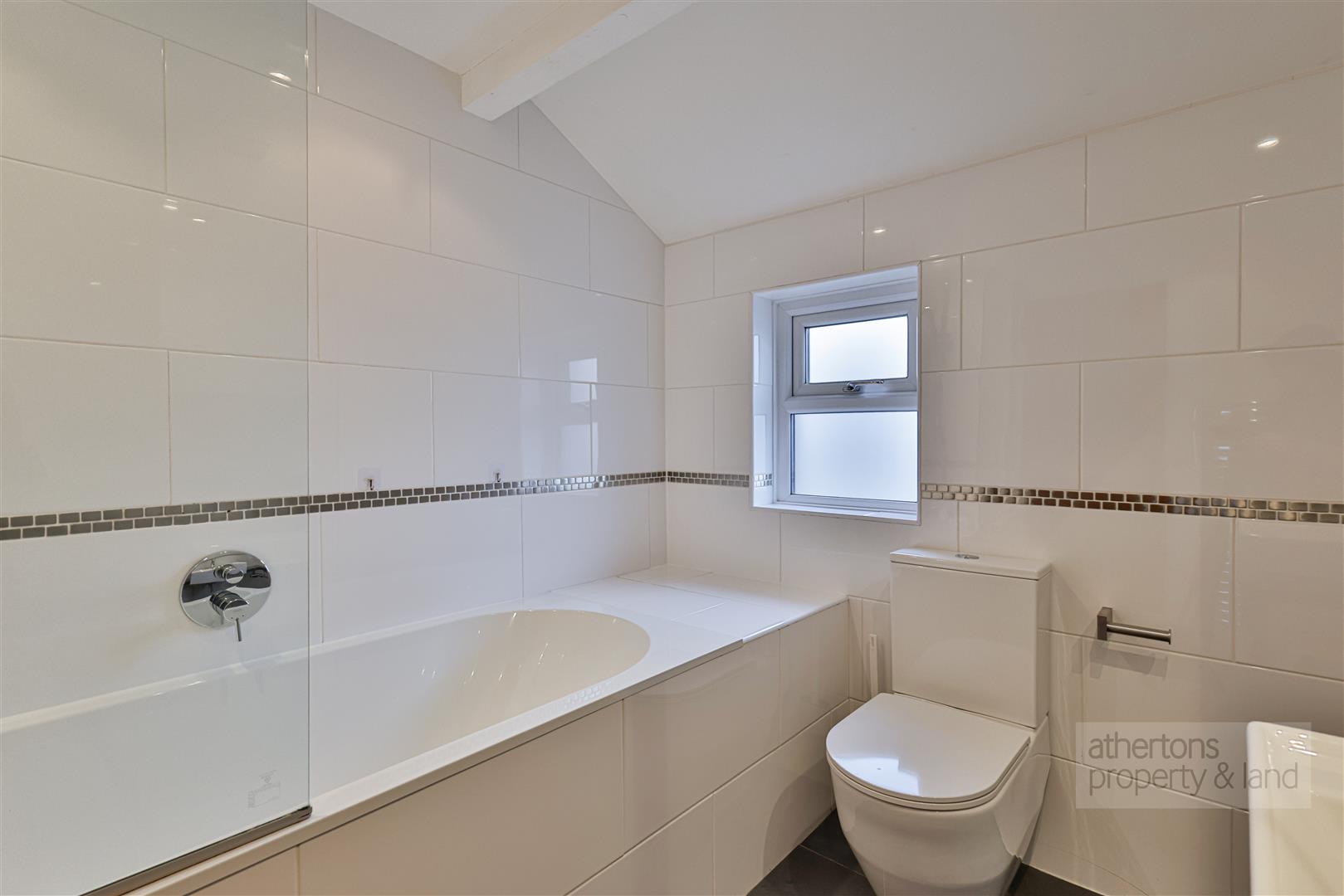 To the first floor, two well-proportioned double bedrooms and a single bedroom/office continue the home’s characterful appeal, with subtle heritage touches and pleasant outlooks. The generous principal bedroom benefits from fitted wardrobes, while the remaining rooms offer versatility for children, guests, or home working. These are served by a stylish family bathroom with tiled elevations, a panelled bath with overhead shower, pedestal wash basin, and WC.