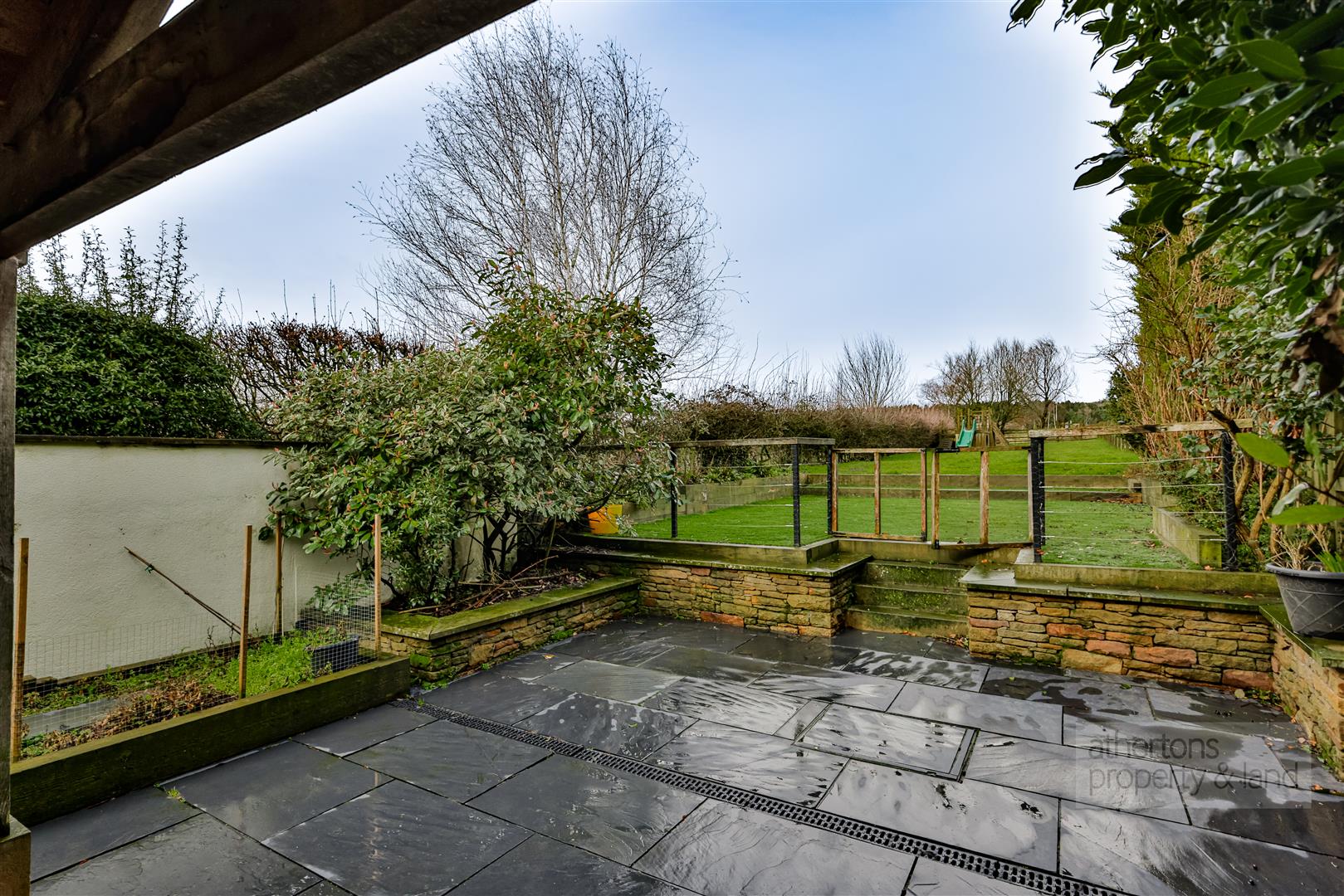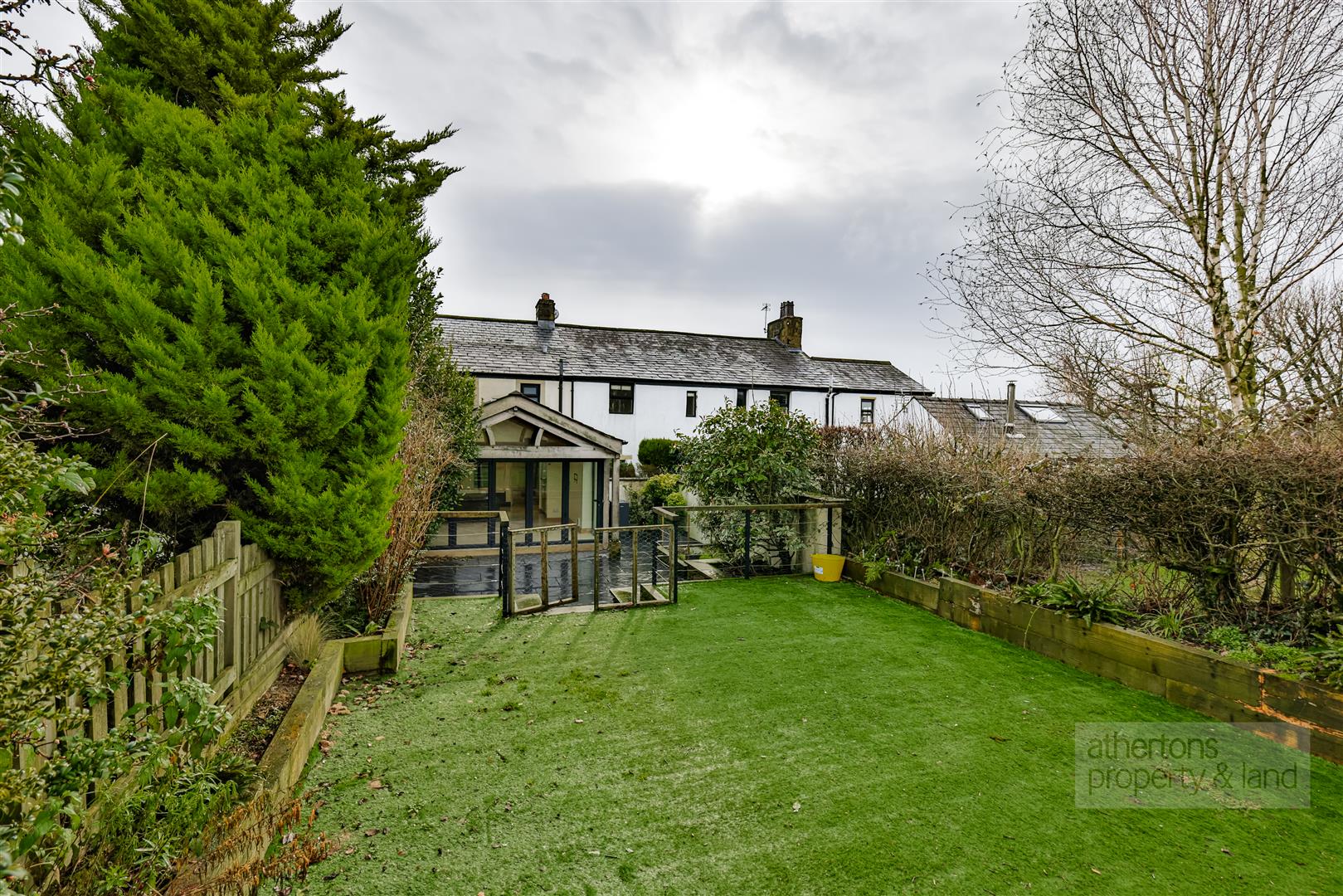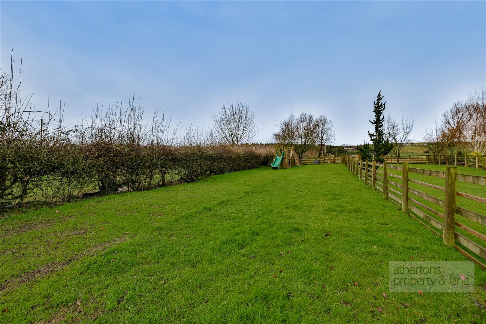 Externally, the property truly excels. A good-sized patio area with sheltered veranda leads to a long rear garden that stretches towards open countryside, providing a peaceful and private outdoor environment rarely found within such convenient proximity to local amenities. The setting offers a wonderful sense of space and tranquillity, ideal for families, gardening enthusiasts, or those simply seeking rural views. To the side, a communal parking area provides two allocated off-road parking spaces, in addition to a single garage with manual up-and-over door and power supply, perfectly suited for secure parking, storage, or hobby use.