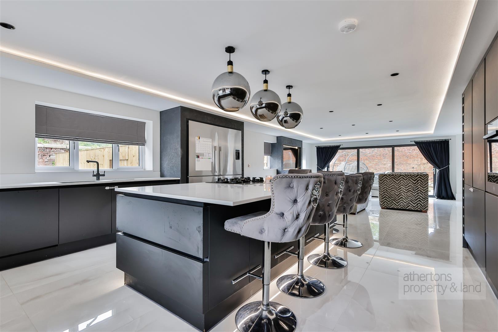 The property has been meticulously designed and finished to the highest standards, featuring underfloor heating across all levels, Roccia bathrooms, smart lighting, Venetian plaster detailing, tiled flooring throughout the ground level and bathrooms, and professionally landscaped gardens—all nestled within the charming setting of the historic walled garden. The accommodation briefly comprises: entrance hall, boot room, WC, office, living room, dining area, and an extensive open-plan kitchen/living space. The first floor comprises a landing, three double bedrooms, each with its own en-suite, and a luxurious principal suite complete with a walk-in wardrobe and powder room. The second floor offers a further landing, laundry room, two additional double bedrooms with en-suites, a dressing room, and a boiler/plant room.