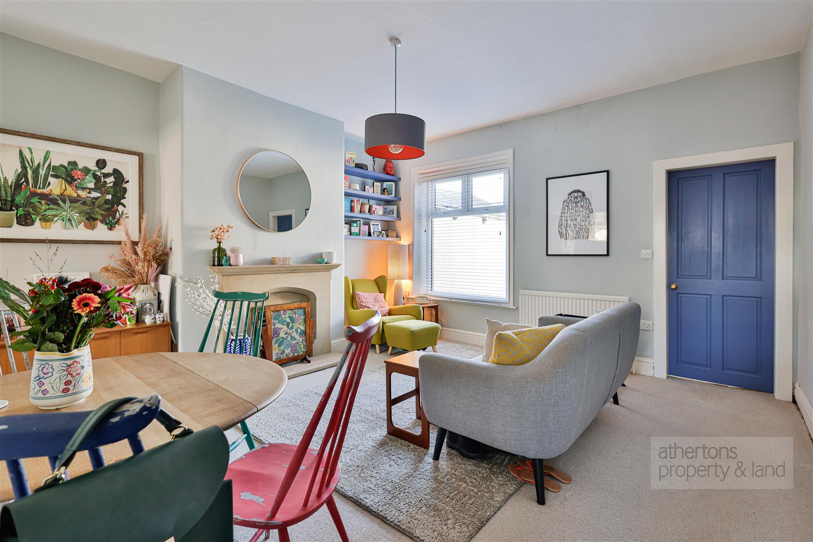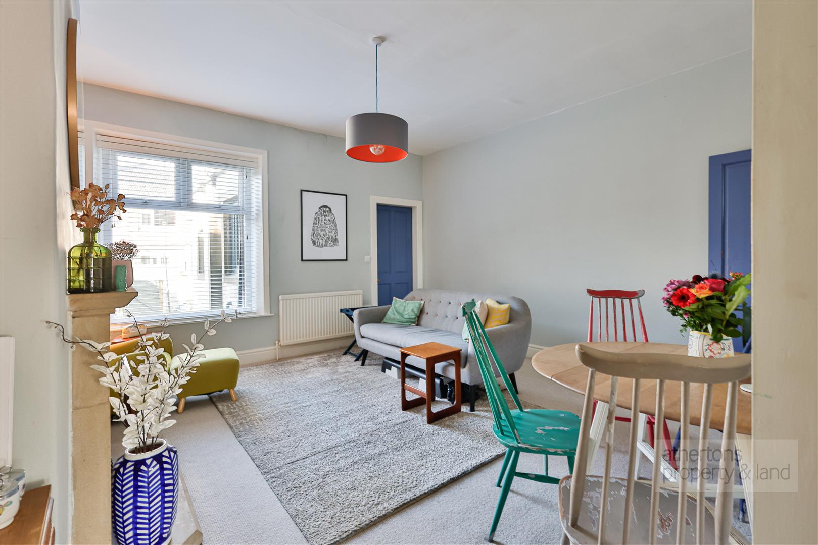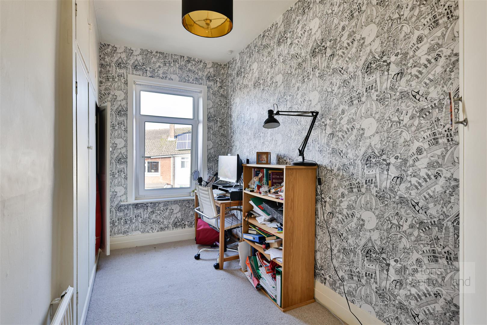 To the first floor, the landing leads to three well-proportioned bedrooms, each tastefully decorated and filled with natural light. Bedroom one is located to the front and is a generous double room, while bedrooms two and three are situated to the rear, with bedroom two benefiting from fitted wardrobe solutions. The bathroom is fully tiled and fitted with a panelled bath with electric shower over, pedestal wash basin and WC.