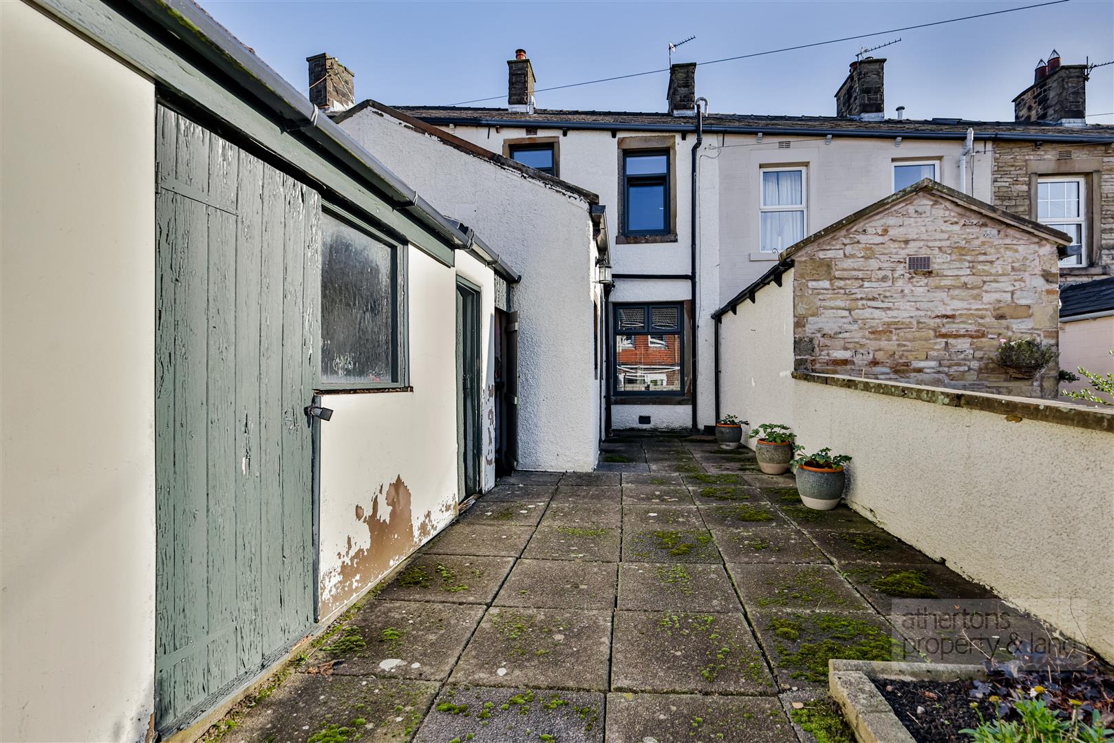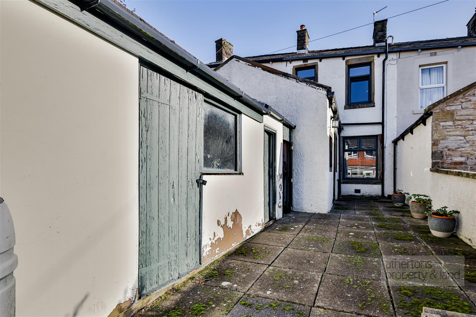 Externally, the property enjoys a large, wide west-facing garden to the rear - substantially larger than is typical for this style of home. The garden is paved with a small planting area and includes outbuilding stores offering excellent storage or potential workshop space. The stone-built façade and stepped garden frontage further enhance the home’s traditional appeal.