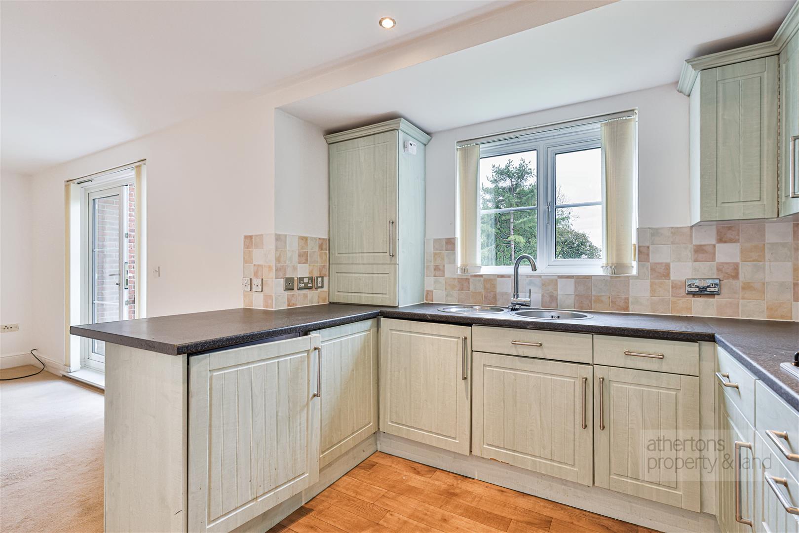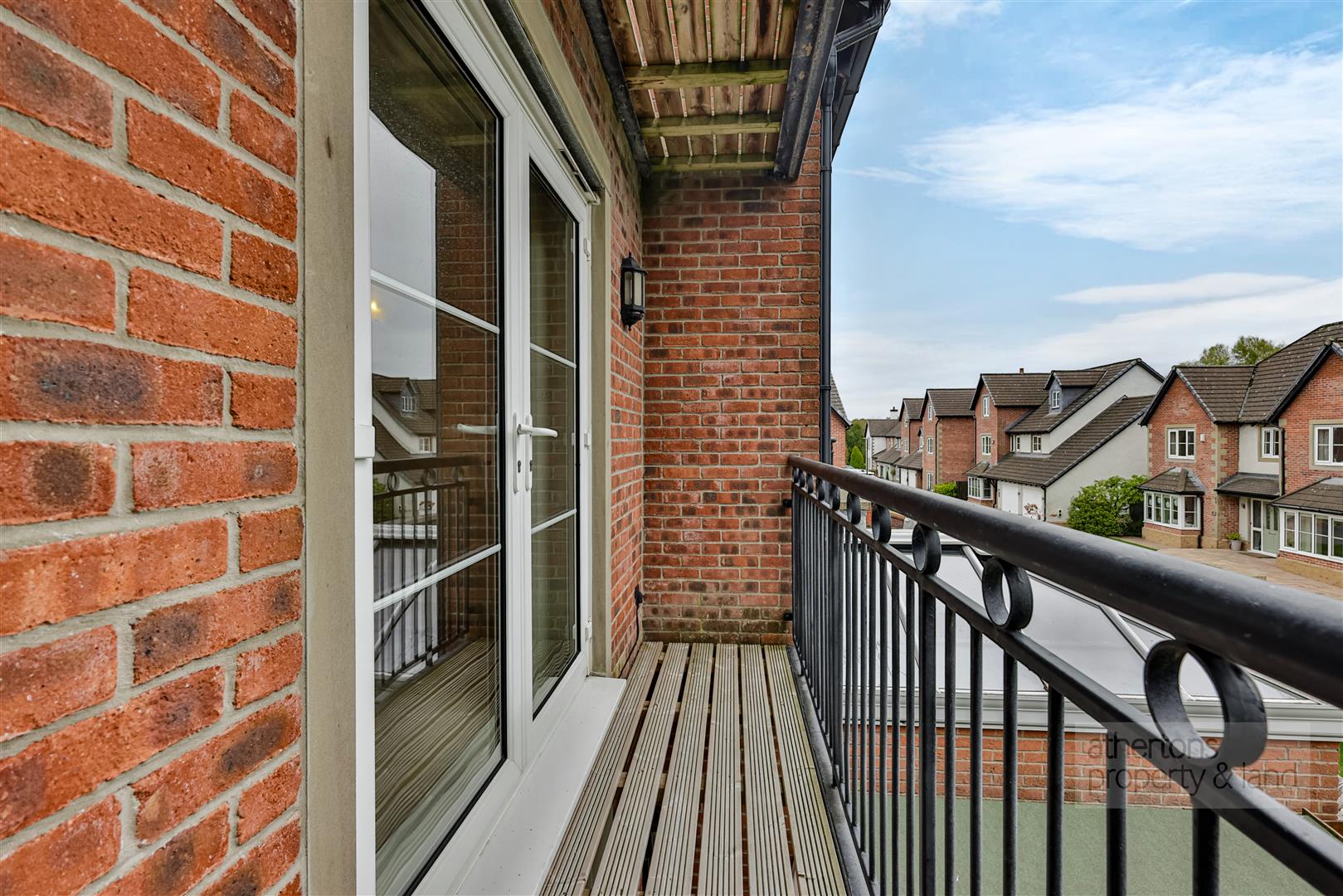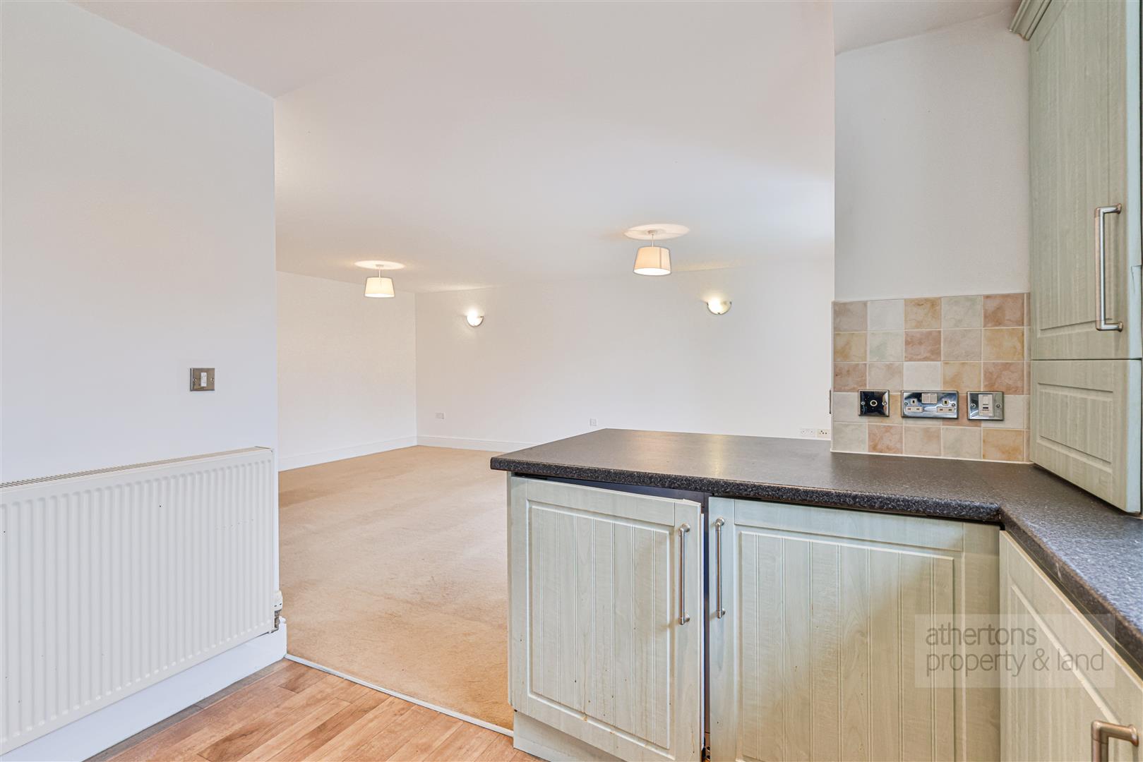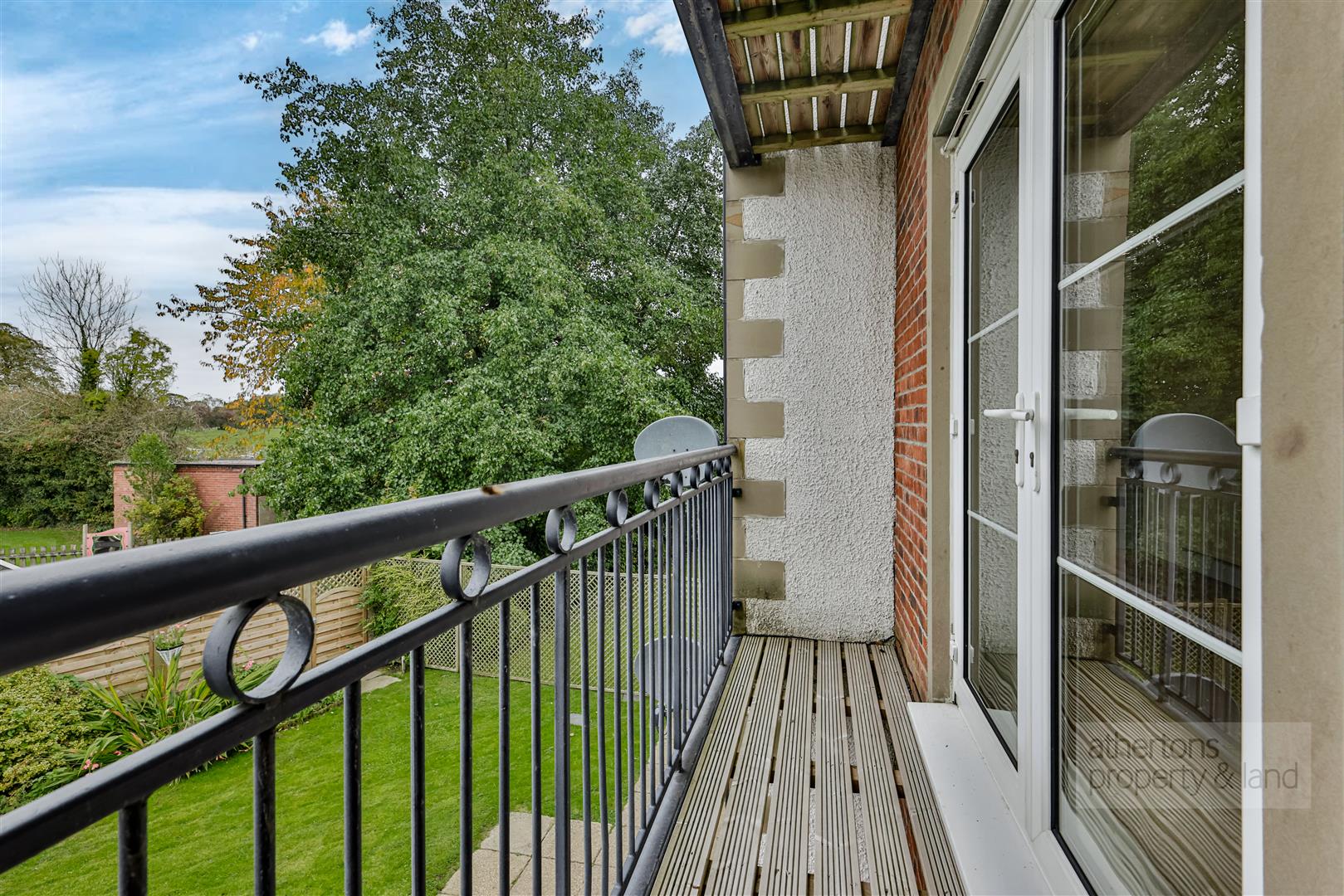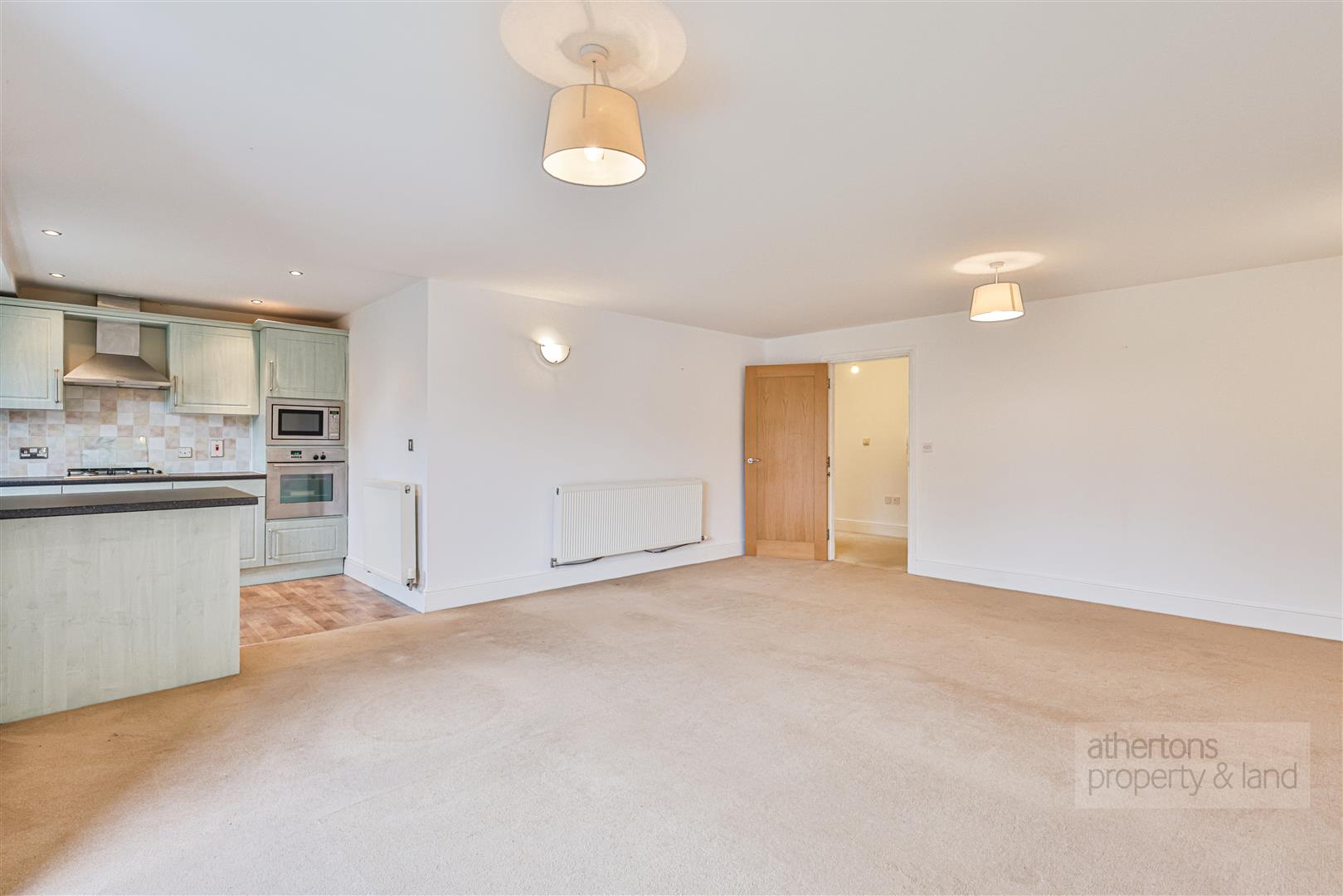 Stepping inside, a generous hallway sets the tone, complete with a walk-in storage cupboard and access to all rooms The heart of the home is the substantial open-plan lounge and kitchen area, thoughtfully designed for both relaxation and entertaining. The lounge features double-glazed French doors opening onto a decked balcony with wrought iron balustrade, offering pleasant aspects over play area’s and open fields - an ideal spot to enjoy a morning coffee or evening air.