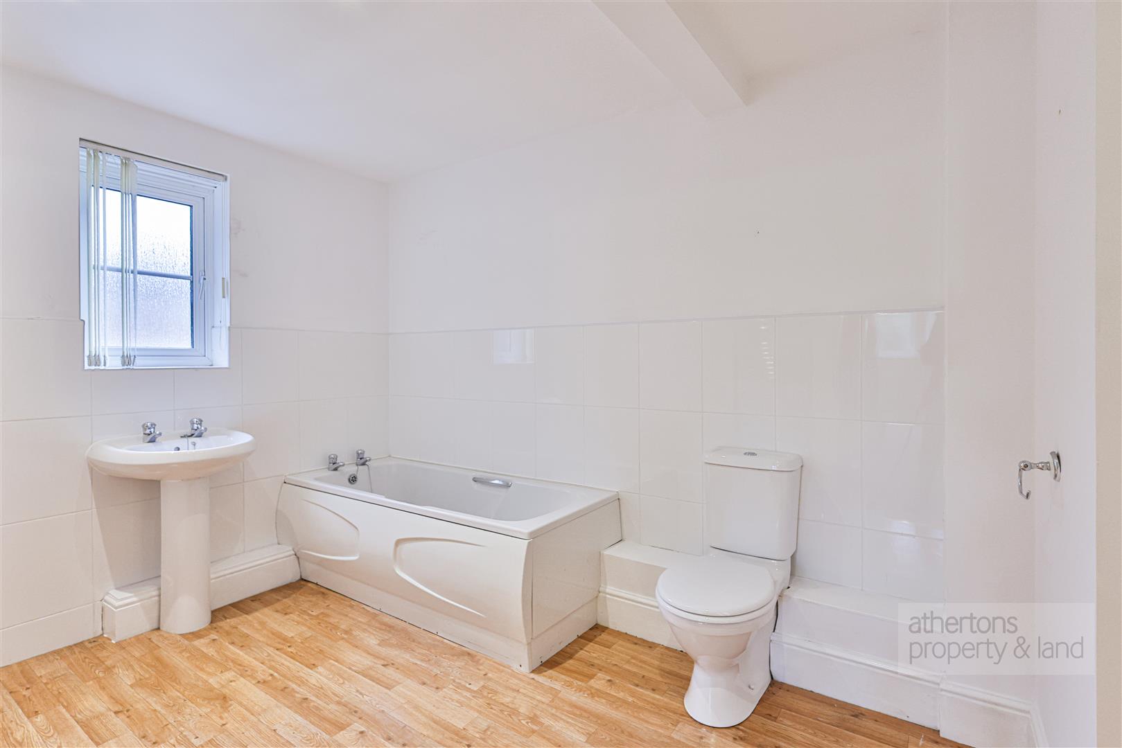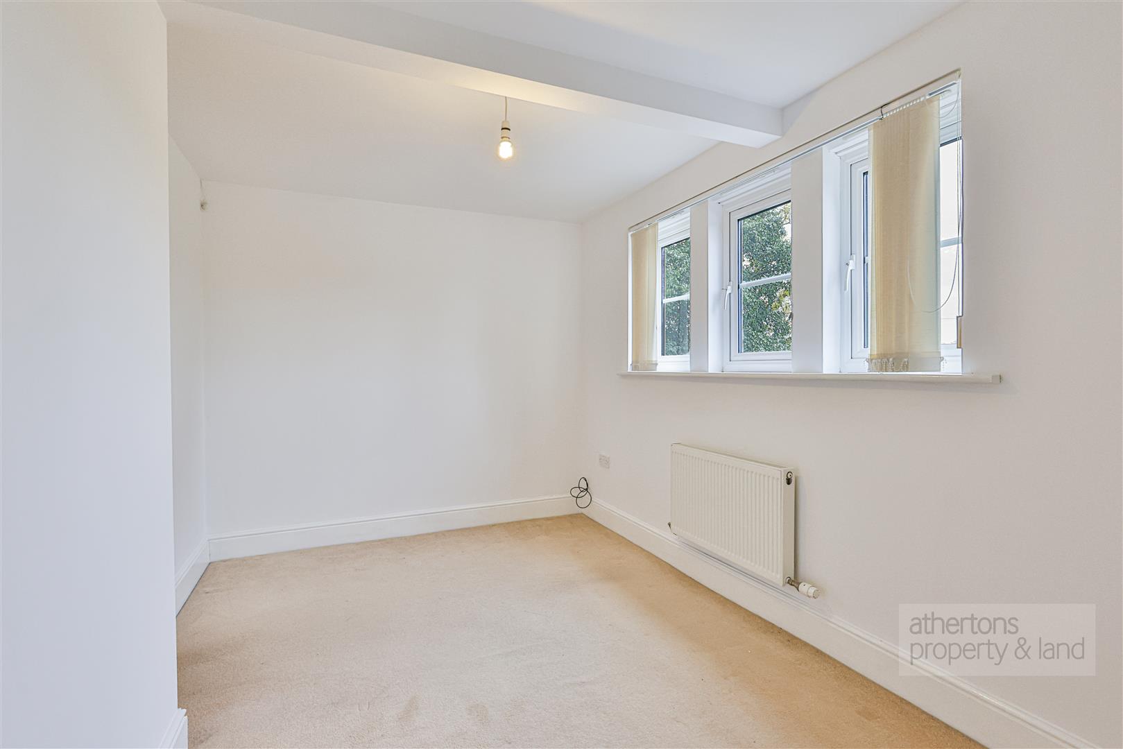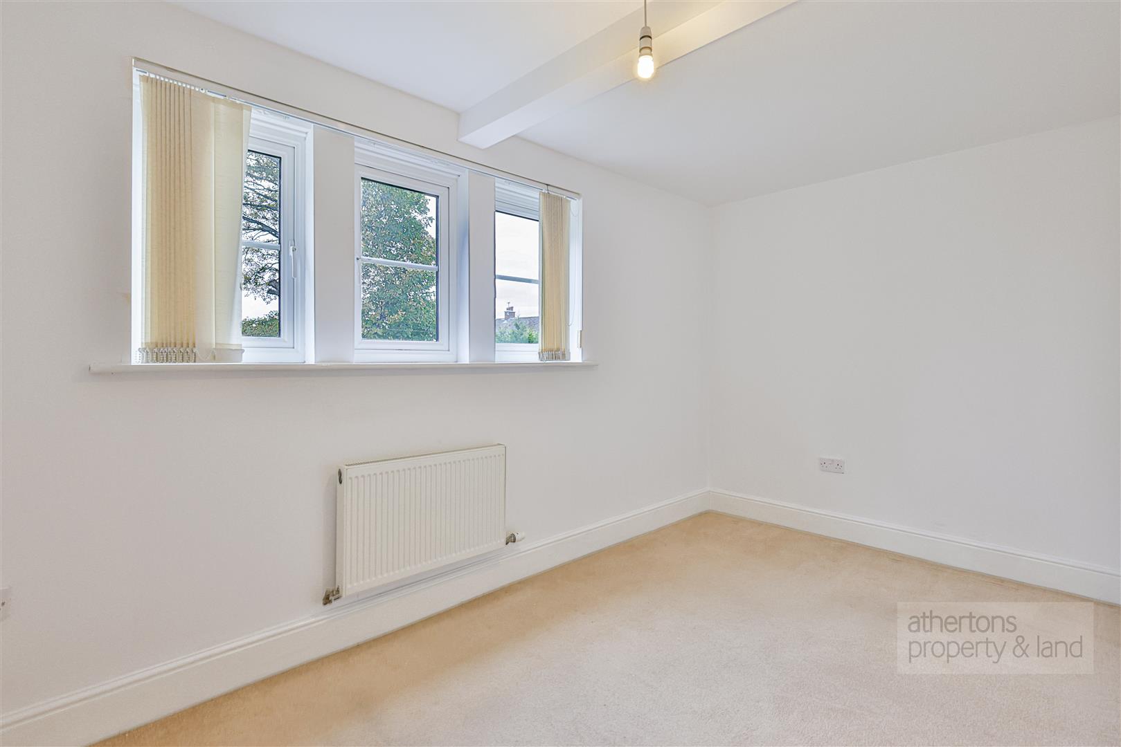 The second bedroom is also bright and spacious, offering three double-glazed windows with stone mullion details and a radiator. A superb four-piece family bathroom serves the property, featuring a panelled bath, separate shower cubicle with mixer shower, pedestal wash basin and low-level WC. The room benefits from recessed downlights, wood-effect vinyl flooring, extractor fan and a frosted double-glazed window.