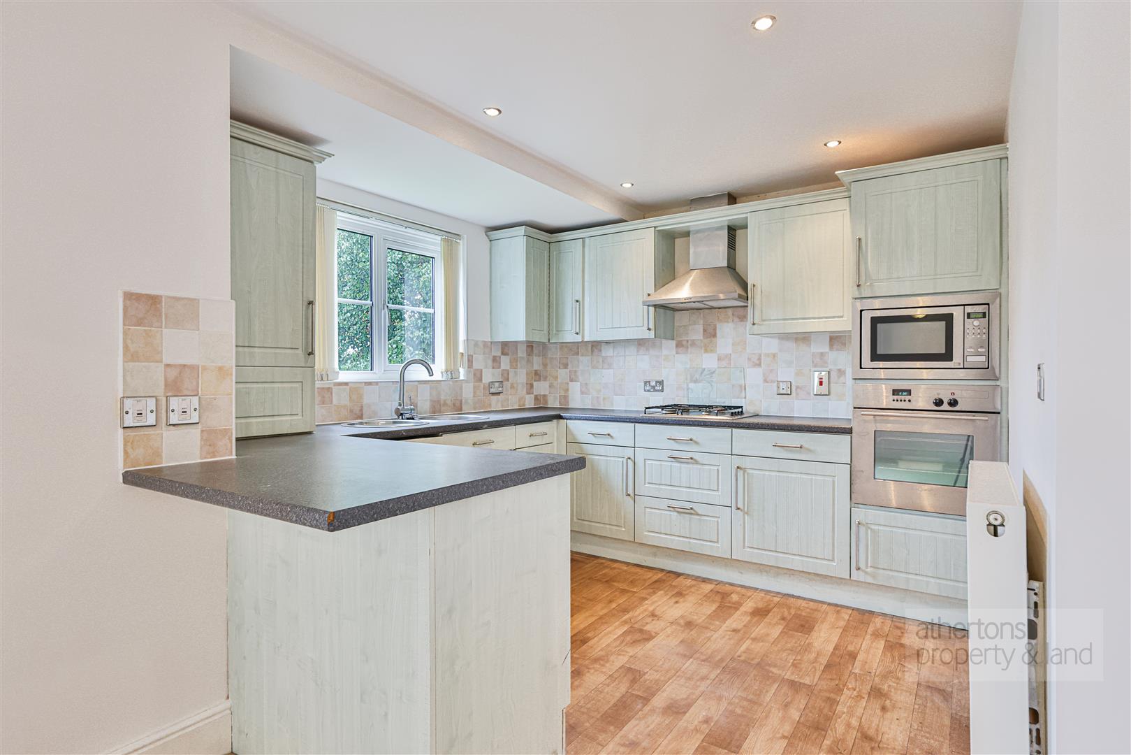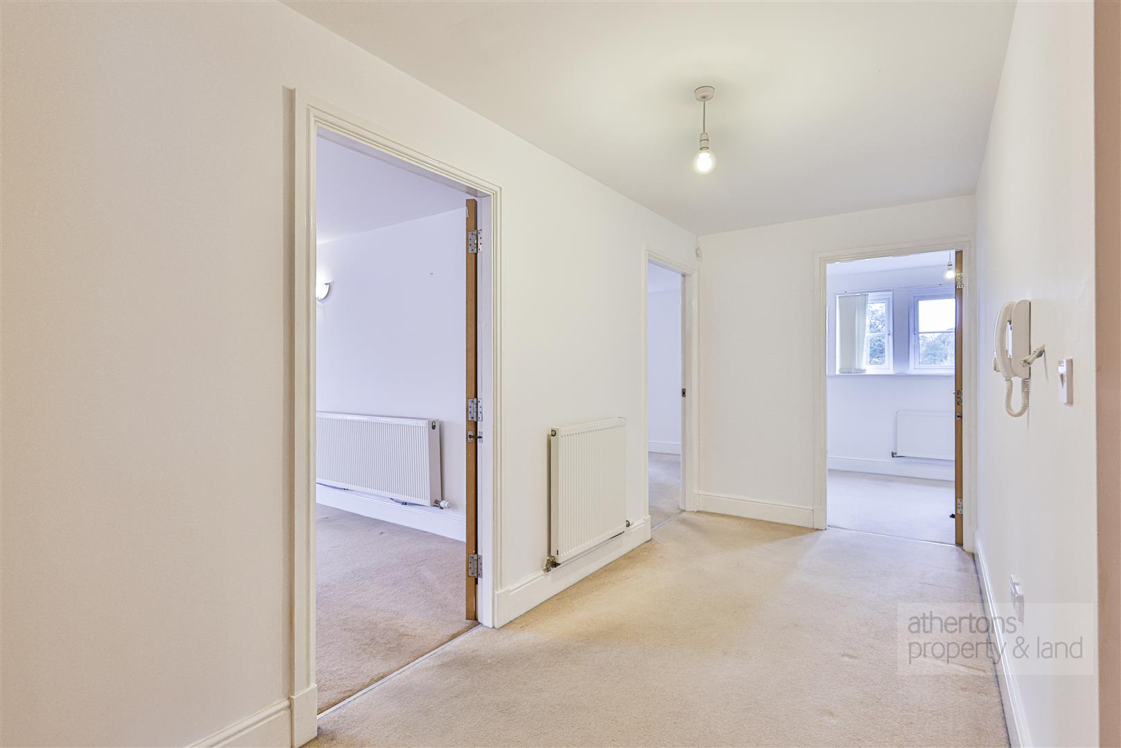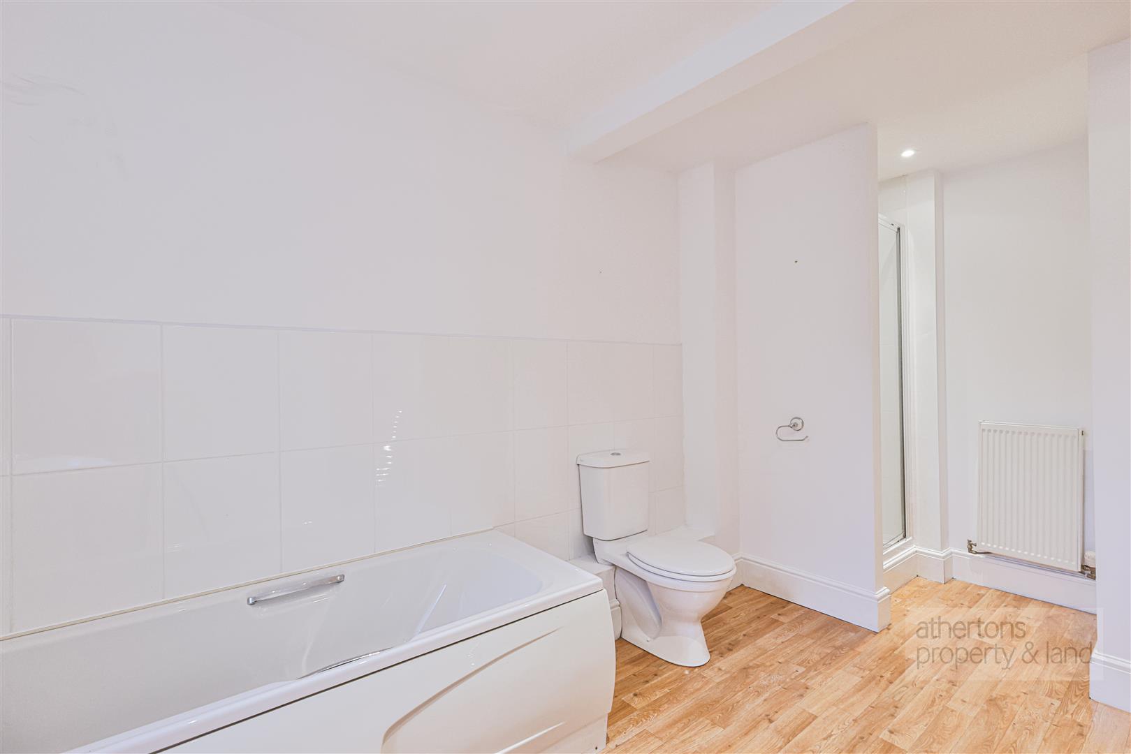 The second bedroom is also bright and spacious, offering three double-glazed windows with stone mullion details and a radiator. A superb four-piece family bathroom serves the property, featuring a panelled bath, separate shower cubicle with mixer shower, pedestal wash basin and low-level WC. The room benefits from recessed downlights, wood-effect vinyl flooring, extractor fan and a frosted double-glazed window.
