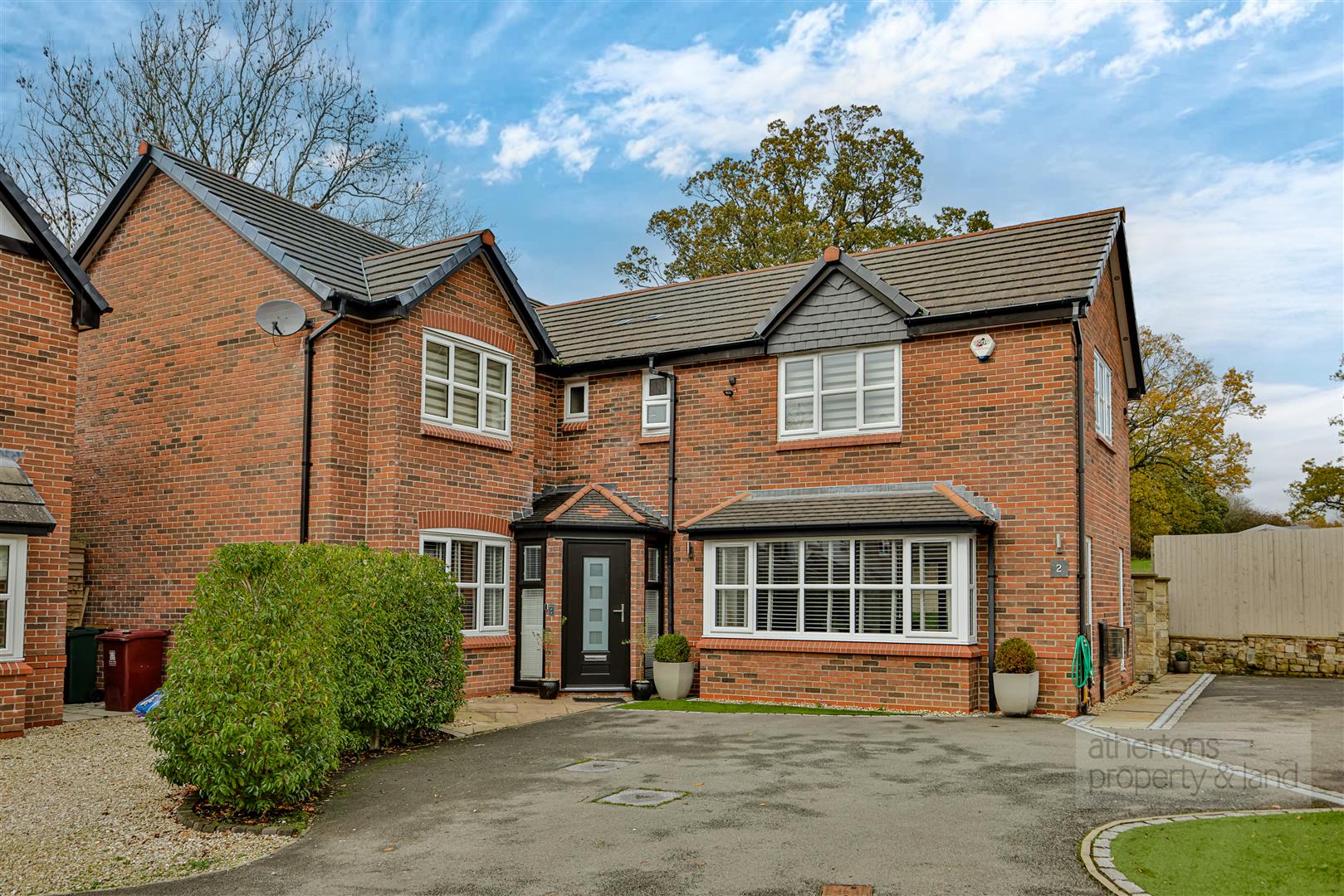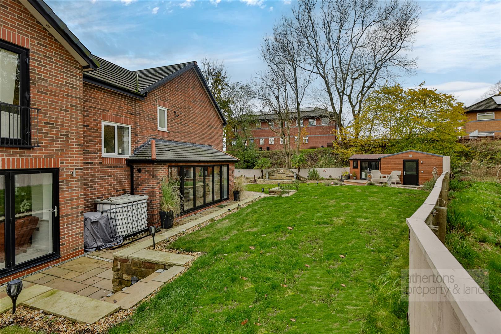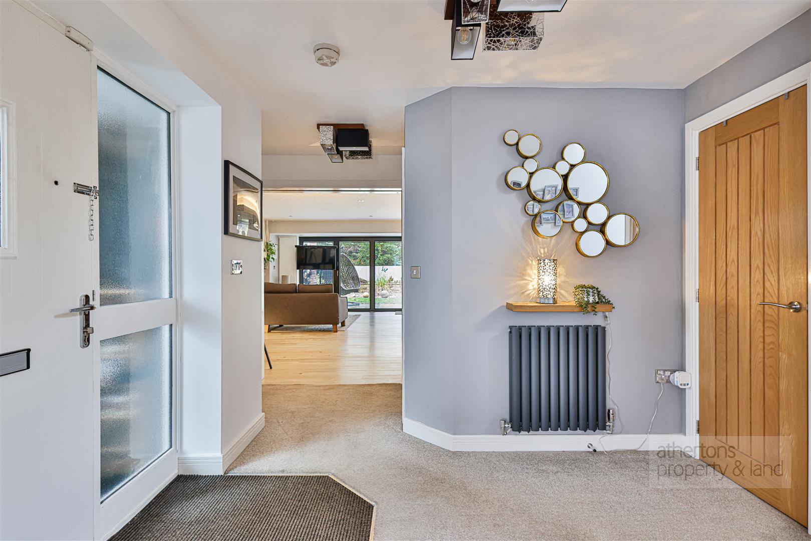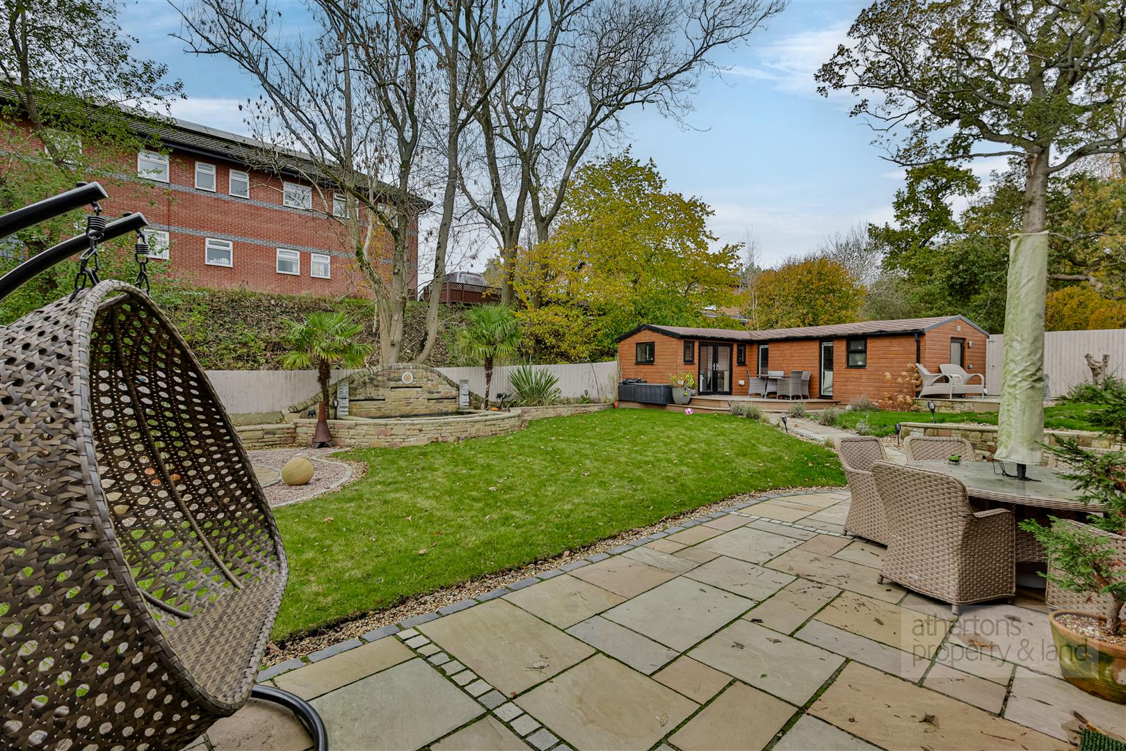 Externally, the property benefits from two tarmacadam driveway areas, providing extensive off-road parking and open access to the rear. The landscaped gardens wrap around the property, featuring split-level lawns, paved patios, and a stone pond with water feature. Fenced borders over adjoining fields offer excellent privacy, while the west-facing aspect ensures sunshine throughout the afternoon and evening.