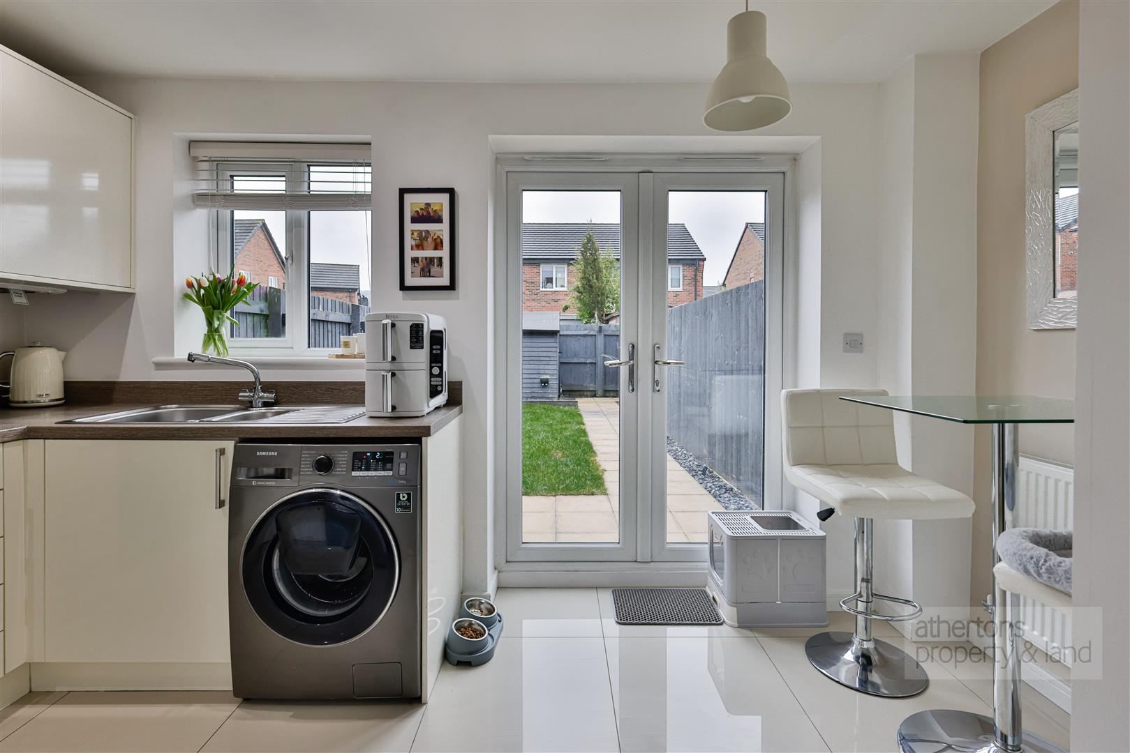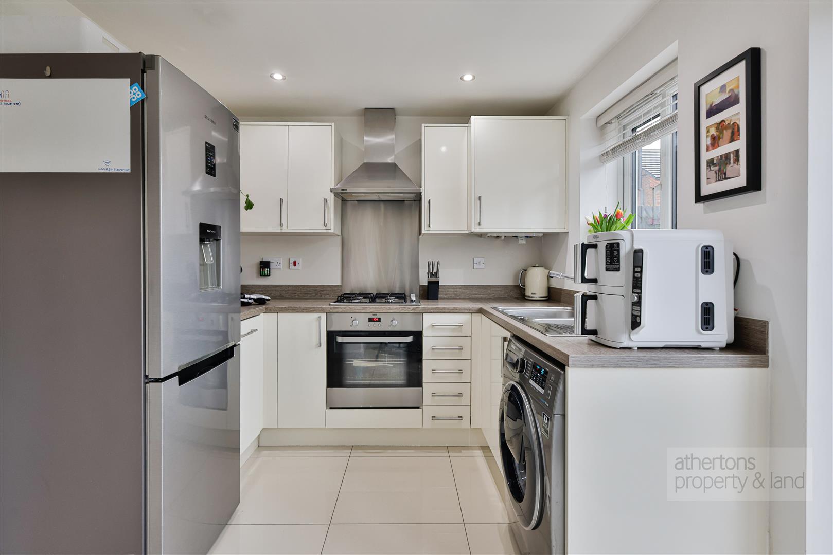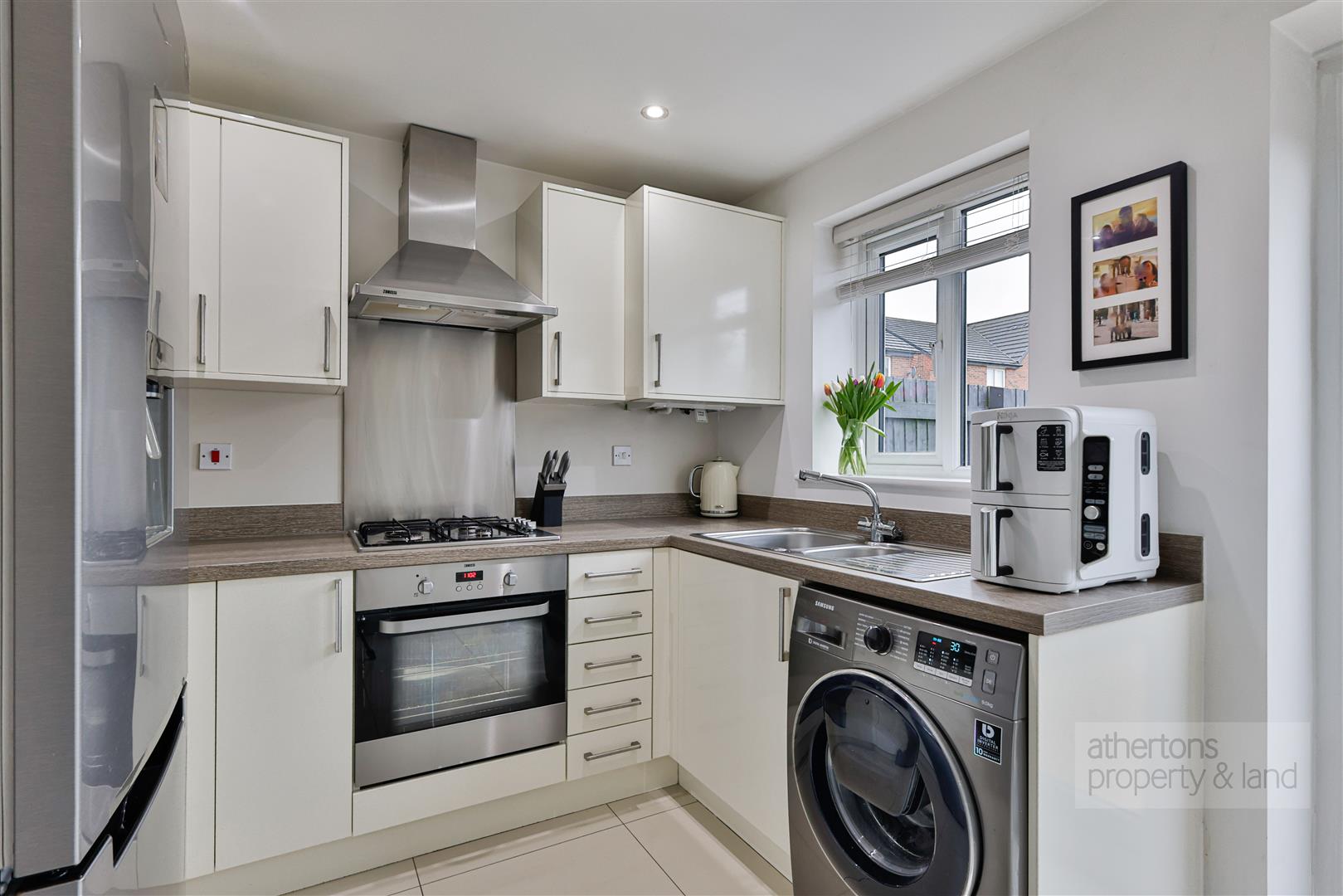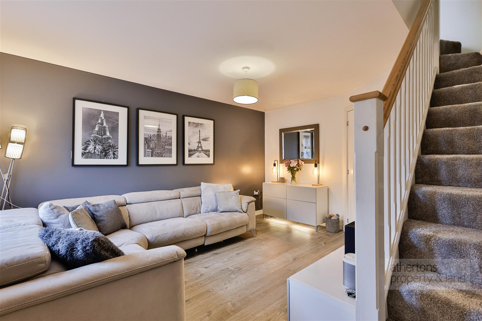 The accommodation is well suited to a wide variety of purchasers and briefly comprises: an entrance porch leading into a welcoming living room, and a modern breakfast kitchen fitted with sleek high-gloss wall and base units. Integrated appliances include a gas hob with extractor, oven and brushed steel splash back, electric oven / grill, space for a fridge and freezer, along with plumbing for a washing machine.