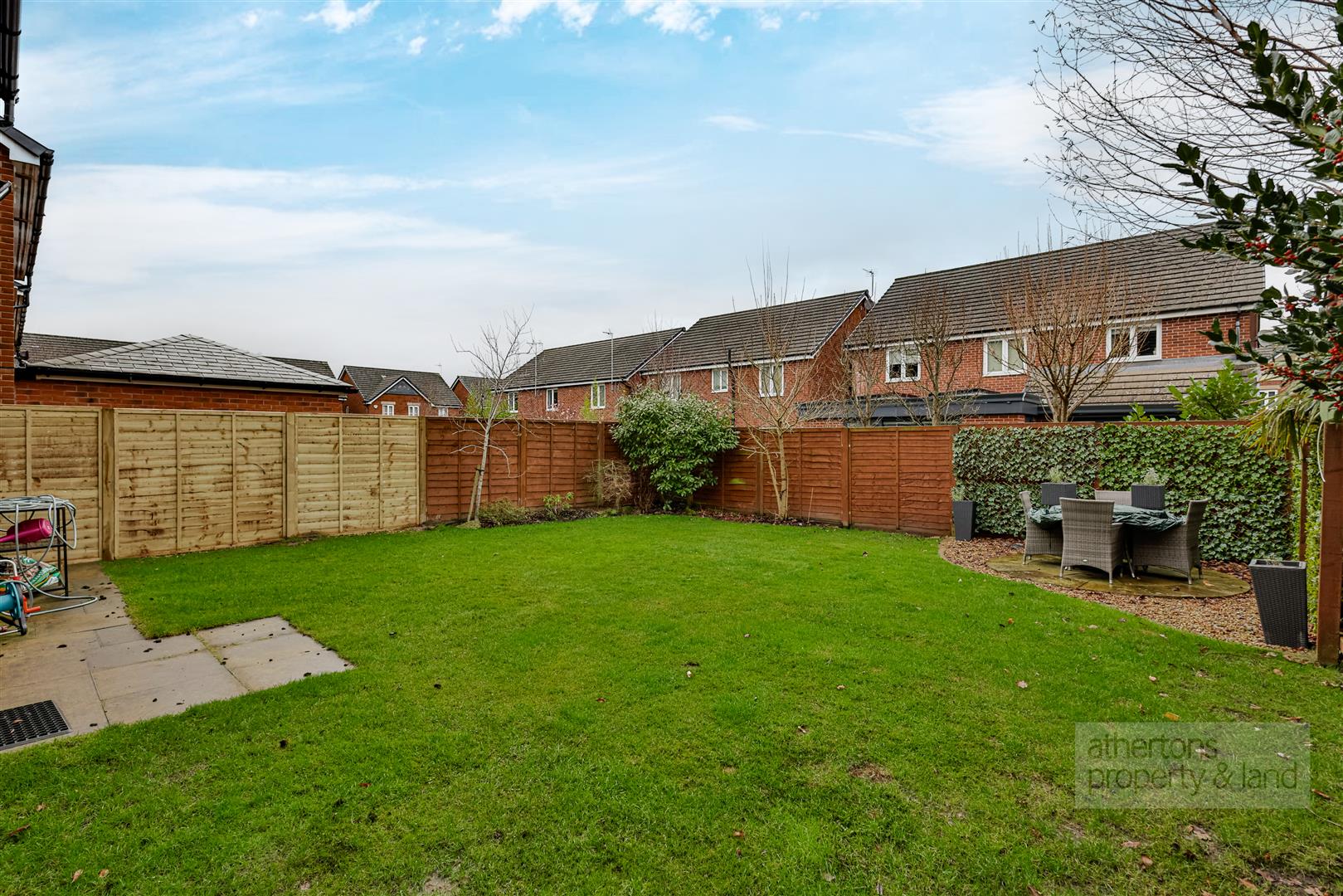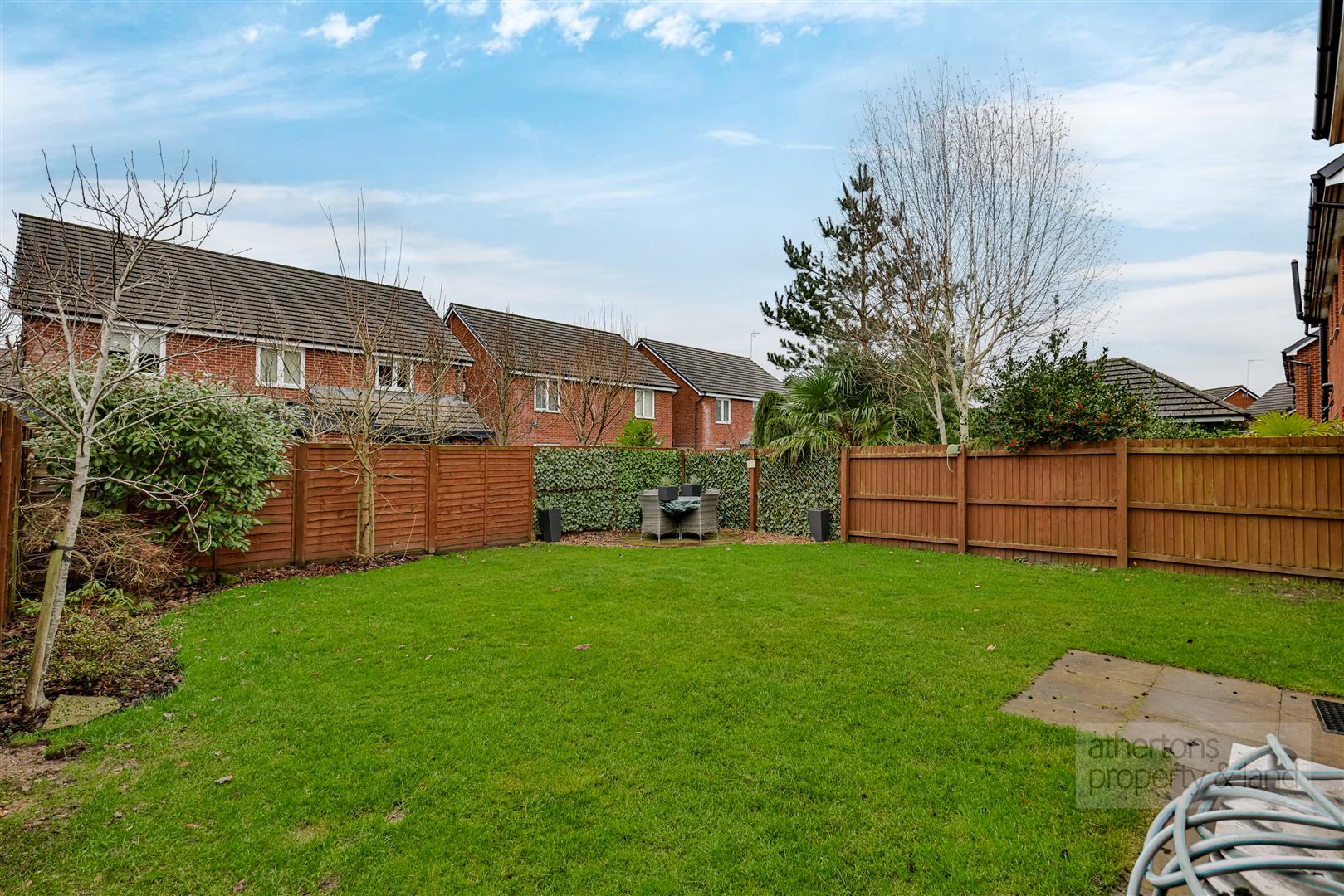 Externally, the rear garden is a particular highlight, reflecting the property’s former show home status. The wide, lawned garden is complemented by a patio and gravelled seating area at the rear of the garden, planted borders, and gated side access leading to the front, providing a private and versatile outdoor space suitable for families and entertaining alike.