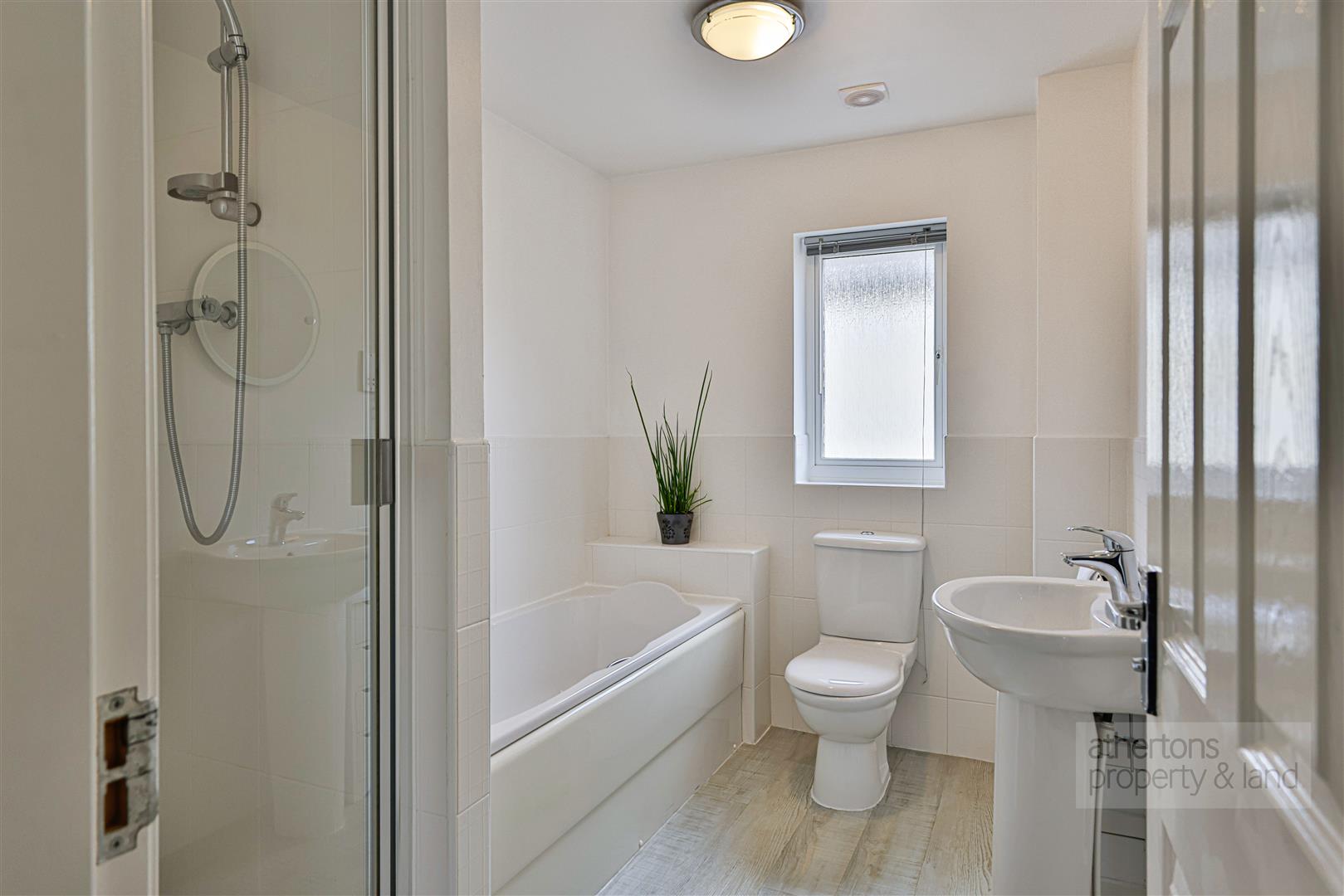 To the first floor, a striking open galleried landing creates an impressive sense of space and light, enhanced by a feature arched window. An airing cupboard houses the hot water cylinder. The family bathroom is fitted with a four-piece suite including a panelled bath, separate shower cubicle, pedestal wash basin and dual flush WC, complemented by half tiled walls and laminate flooring. The principal bedroom suite is a commanding and generously proportioned space with fitted wardrobes, a dressing area and a well-appointed four-piece en-suite bathroom finished to the same specification of the house bathroom.
