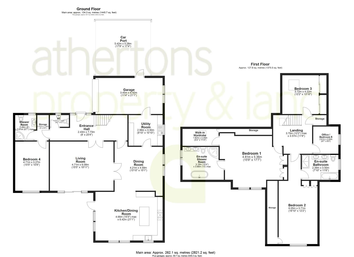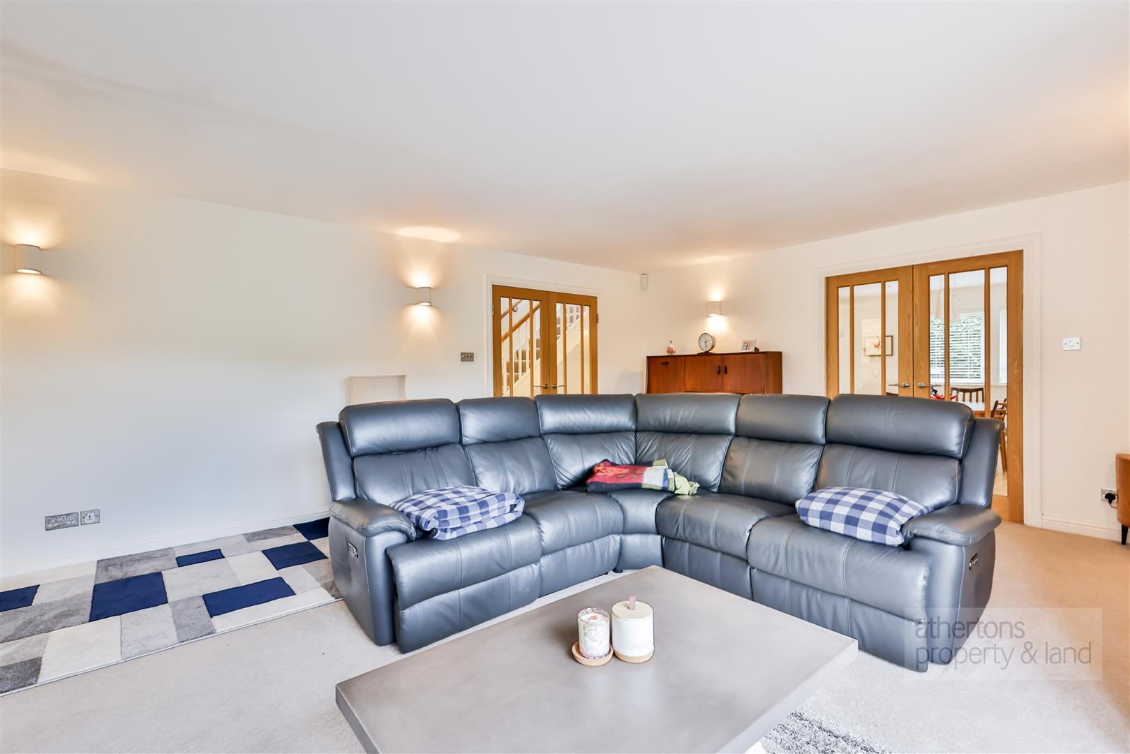 Approached via electric gates and a sweeping stone-chipped driveway, the home is enhanced by beautifully landscaped south-facing gardens and ample parking, including an integral garage and a two-bay car port. Extending to circa 2,821 sq ft (excluding garage and car port), the property has been thoughtfully designed and appointed, offering both versatility and refinement across its two floors.