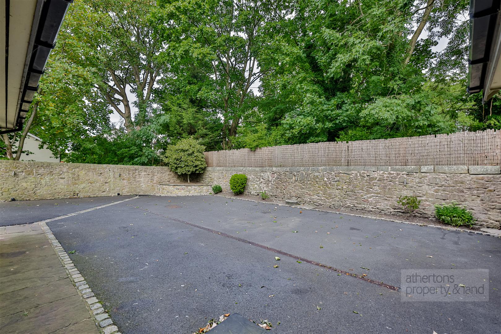 Externally, the property continues to impress. The private, stone-walled south-facing garden to the front has been thoughtfully landscaped, featuring a substantial stone-flagged patio and pathways, spacious manicured lawn area, and mature planting of trees and shrubs around the borders of the gardens and grounds creating a great sense of privacy. Electric gates provide access to the sweeping driveway, which in turn leads to the two-bay car port and integral garage, complete with power, lighting, Worcester boiler, and MegaFlo water system.