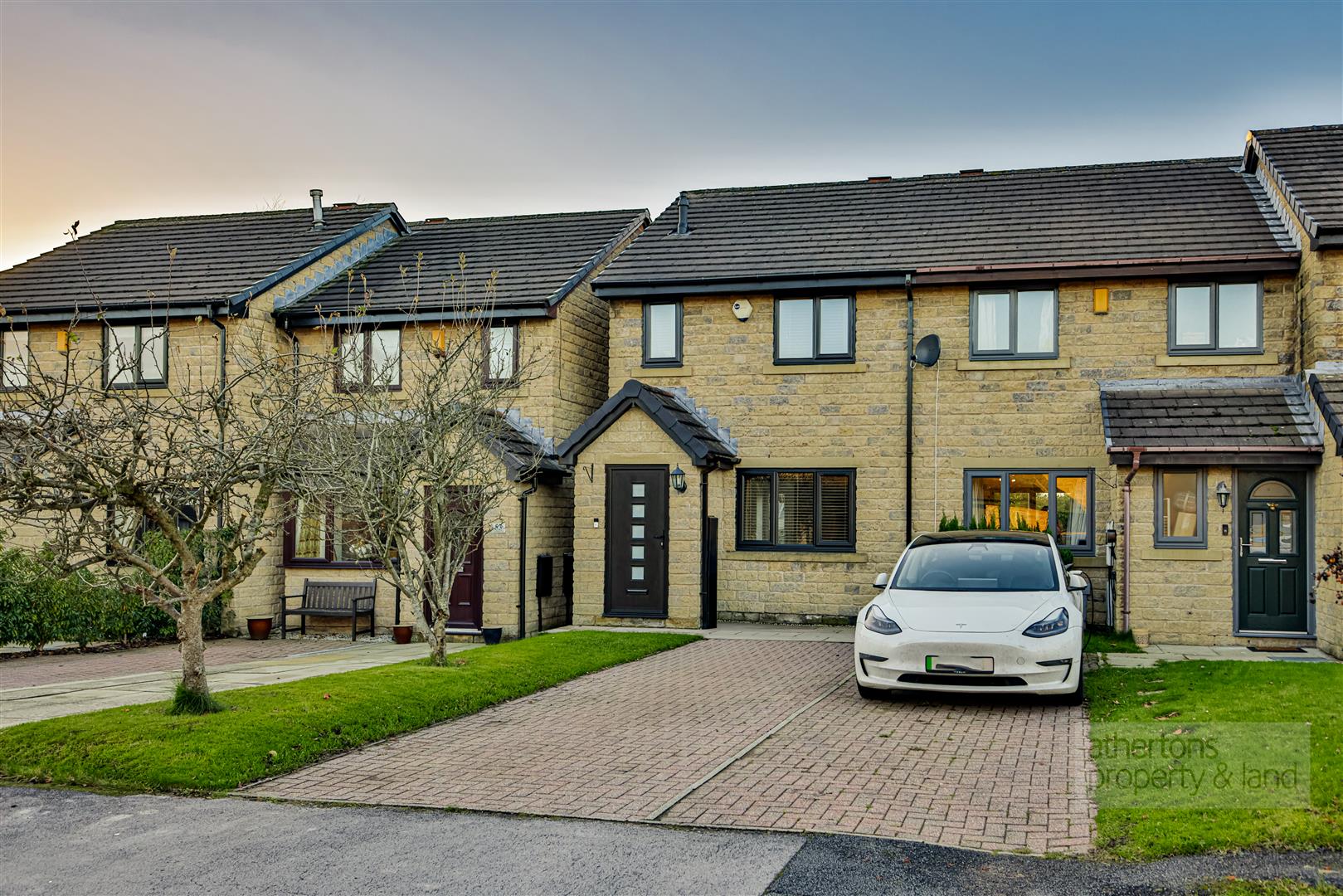 Externally, the property benefits from a block-paved driveway providing tandem parking for two vehicles, complemented by a lawned strip with two mature apple trees. The rear garden enjoys a private westerly aspect with views towards Whalley Nab and the historic Church of St Mary, creating an ideal setting for relaxing in the afternoon and evening sun.