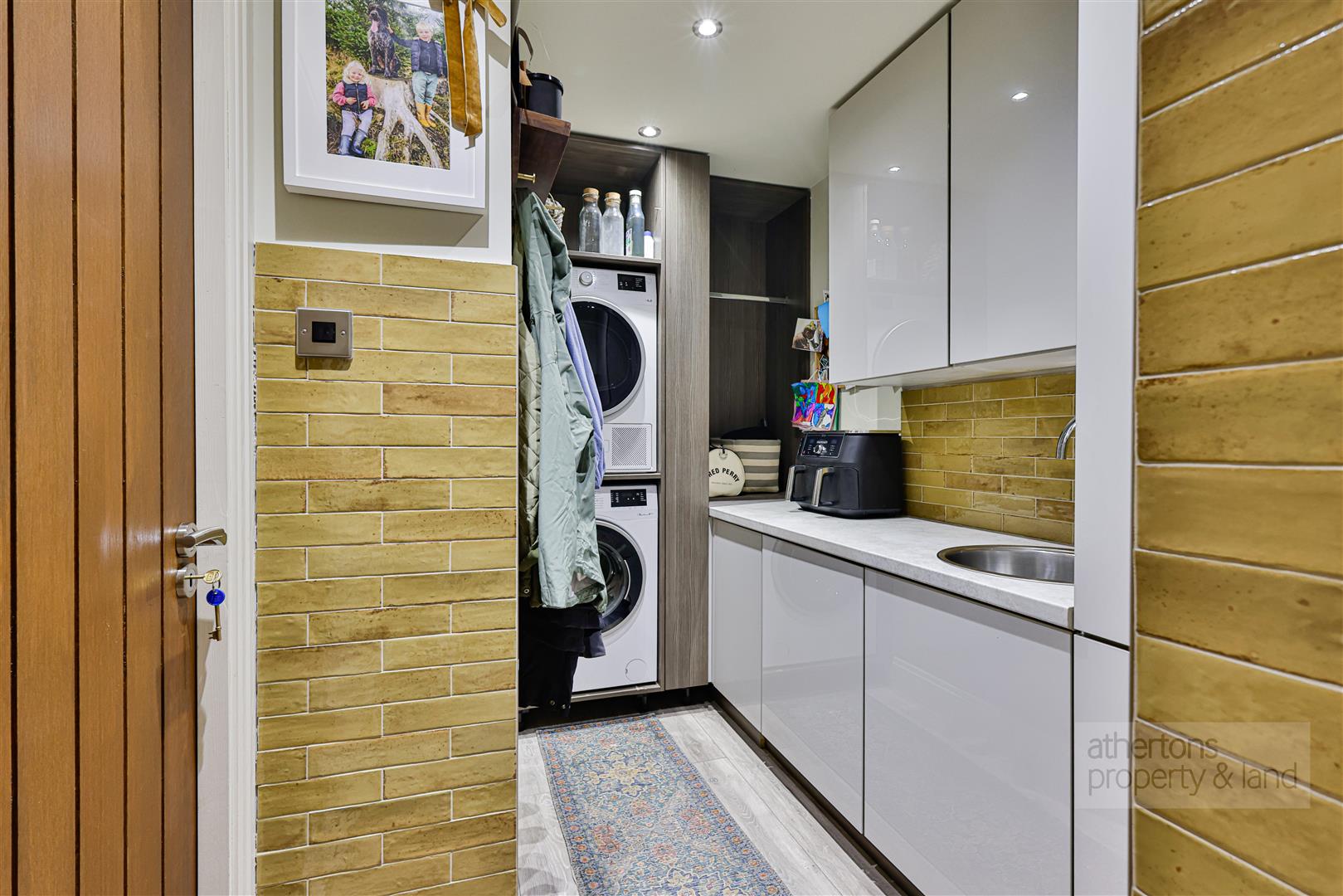 This versatile space also benefits from a modern shower room and offers the potential to be reconfigured into an additional ground floor double bedroom with en-suite if desired. A well-appointed utility room completes the ground floor, providing space for white goods and integral access to the garage.