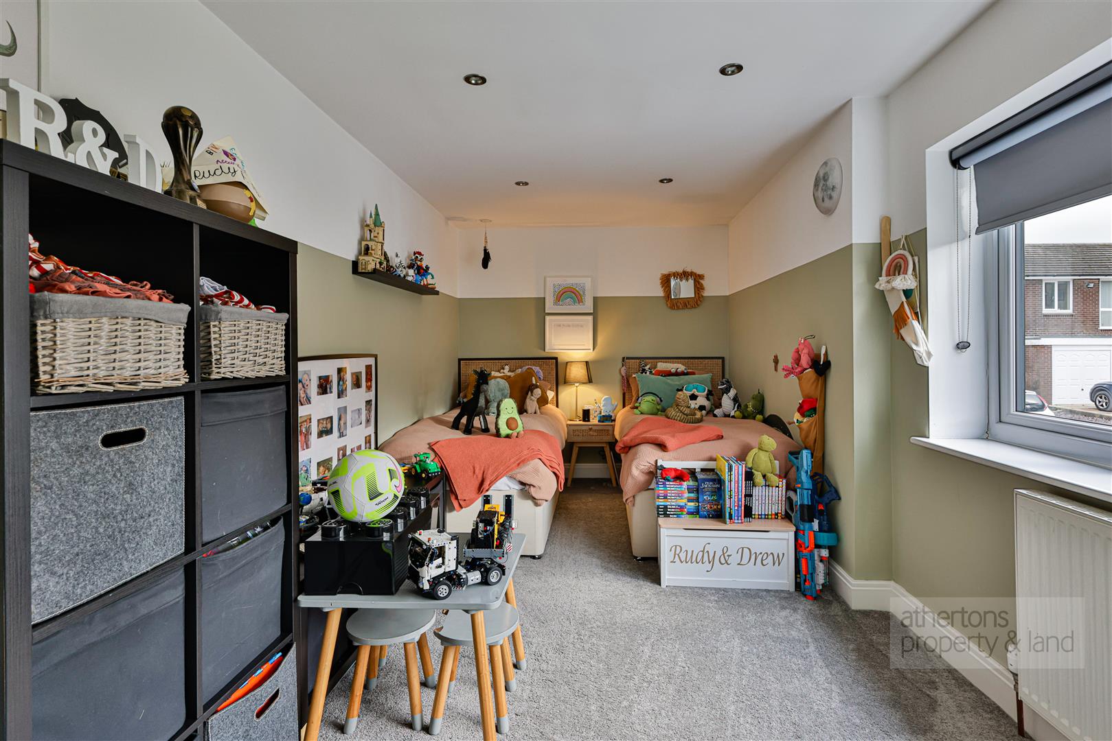 The first floor offers a well-proportioned master bedroom with a range of fitted wardrobes and drawers also benefiting from a contemporary three-piece en-suite, featuring a walk-in shower and vanity unit with fully tiled floor and walls.