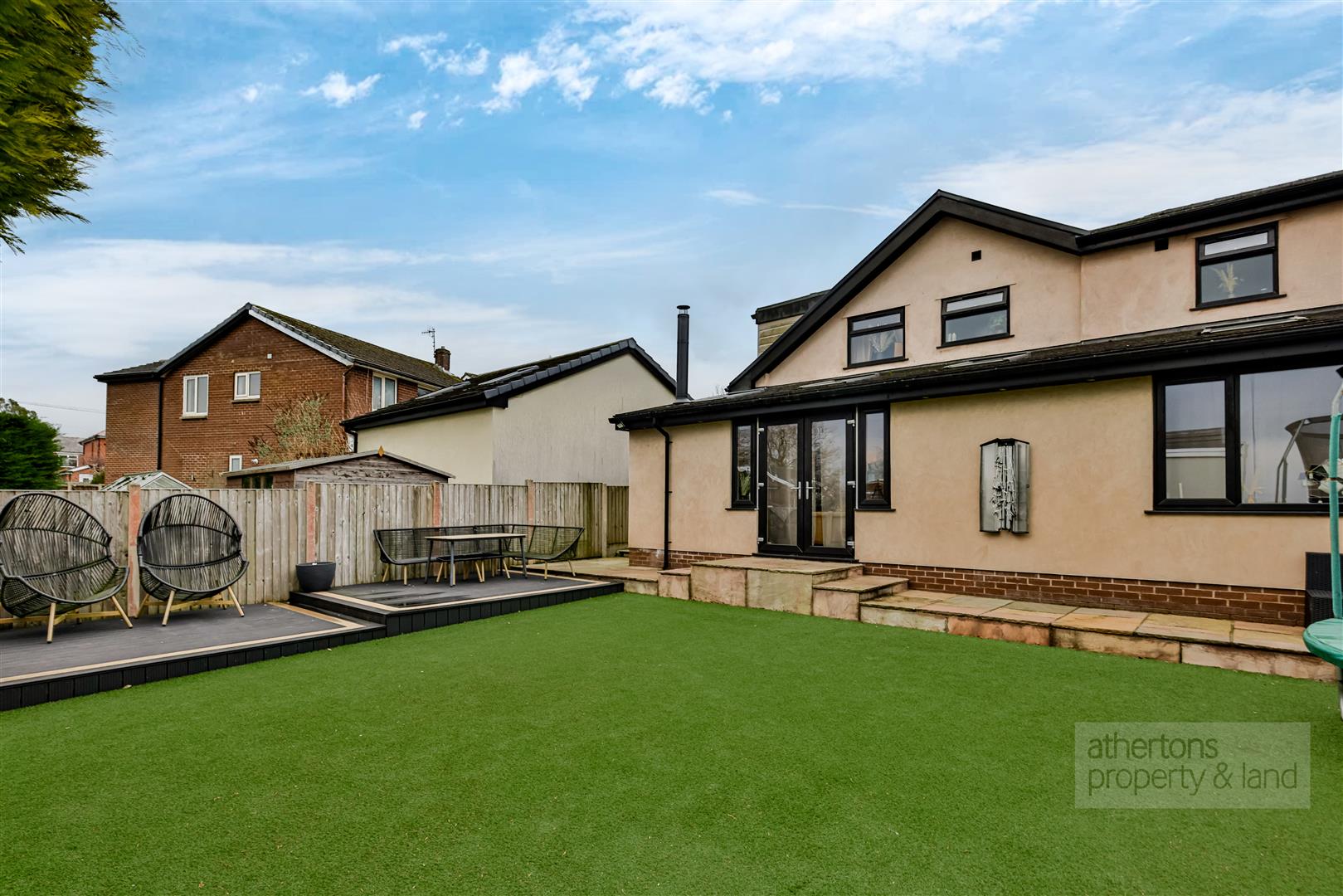 Externally, the property benefits from a neatly maintained front lawned garden and a large brick paved drive way providing parking for multiple vehicles. To the rear, there is a generous enclosed garden offering excellent outdoor space, featuring a decked seating area, Indian stone paved patio and a low maintenance artificial lawn — creating a safe and family-friendly environment.